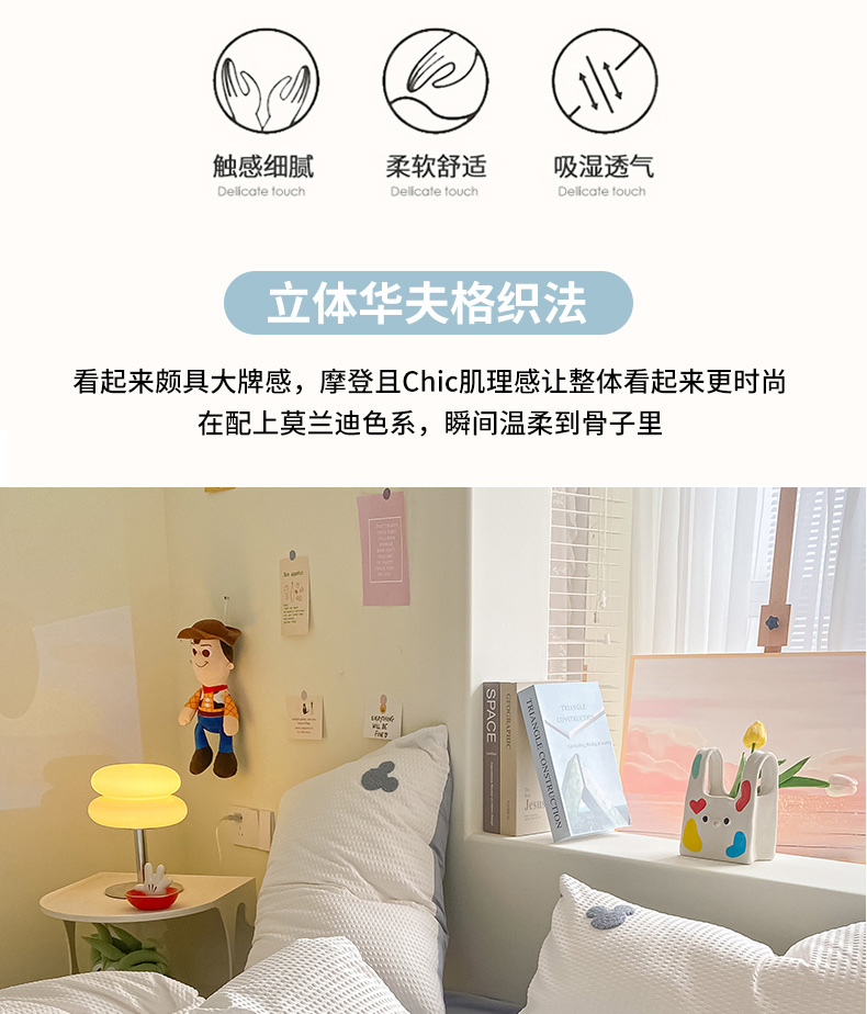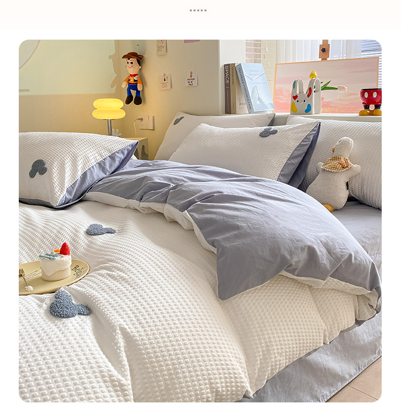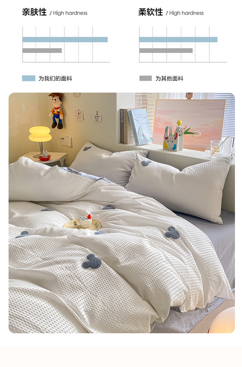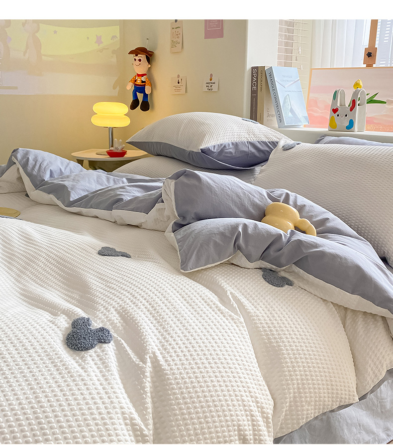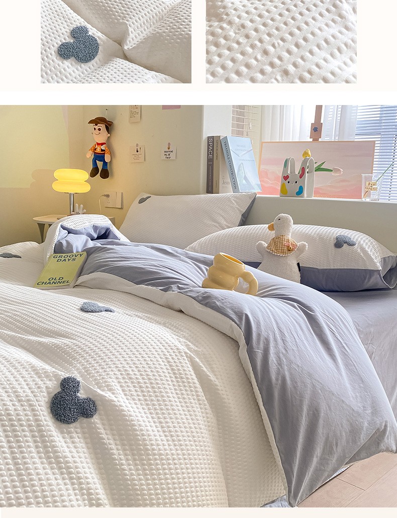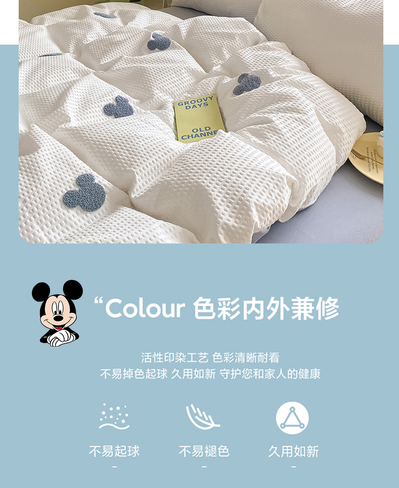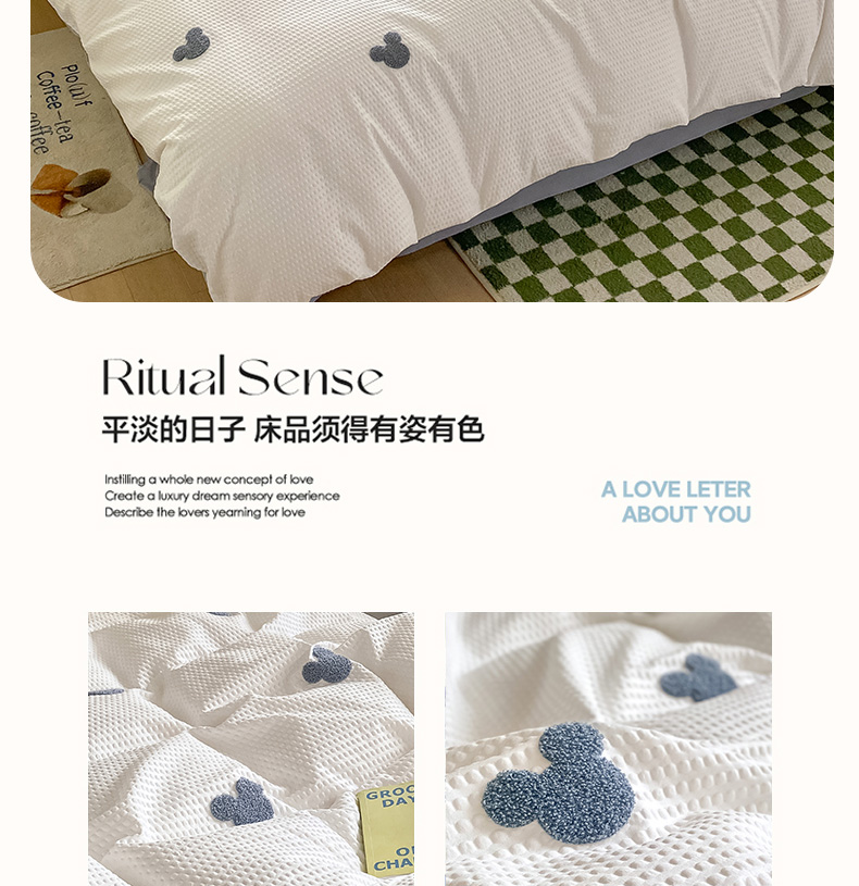 当前位置: 91家纺网 > 商品网购 > 床品套件 > 四件套 > 水洗棉四件套 > 眠帛家居 2024新款华夫格迪士尼米奇毛巾绣系列 米奇蓝灰
