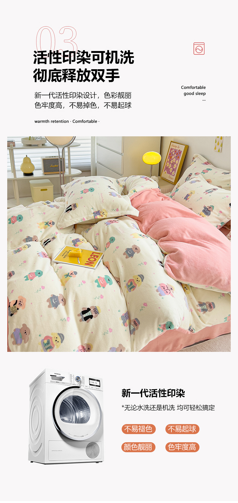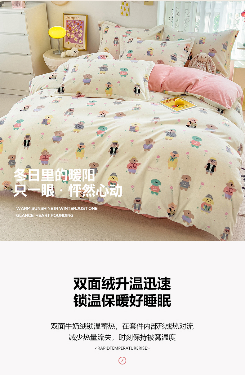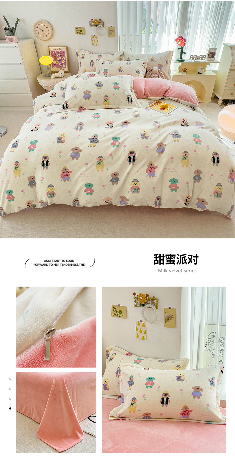 商品名称:全季家居2023新款小清新A类高克重加厚印花牛奶绒四件套 甜蜜派对