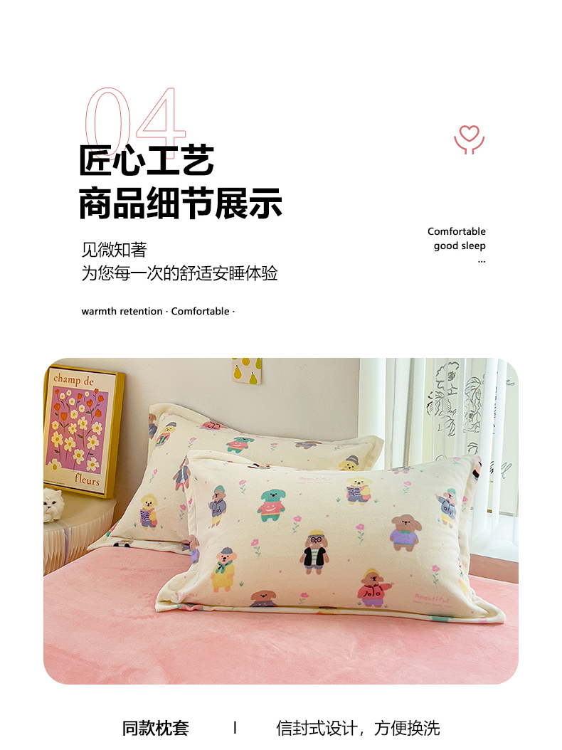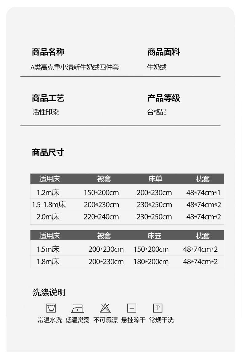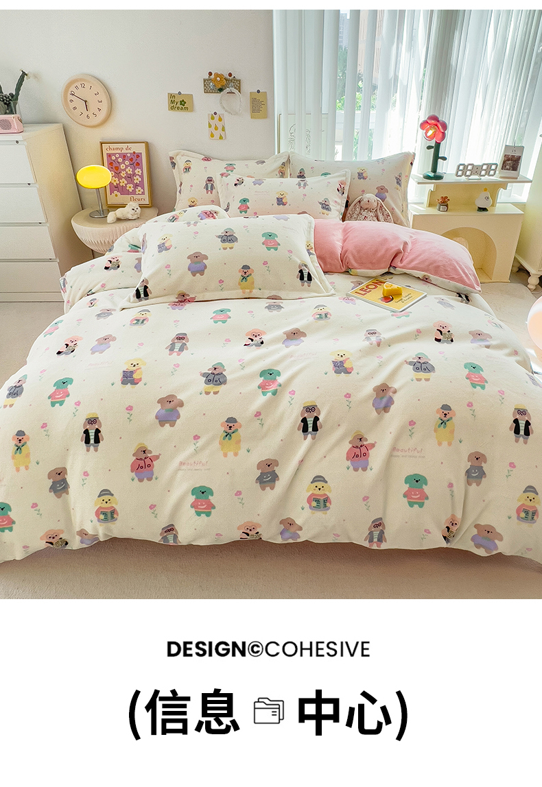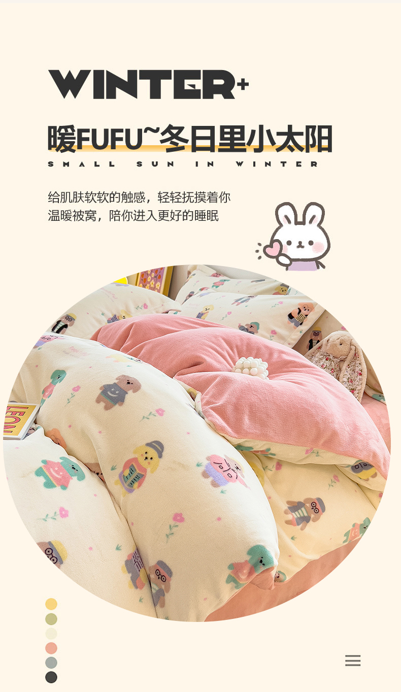 商品名称:全季家居2023新款小清新A类高克重加厚印花牛奶绒四件套 甜蜜派对
