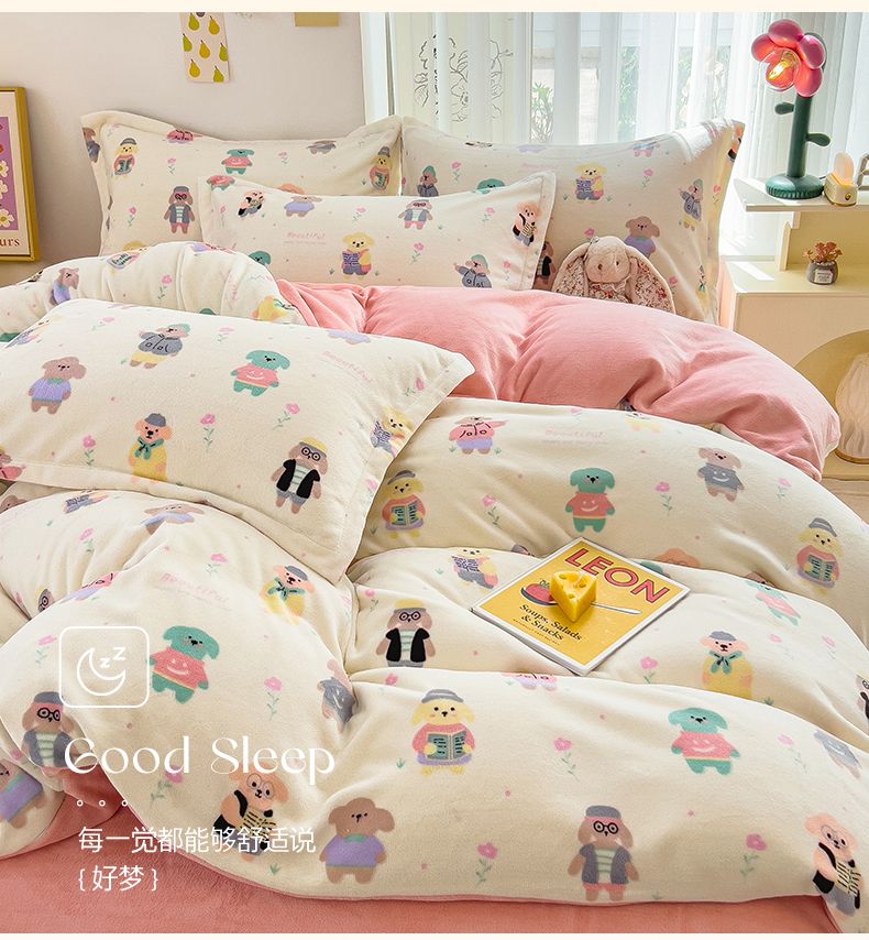全季家居2023新款小清新A类高克重加厚印花牛奶绒四件套 甜蜜派对