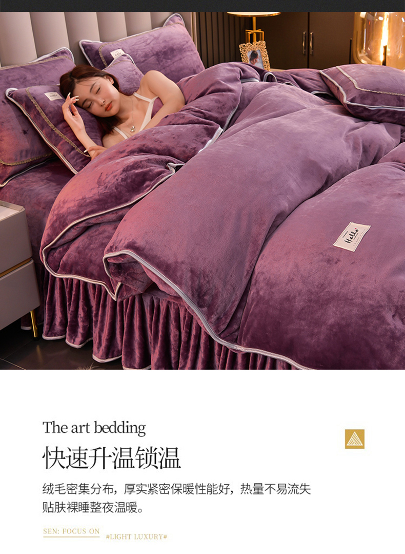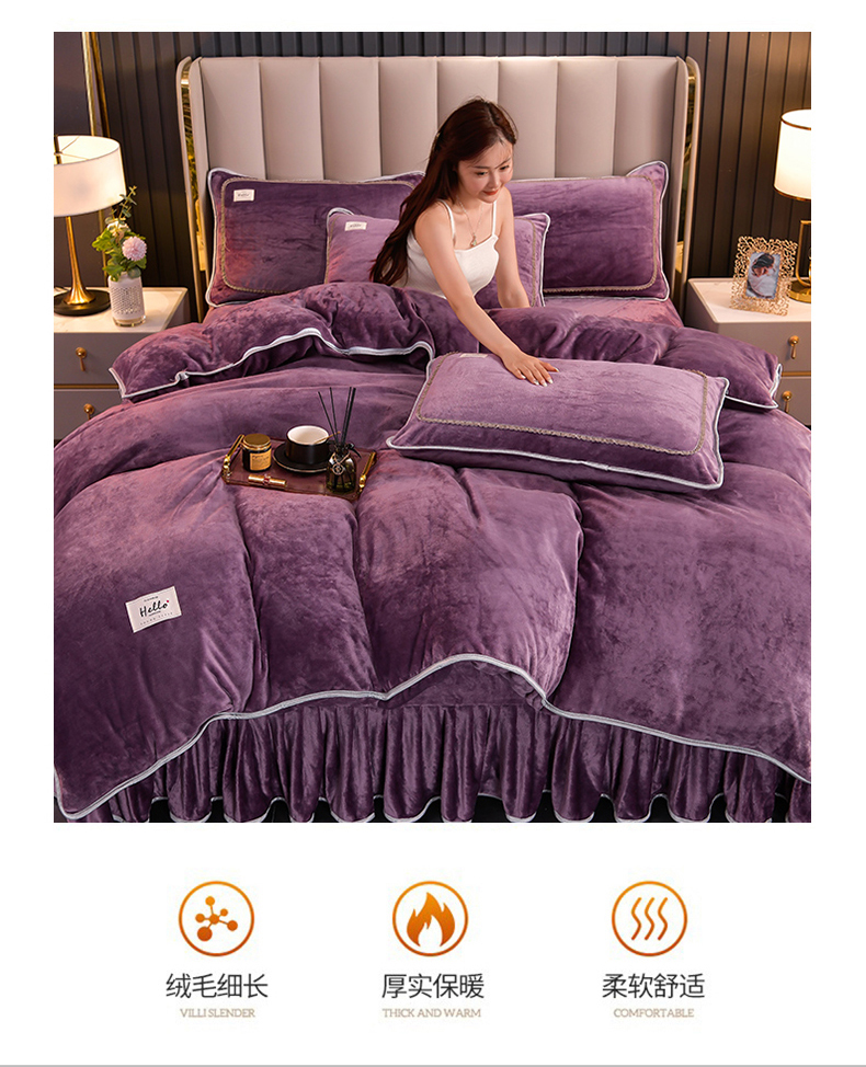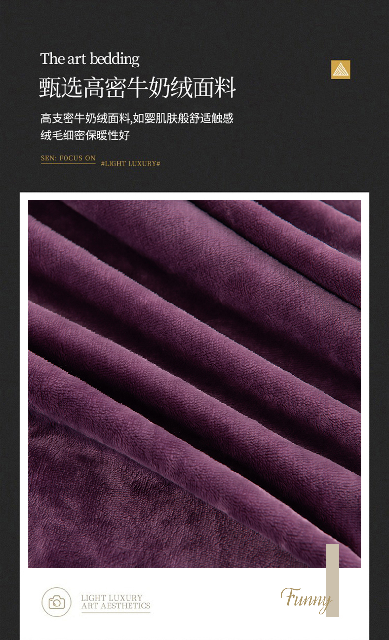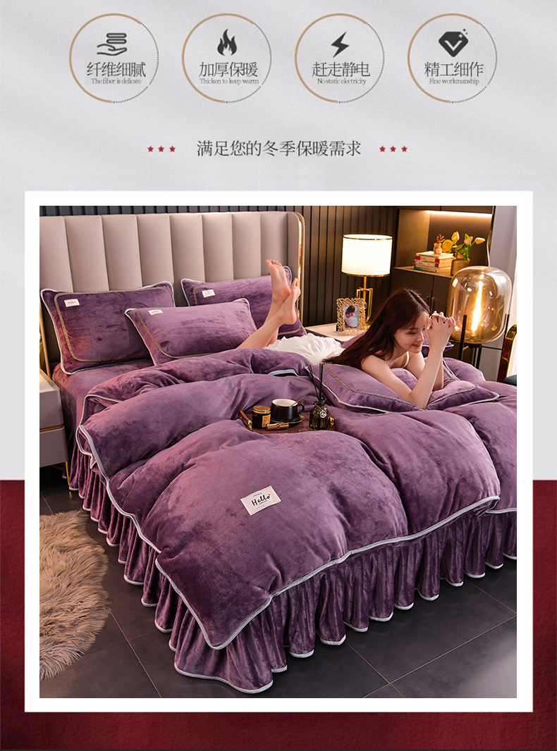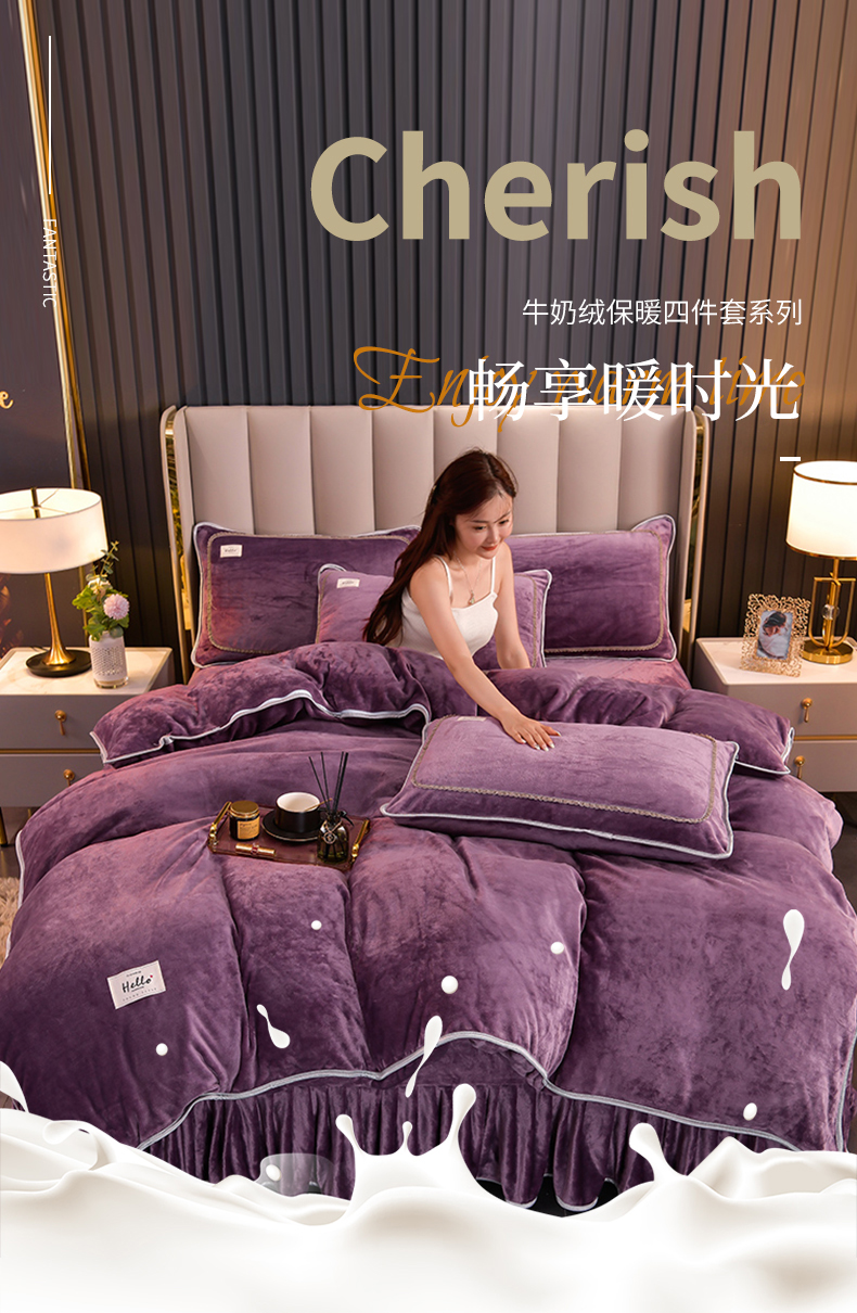商品名称:畅畅家纺 2023新款纯色8.5斤9斤牛奶绒法莱绒宝宝金貂绒四件套 紫