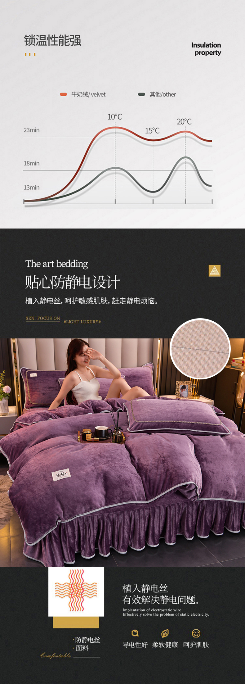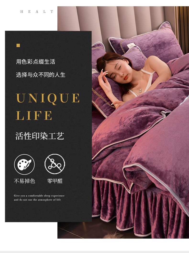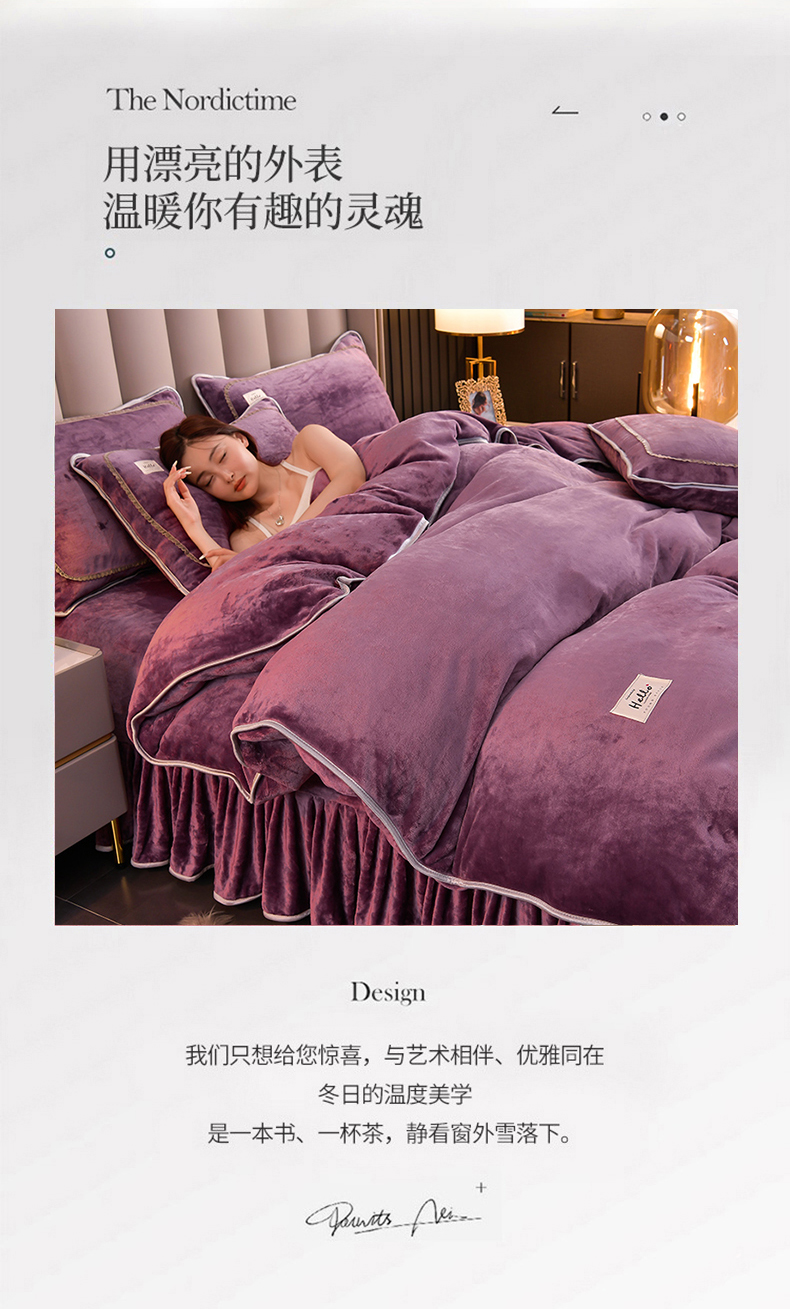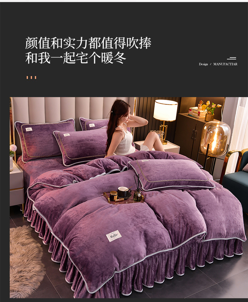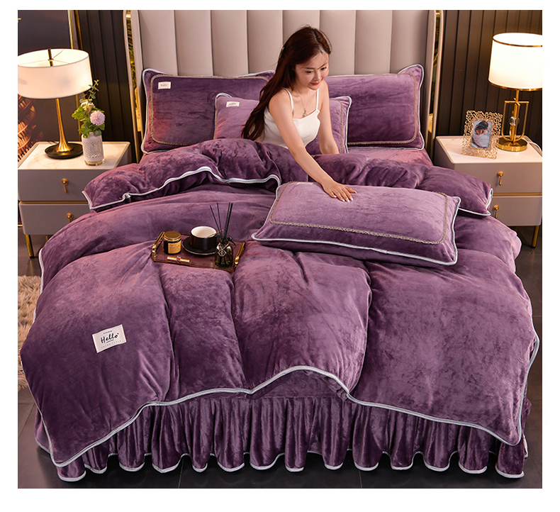 商品名称:畅畅家纺 2023新款纯色8.5斤9斤牛奶绒法莱绒宝宝金貂绒四件套 紫