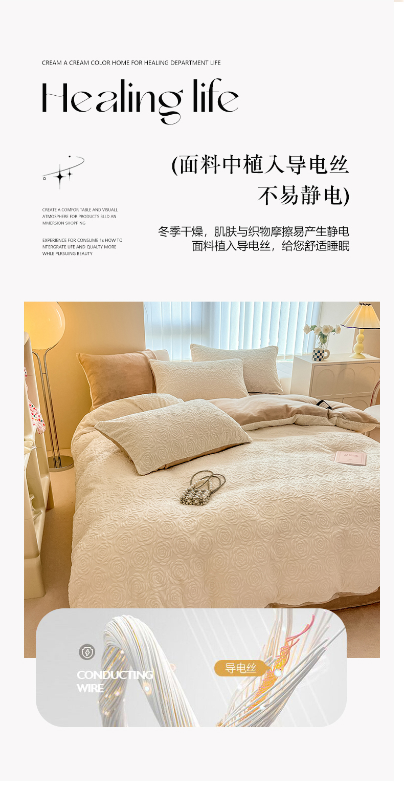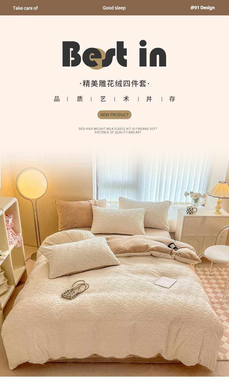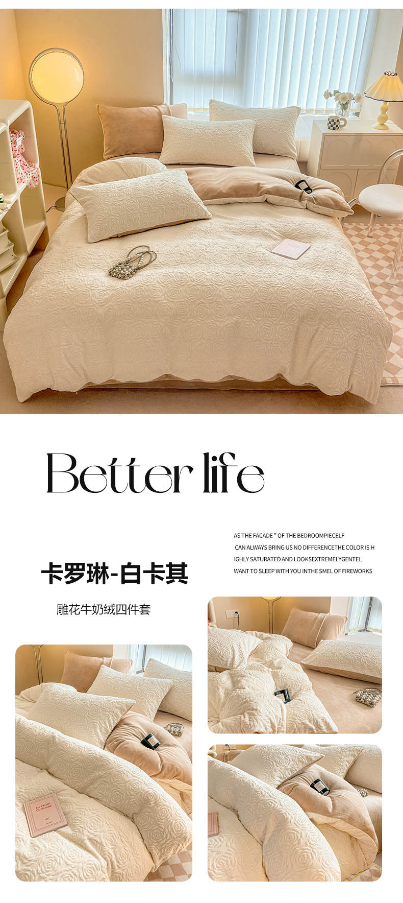 当前位置: 91家纺网 > 商品网购 > 床品套件 > 四件套 > 雕花绒四件套 > 慕尚家纺 2025新款慕尚雕花绒四件套 卡罗琳-白卡其