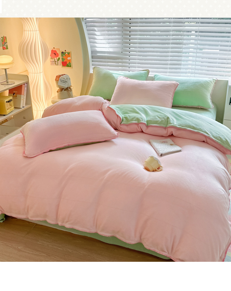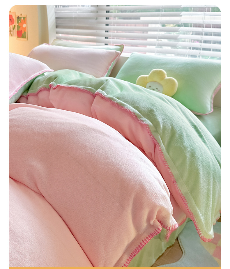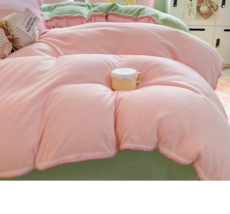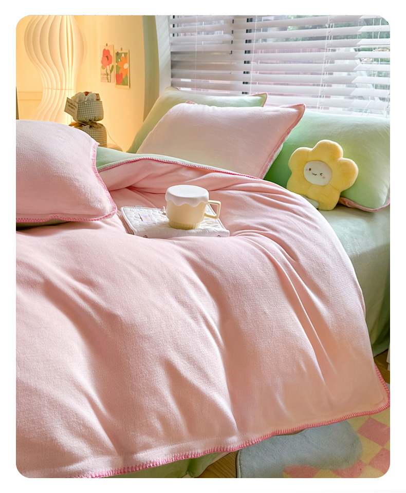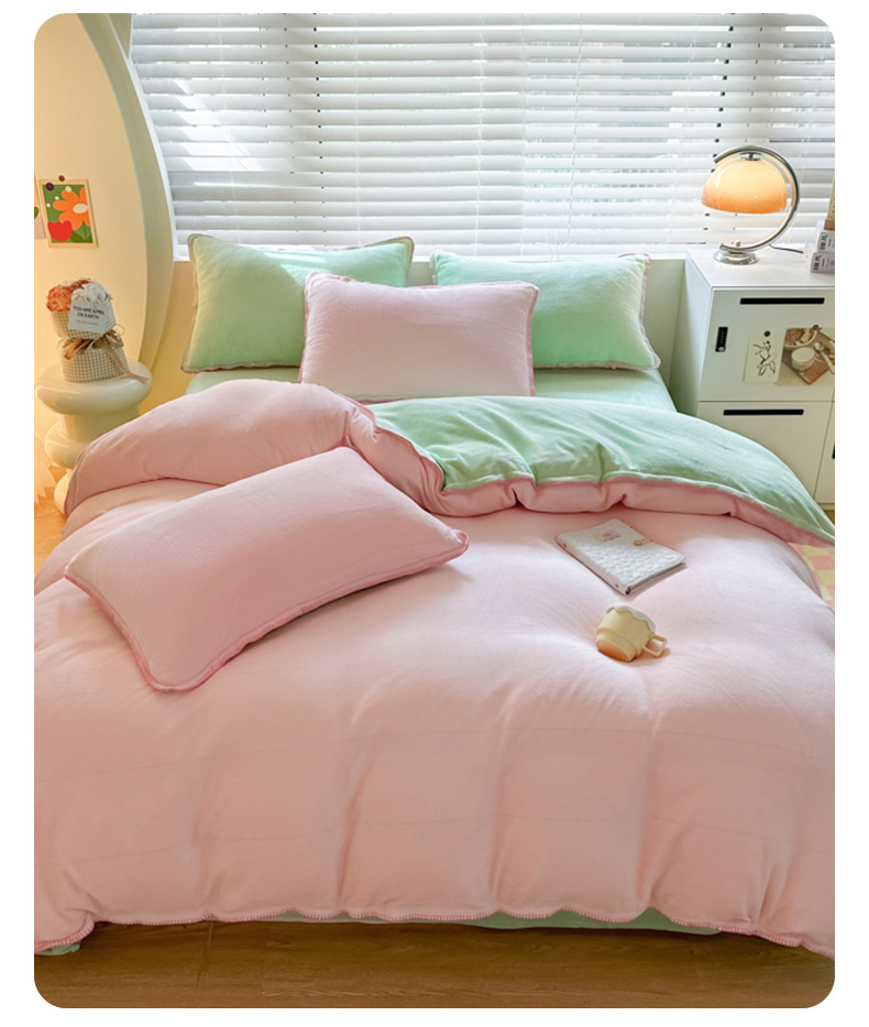当前位置: 91家纺网 > 商品网购 > 床品套件 > 四件套 > 牛奶绒四件套 > 安哆啦 2024新款高克重牛奶绒混搭四件套 粉拼绿