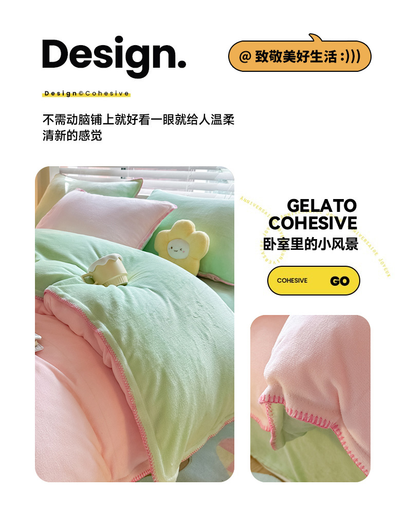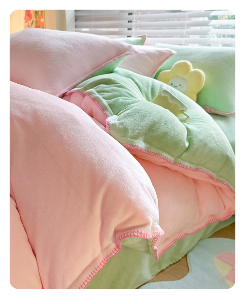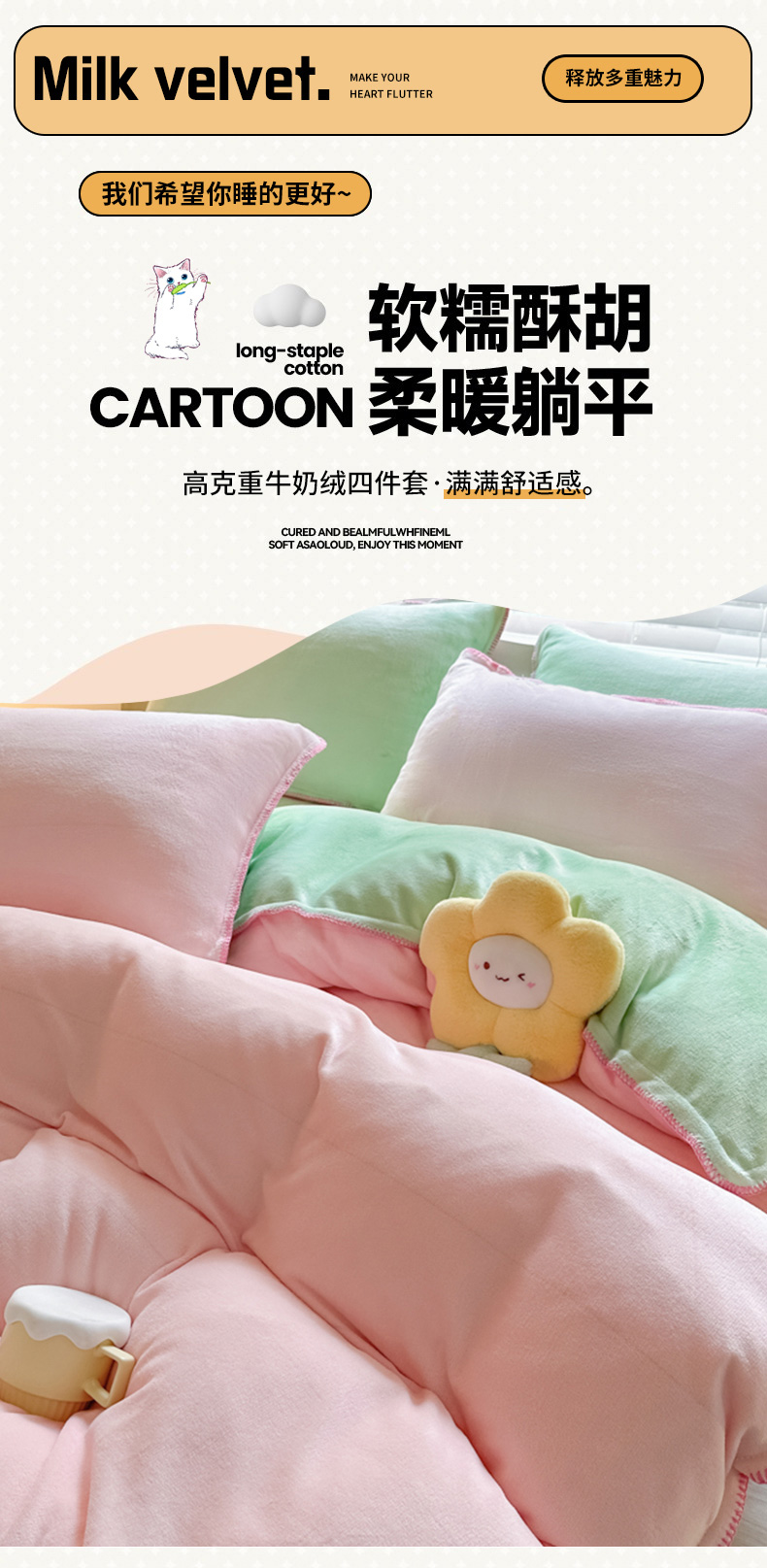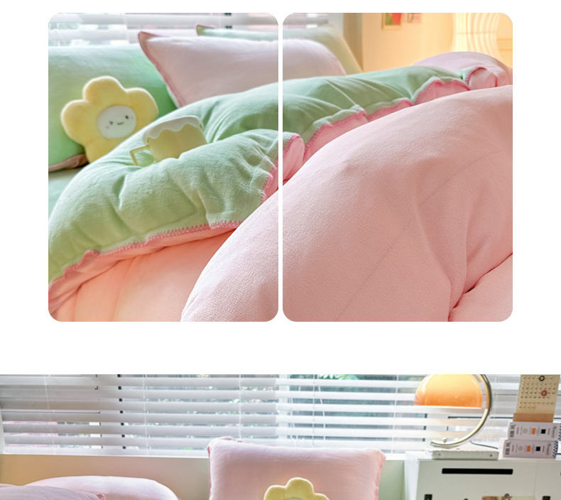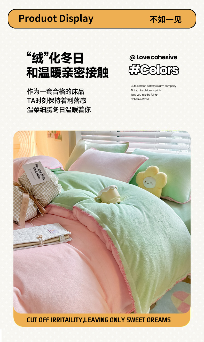 当前位置: 91家纺网 > 商品网购 > 床品套件 > 四件套 > 牛奶绒四件套 > 安哆啦 2024新款高克重牛奶绒混搭四件套 粉拼绿