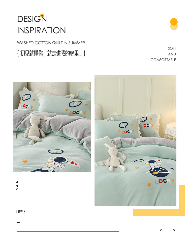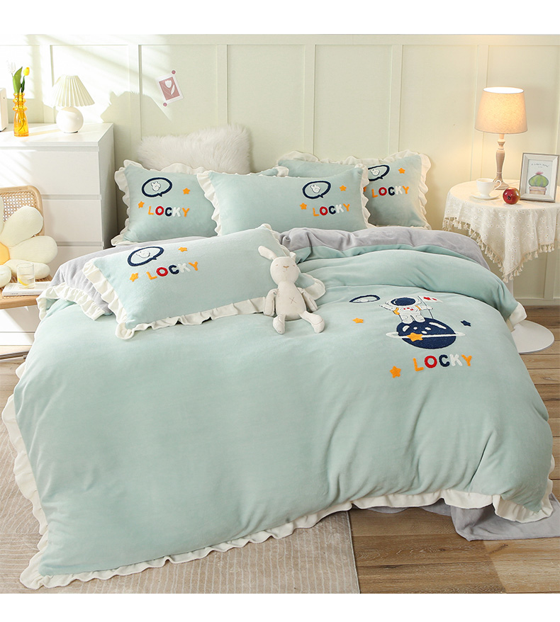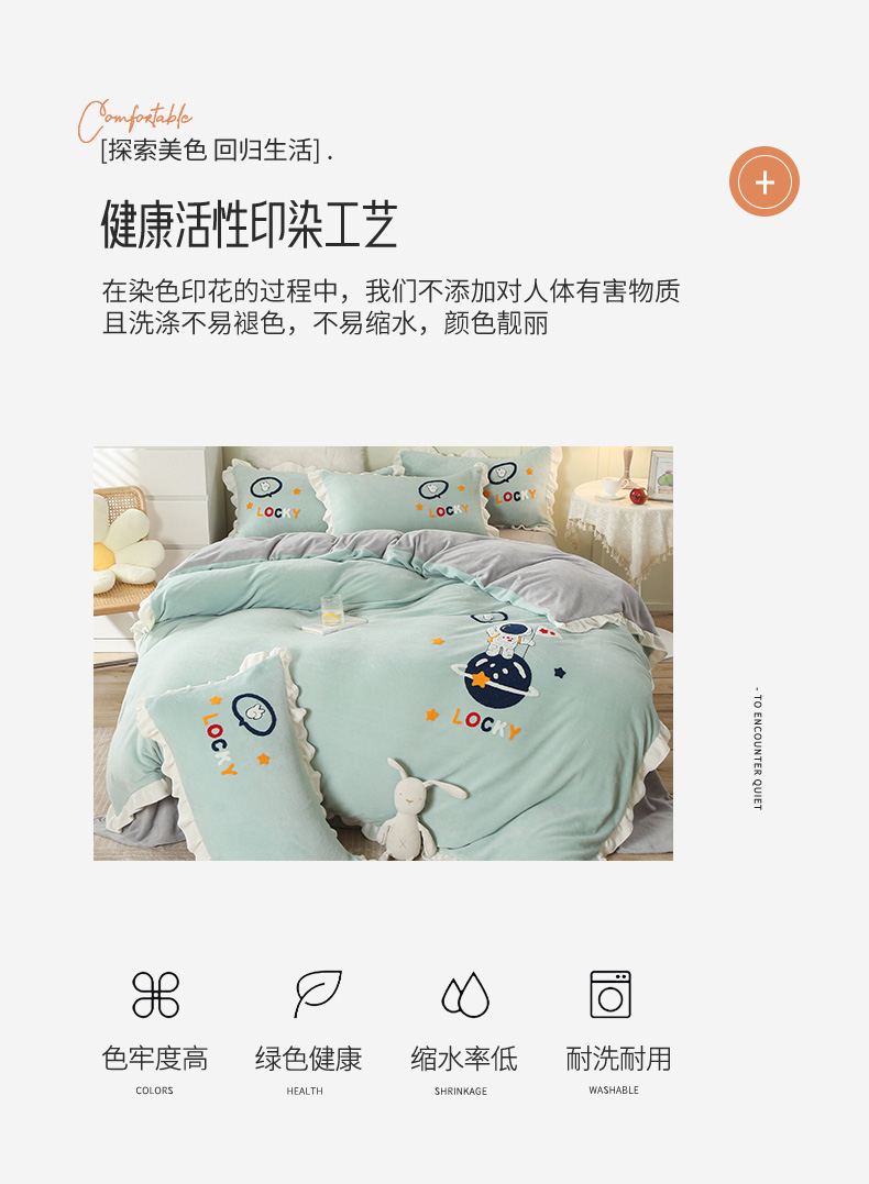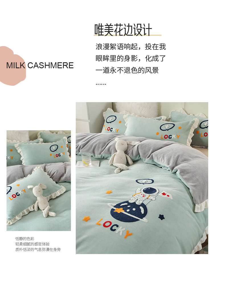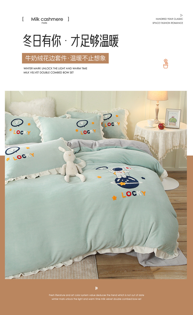 (总)沐辰 2023新款韩版绣花加厚牛奶绒四套件
