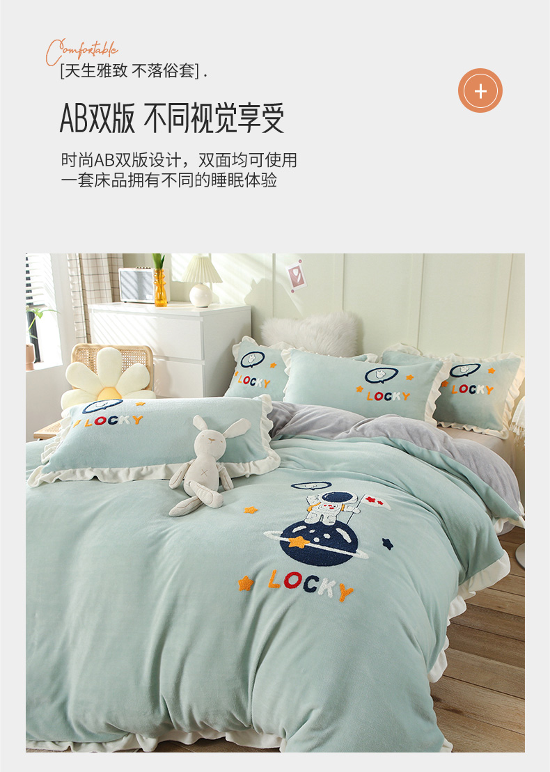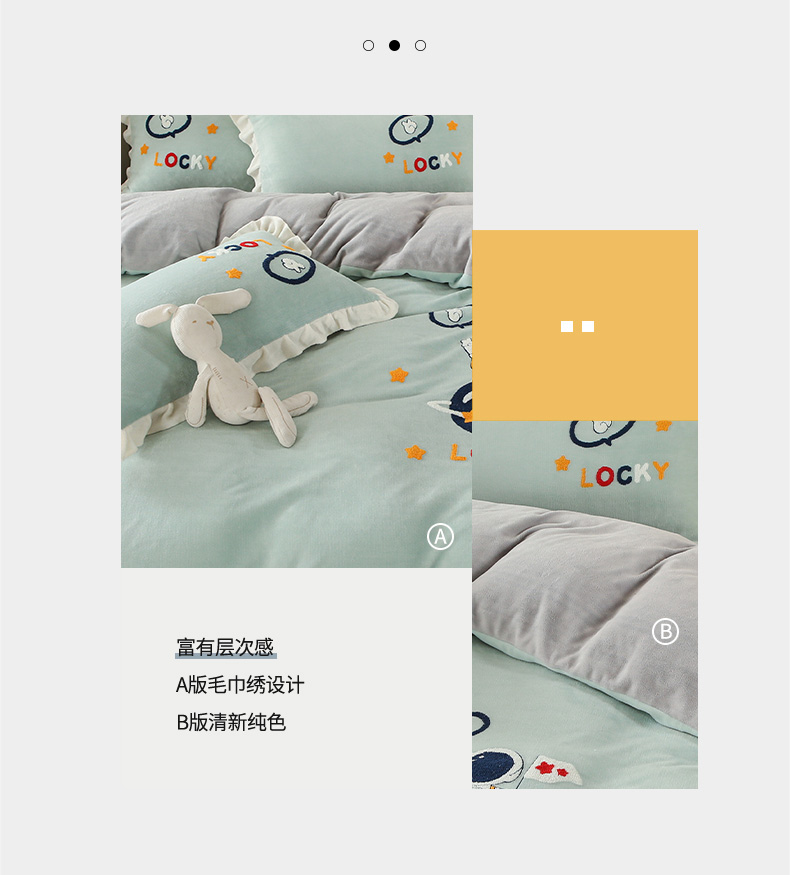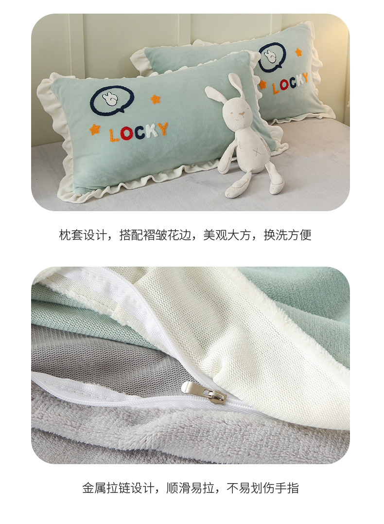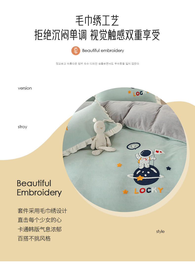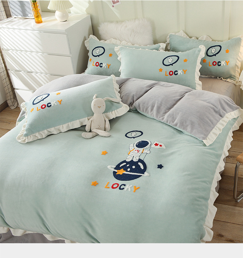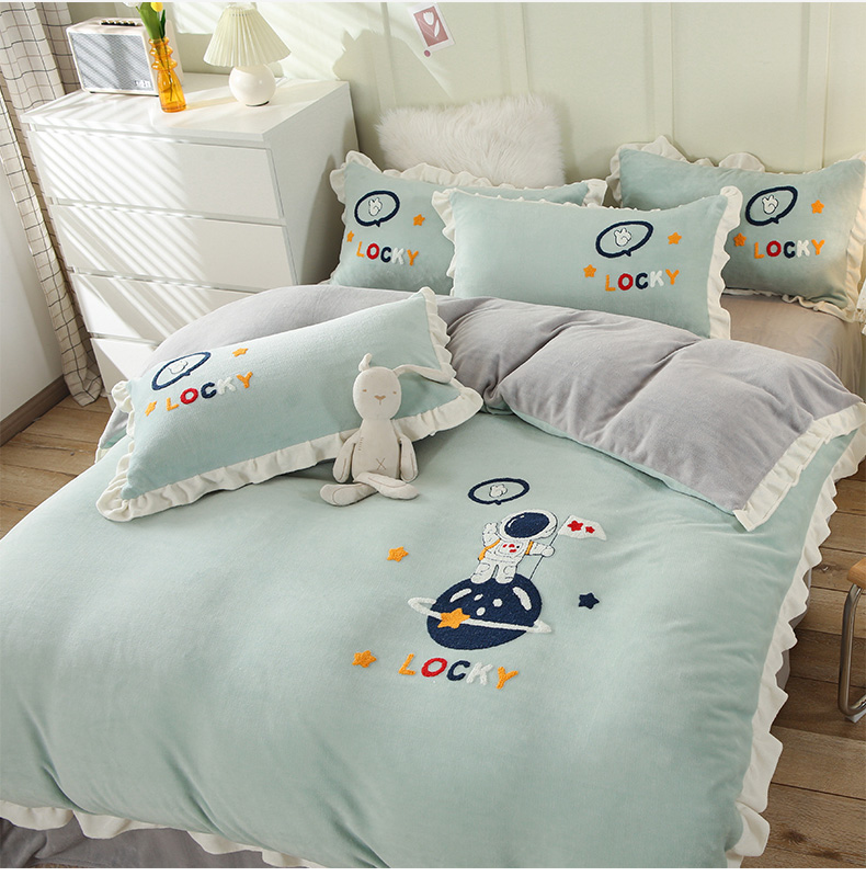 (总)沐辰 2023新款韩版绣花加厚牛奶绒四套件