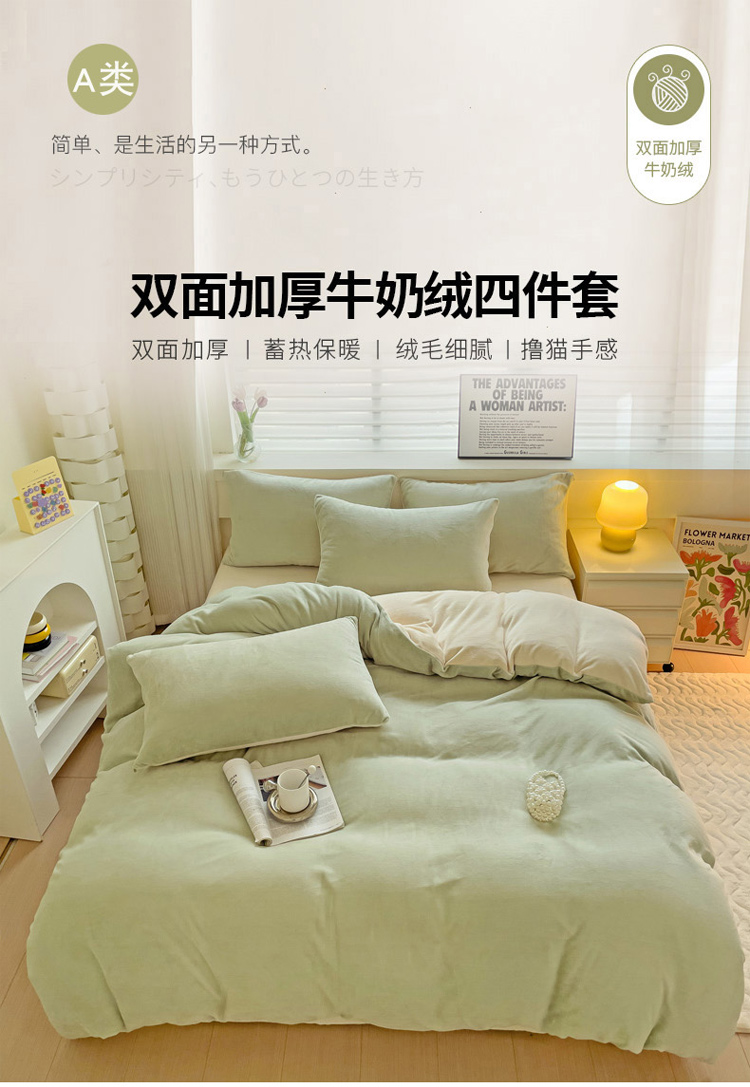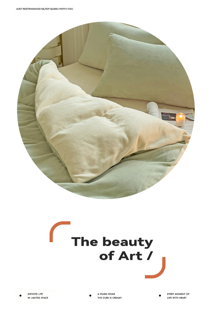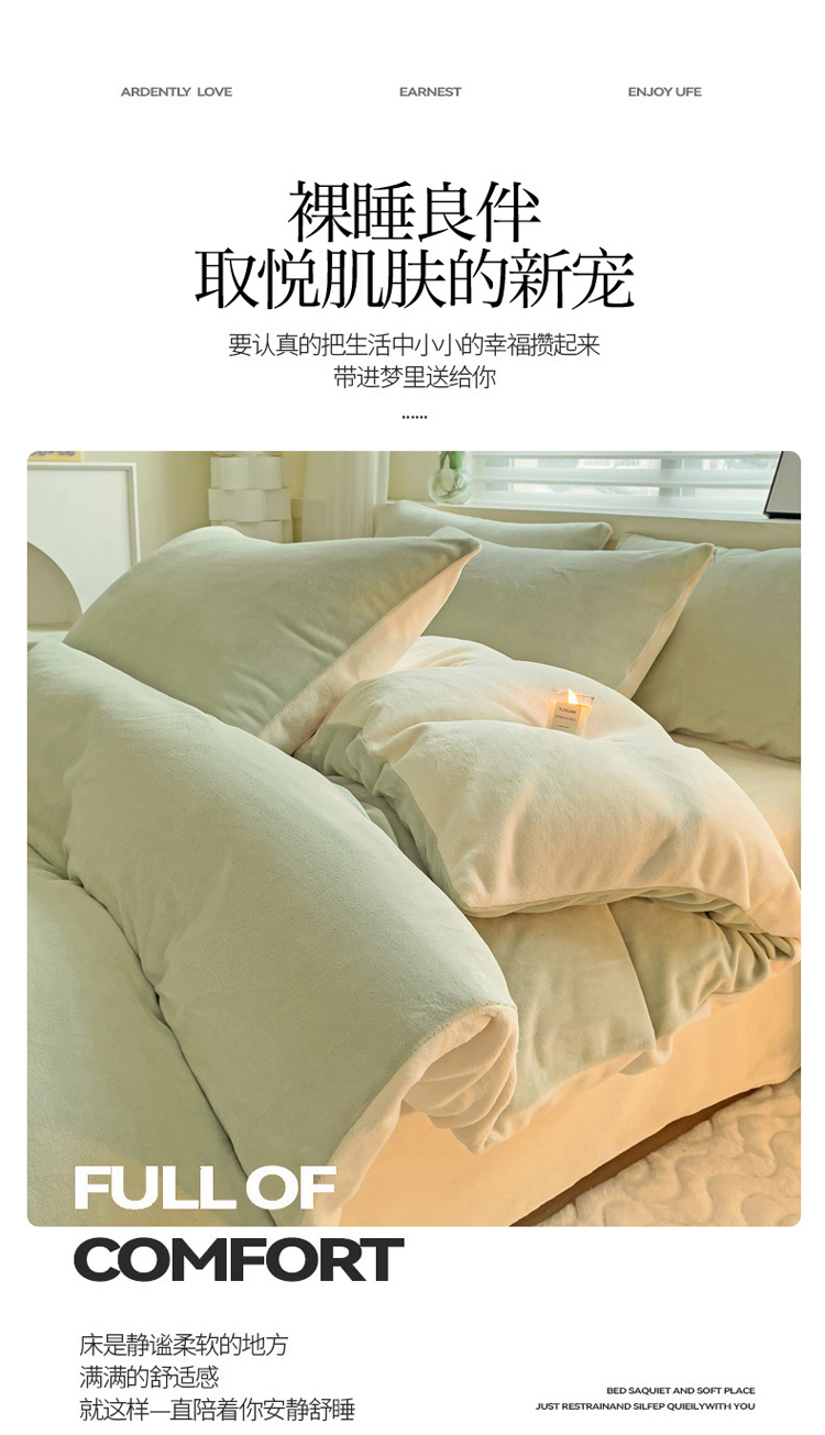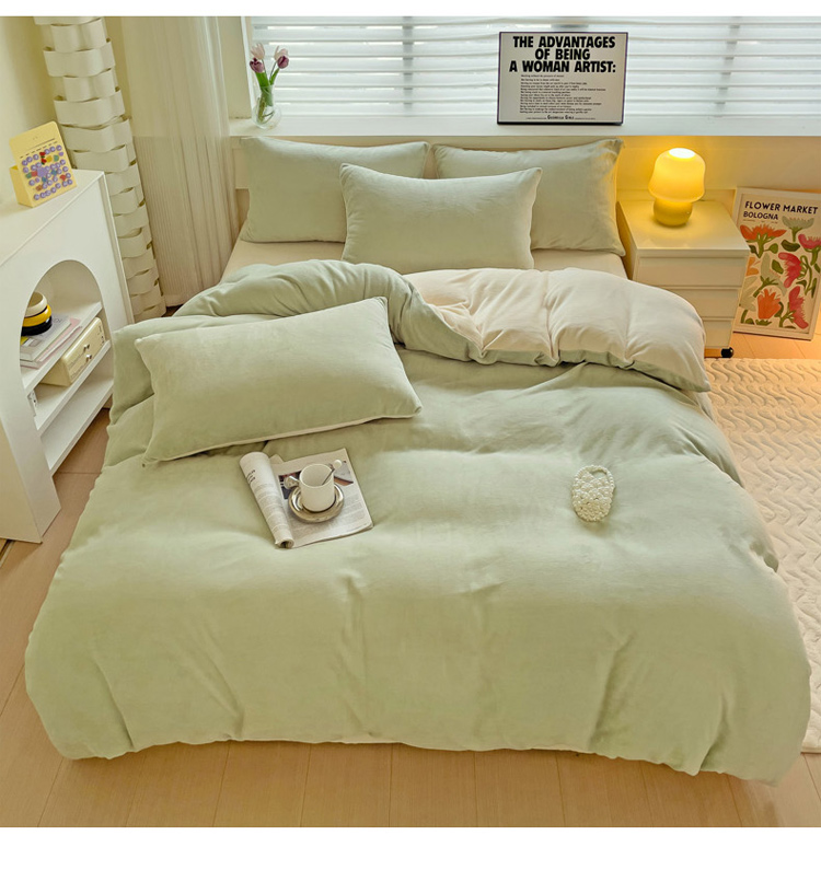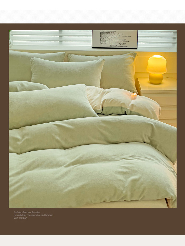 当前位置: 91家纺网 > 商品网购 > 床品套件 > 四件套 > 牛奶绒四件套 > 2023新款高克重舒适纯色牛奶绒单被套 豆绿奶黄