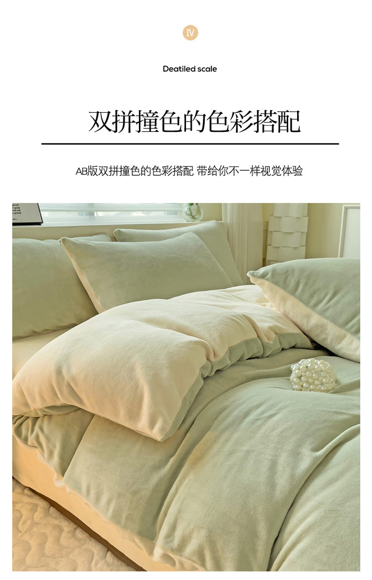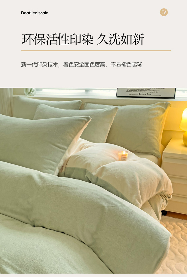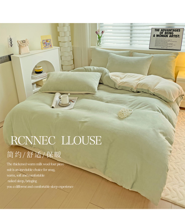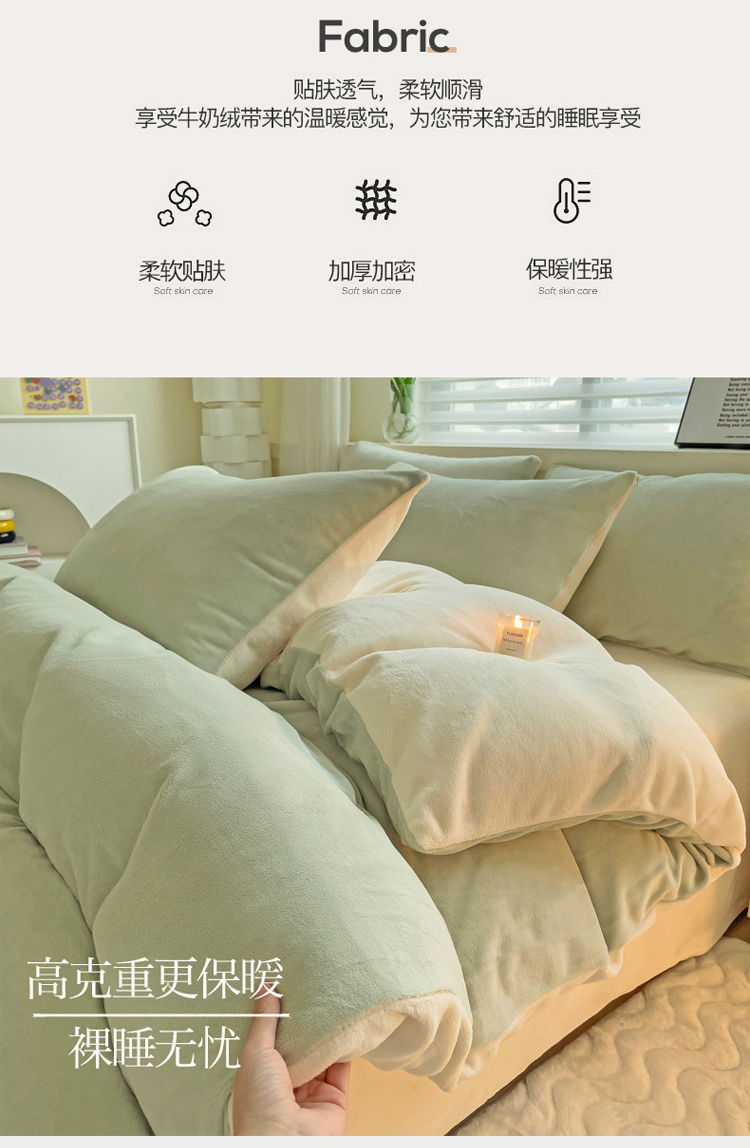 当前位置: 91家纺网 > 商品网购 > 床品套件 > 四件套 > 牛奶绒四件套 > 2023新款高克重舒适纯色牛奶绒单被套 豆绿奶黄