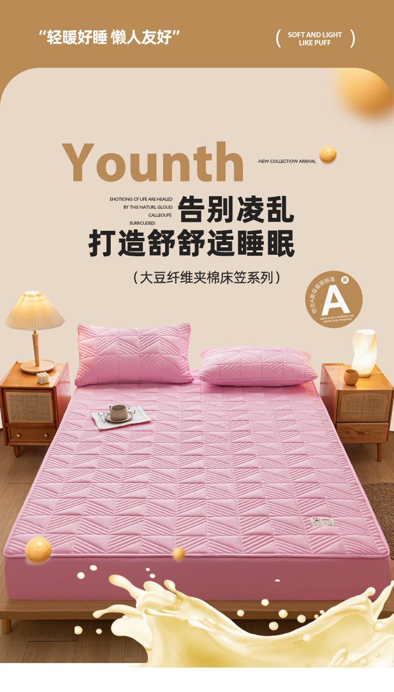 米粒家纺 2023新款A类大豆纤维夹棉床笠系列 格调-粉