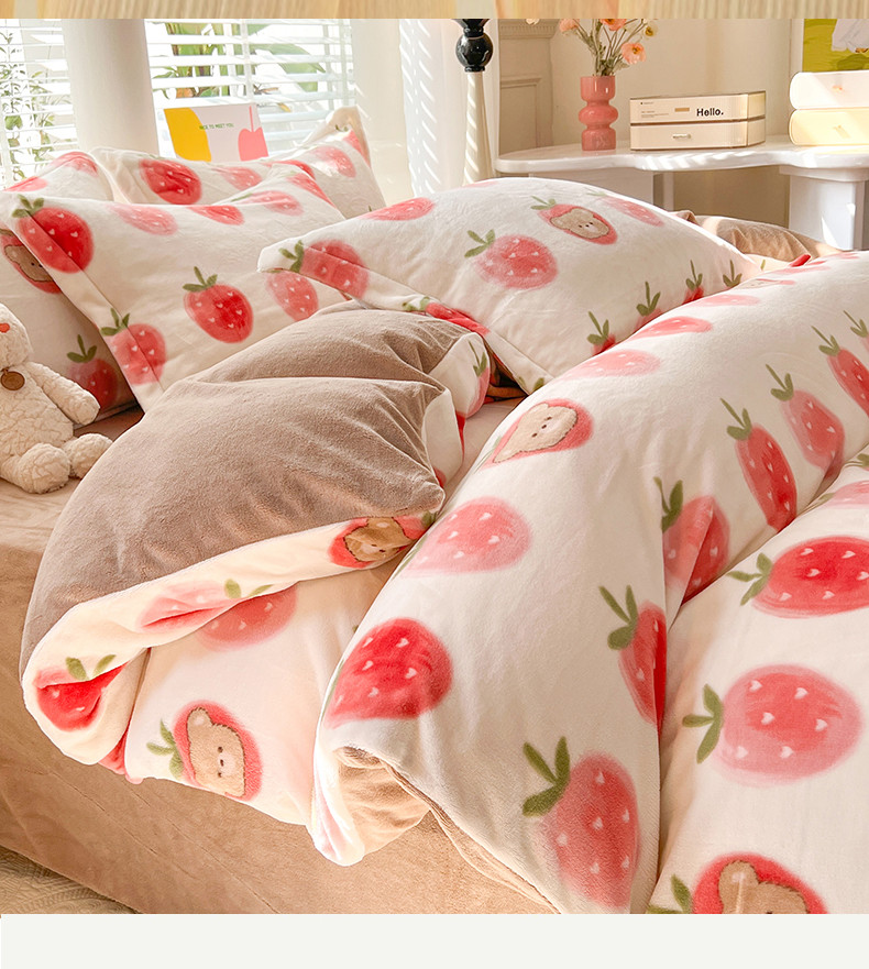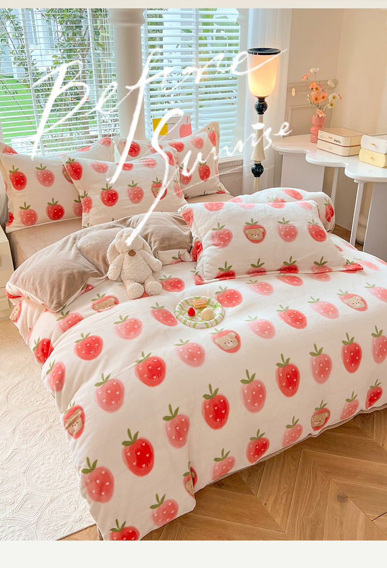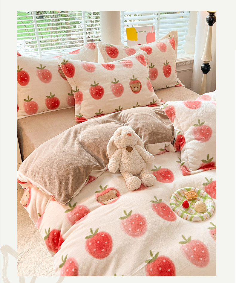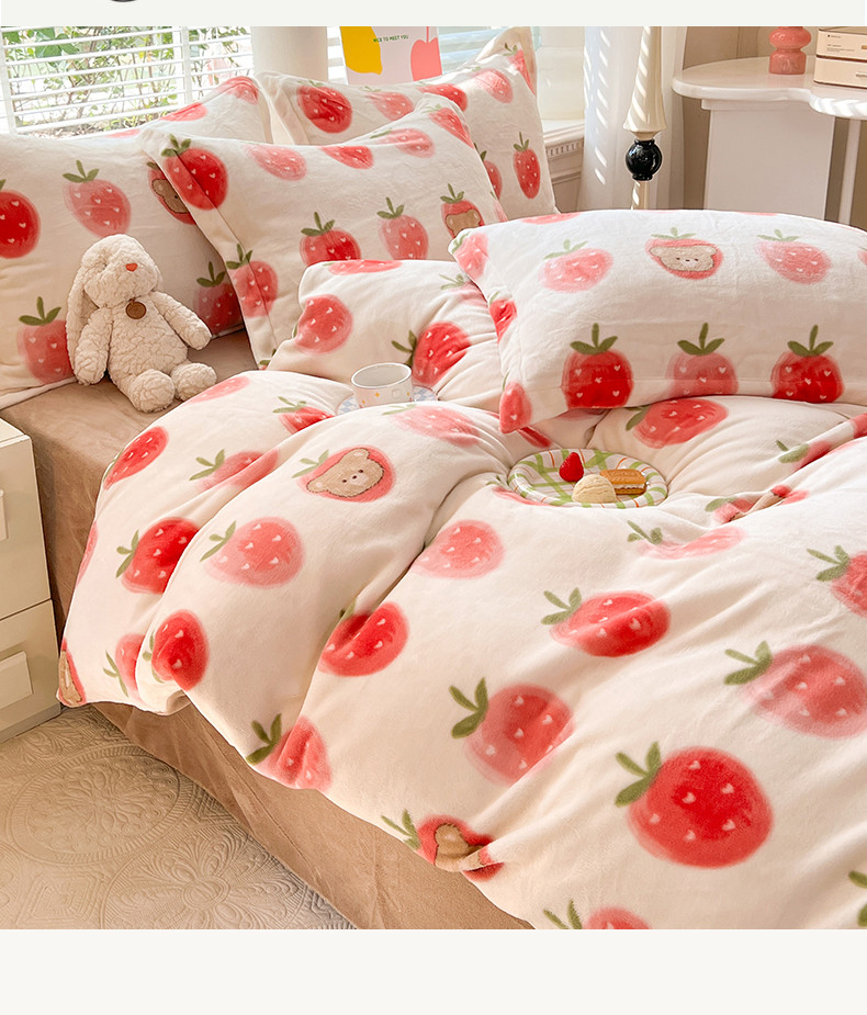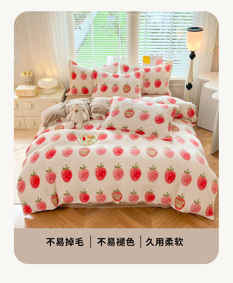 当前位置: 91家纺网 > 商品网购 > 床品套件 > 四件套 > 牛奶绒四件套 > 妖妖家纺 2023新款牛奶绒四件套 草莓小熊