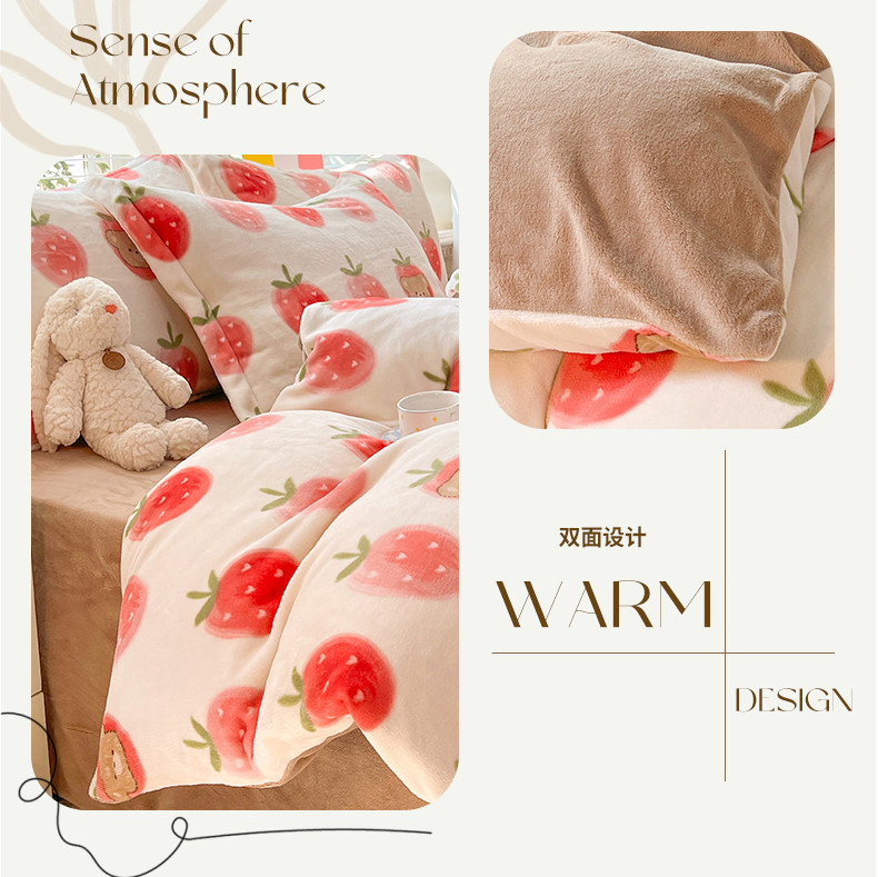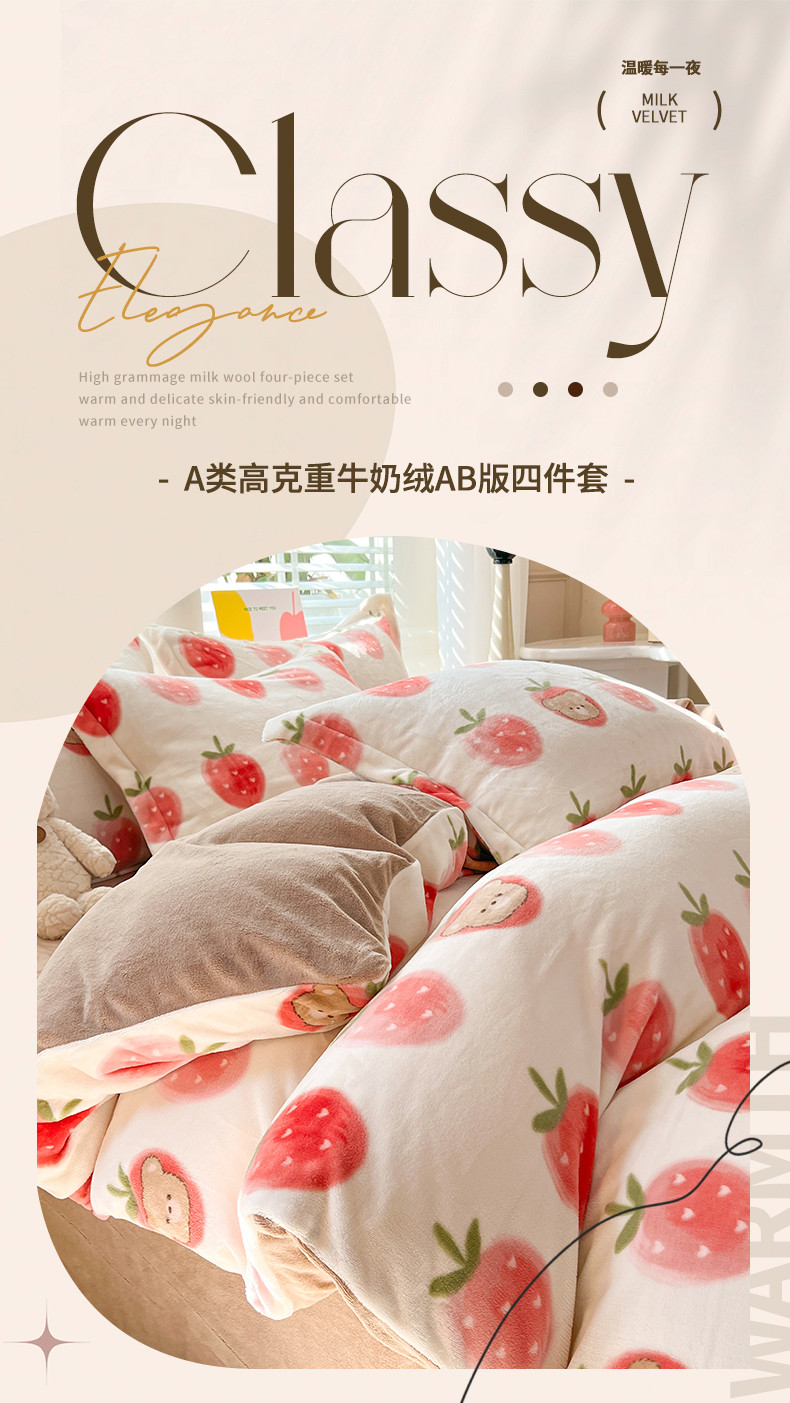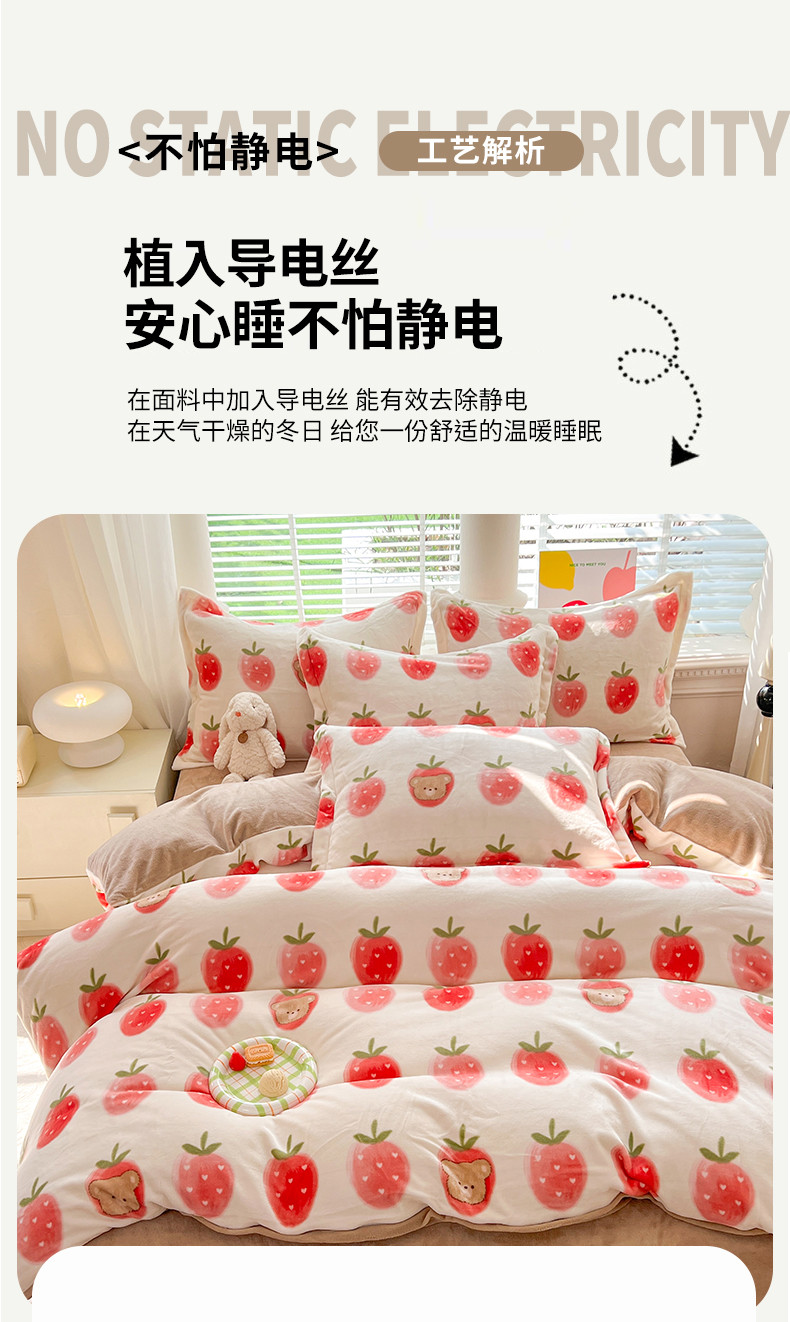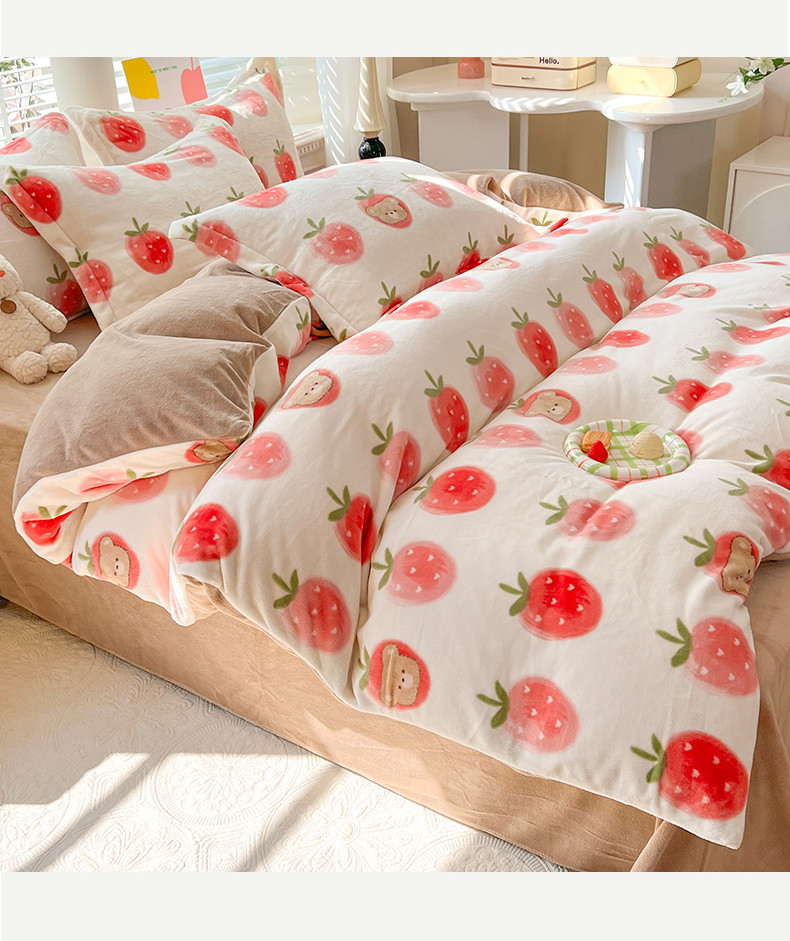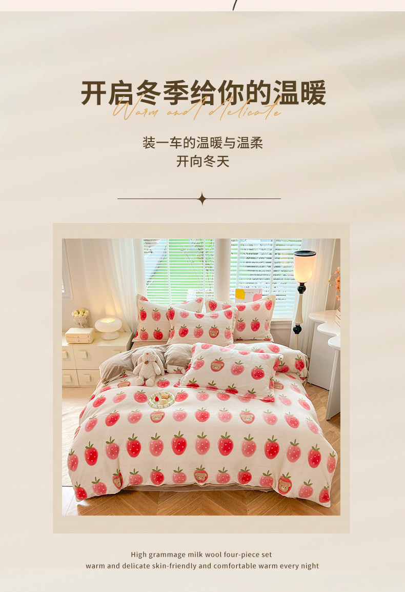 当前位置: 91家纺网 > 商品网购 > 床品套件 > 四件套 > 牛奶绒四件套 > 妖妖家纺 2023新款牛奶绒四件套 草莓小熊