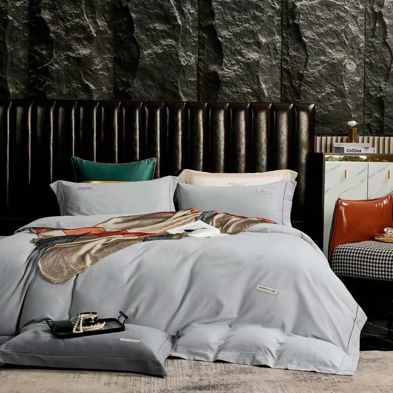 玖玖爱 2023新款120支新疆长绒棉绣花四件套-简尚系列 亚丁灰