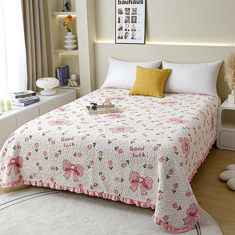 家维 2025年新款牛奶绒床盖花边款床盖 浪漫满屋