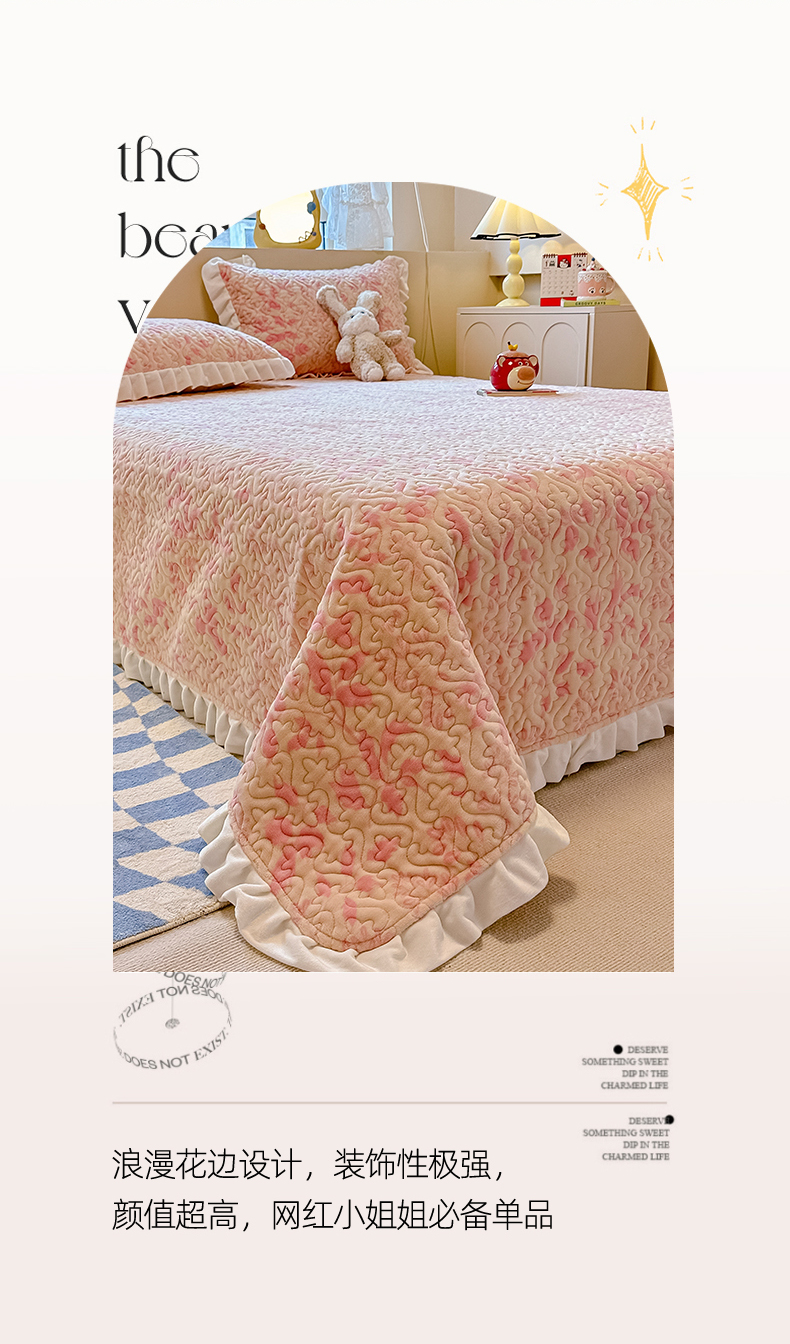 • 91家纺网 家纺一手货源 找家纺 简宜家居(朝初家纺)2023新款牛奶绒夹棉床盖 觅棠