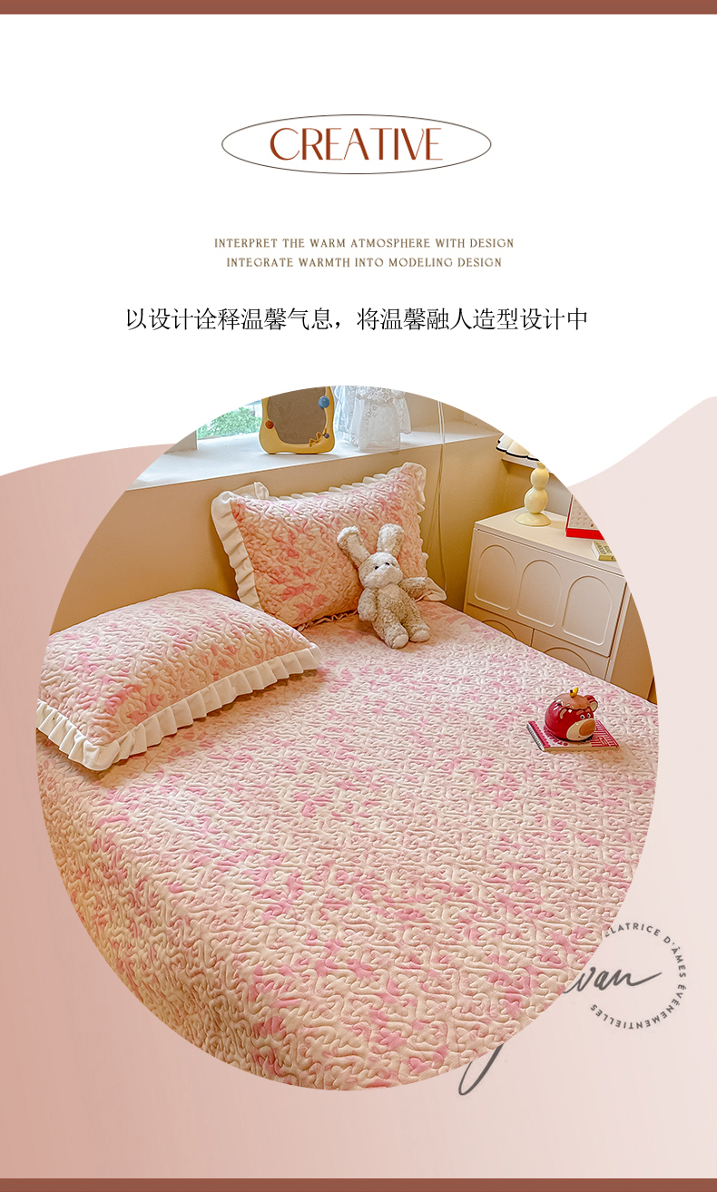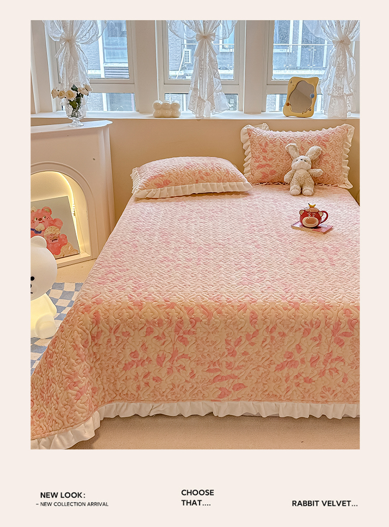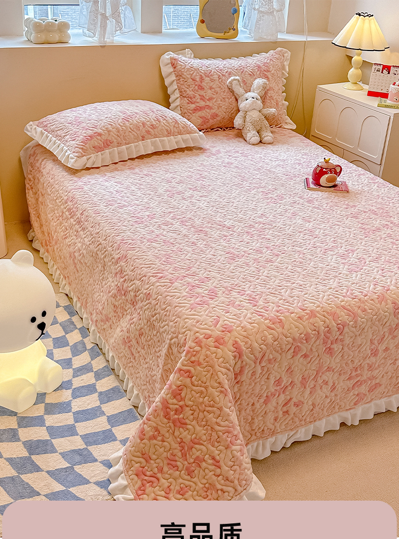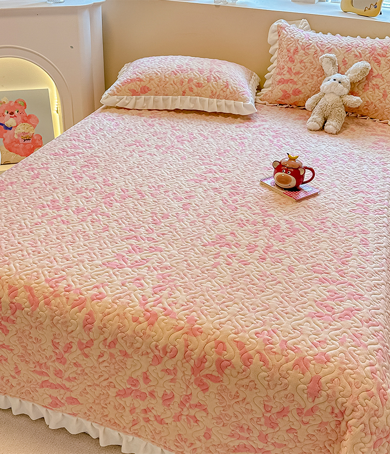 简宜家居(朝初家纺) 2023新款牛奶绒夹棉床盖 觅棠