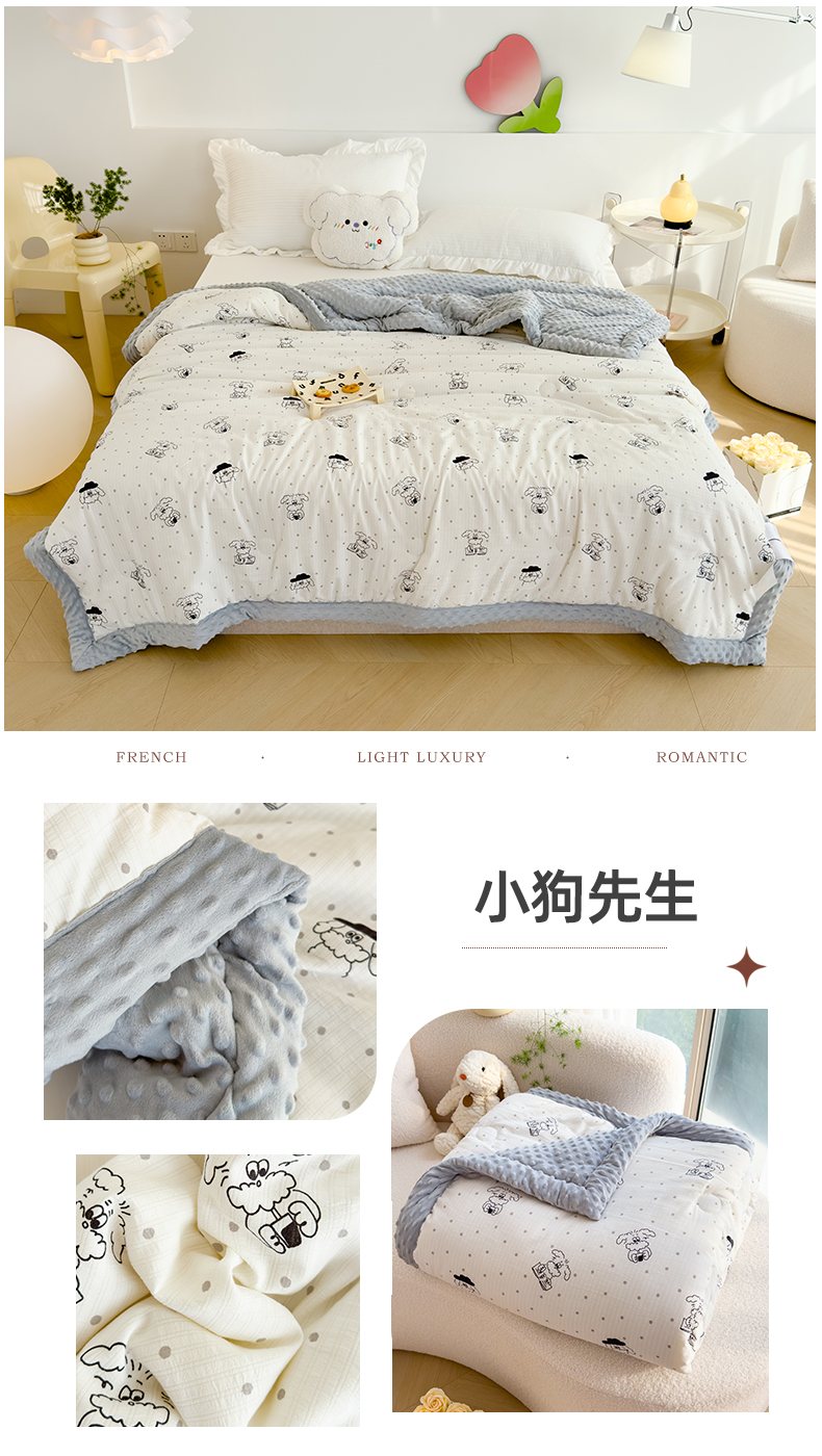 • 91家纺网 家纺一手货源 找家纺 芯恋家居2025新款提花软糯保暖3D豆豆被手包边夏被四季被春秋冬被 小狗先生