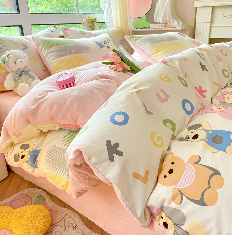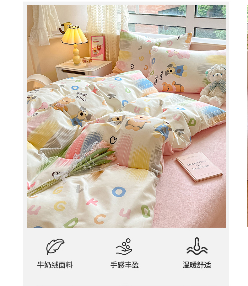当前位置: 91家纺网 > 商品网购 > 床品套件 > 四件套 > 牛奶绒四件套 > 麦伦家居 2023秋冬新品多功能床品全棉加牛奶绒四件套 字母节拍