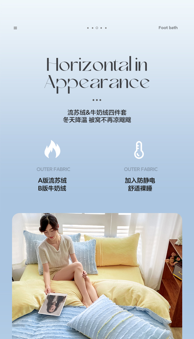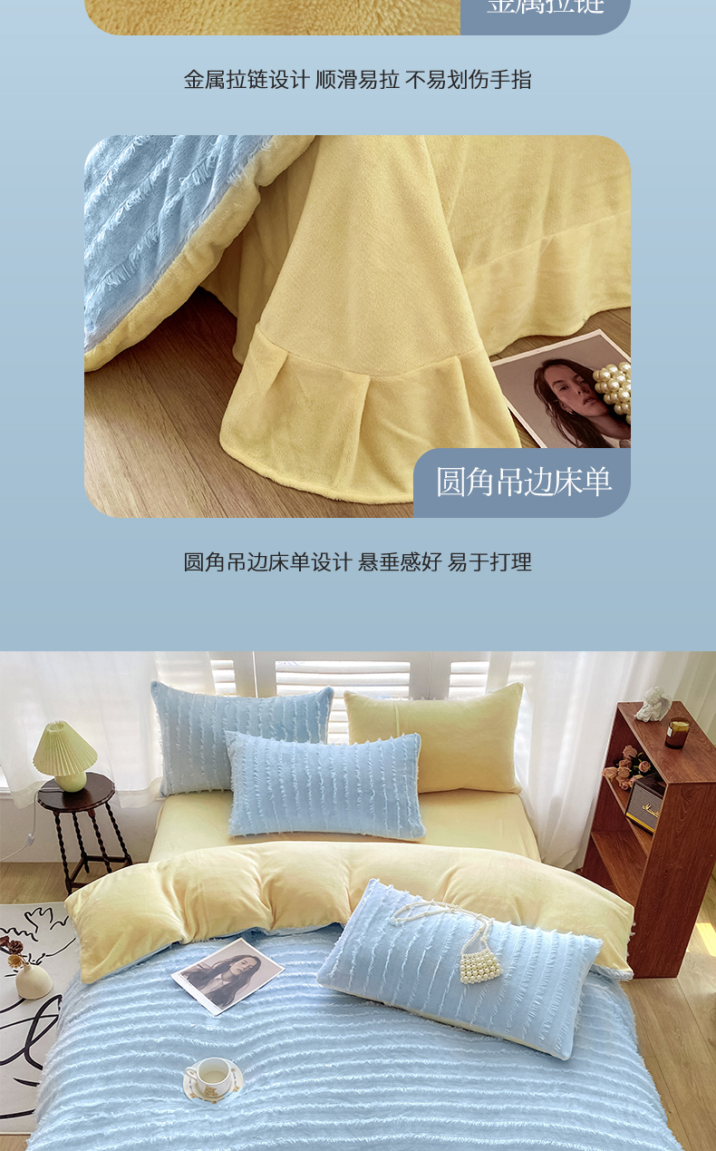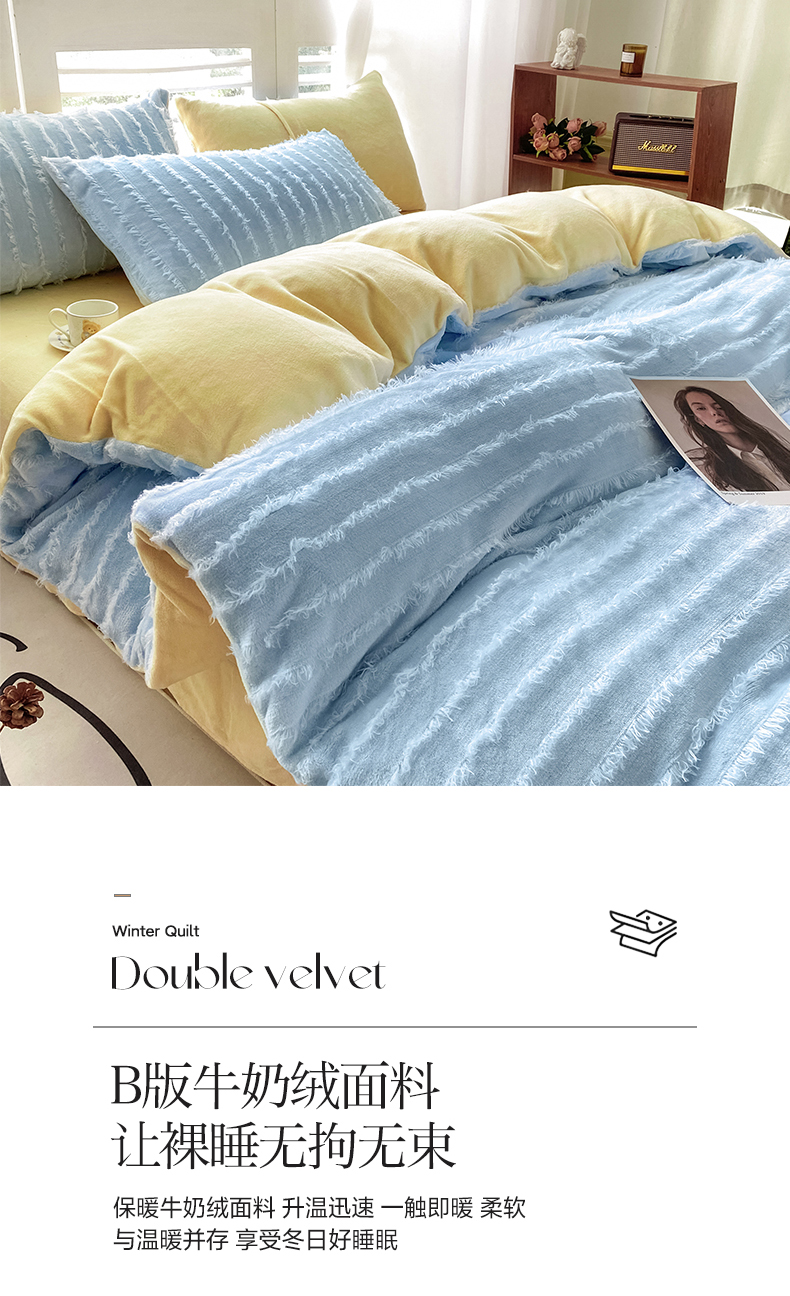 当前位置: 91家纺网 > 商品网购 > 床品套件 > 四件套 > 牛奶绒四件套 > 吾诺家居 2023新款保暖流苏绒牛奶绒四件套 流苏浅蓝