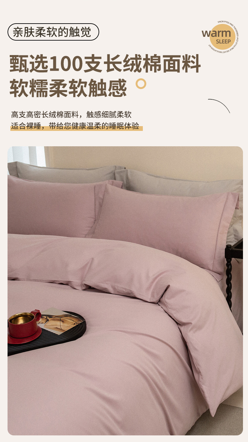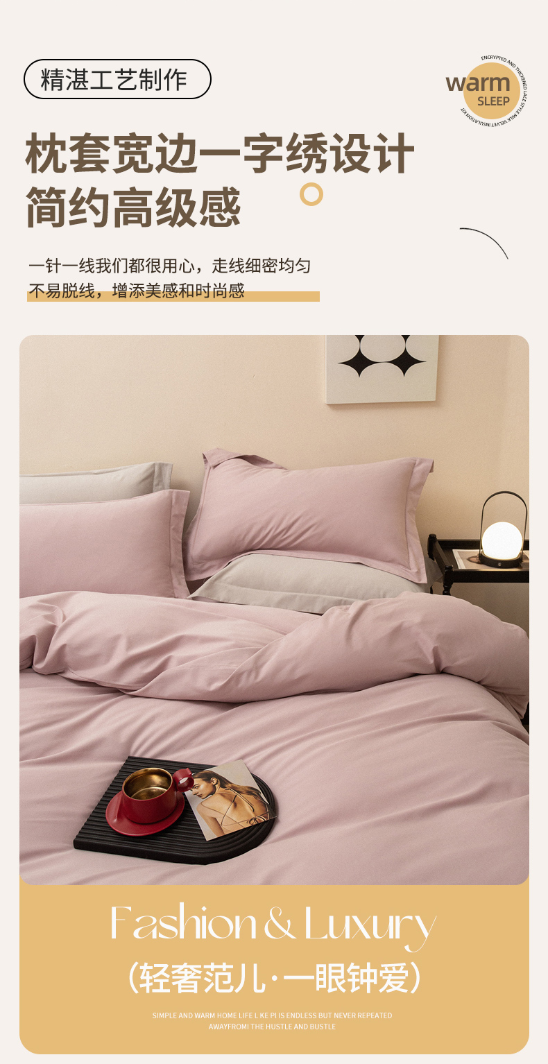 商品名称:ONE TWO ONE 121 2023新款A类高支高密长绒棉一字绣宽边磨毛四件套 扶罗粉