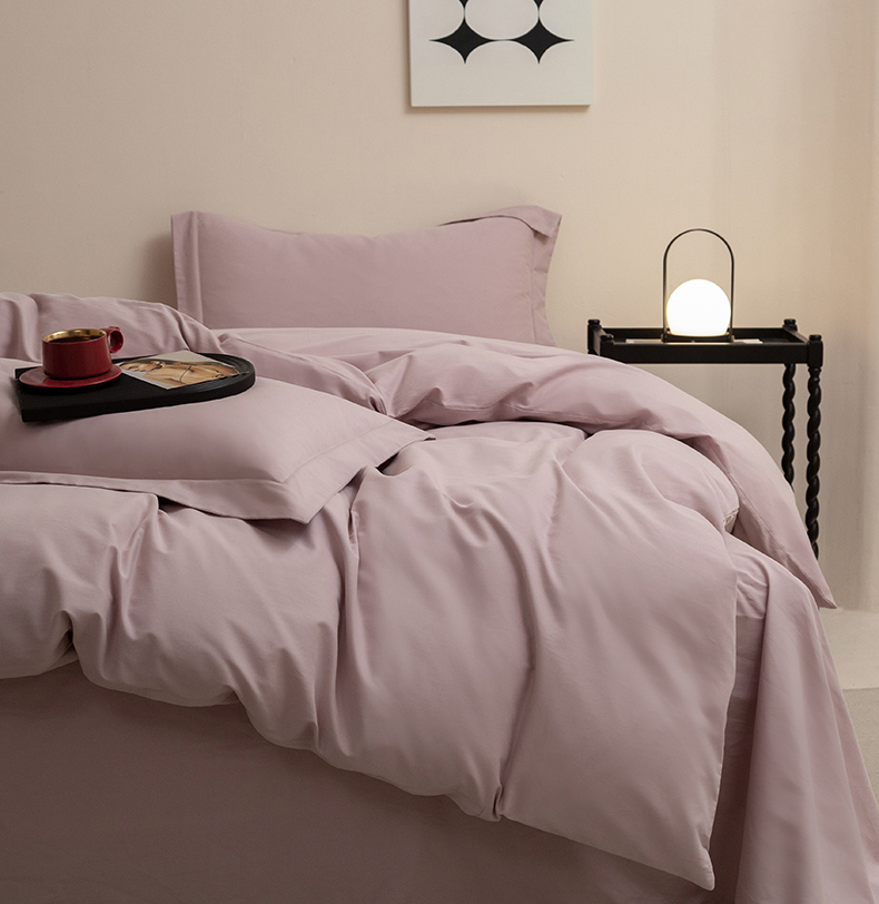 ONE TWO ONE 121 2023新款A类高支高密长绒棉一字绣宽边磨毛四件套 扶罗粉