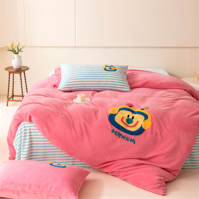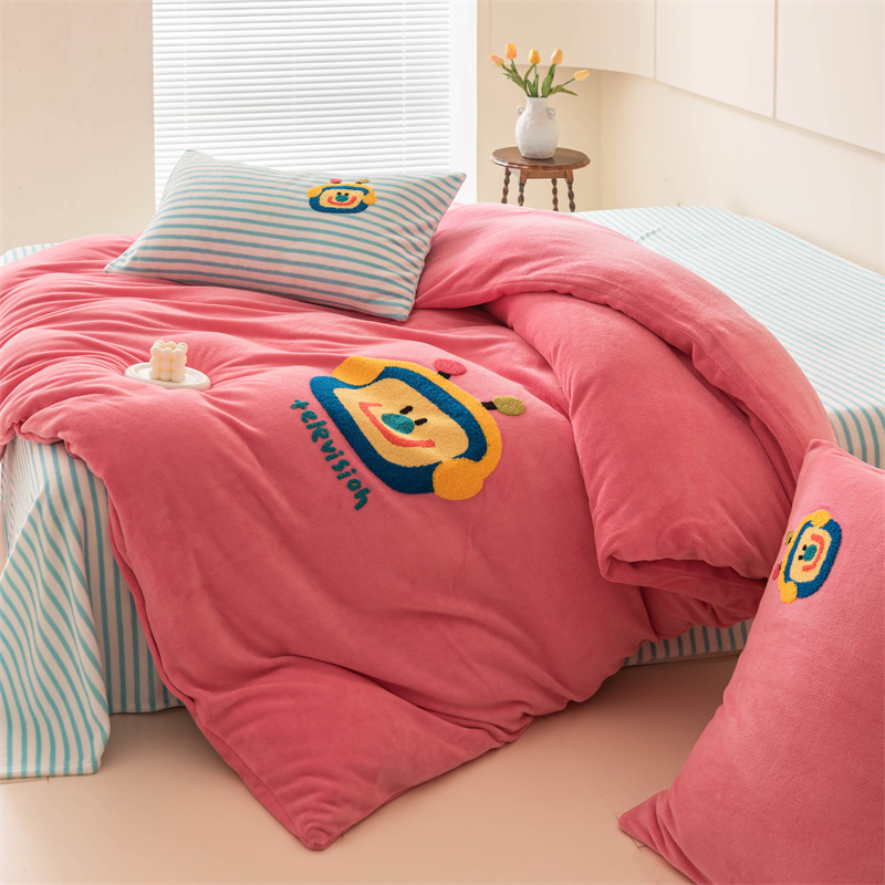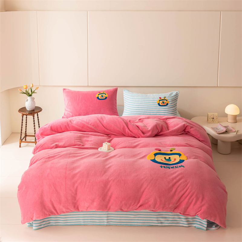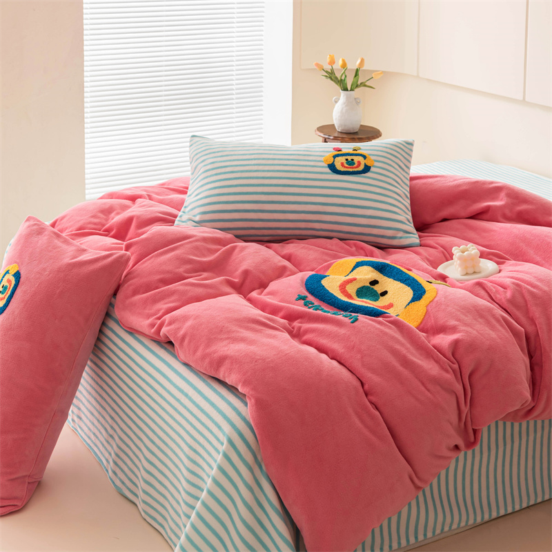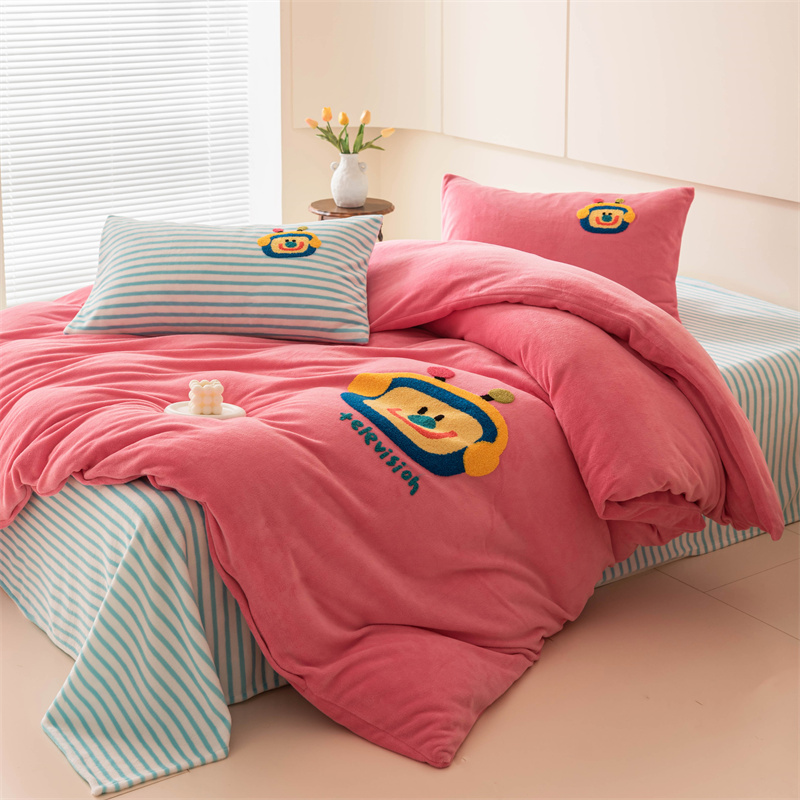 洋铭区(原狠狠爱) 2023新款AB版牛奶绒四件套-元气满满系列 元气满满玫红