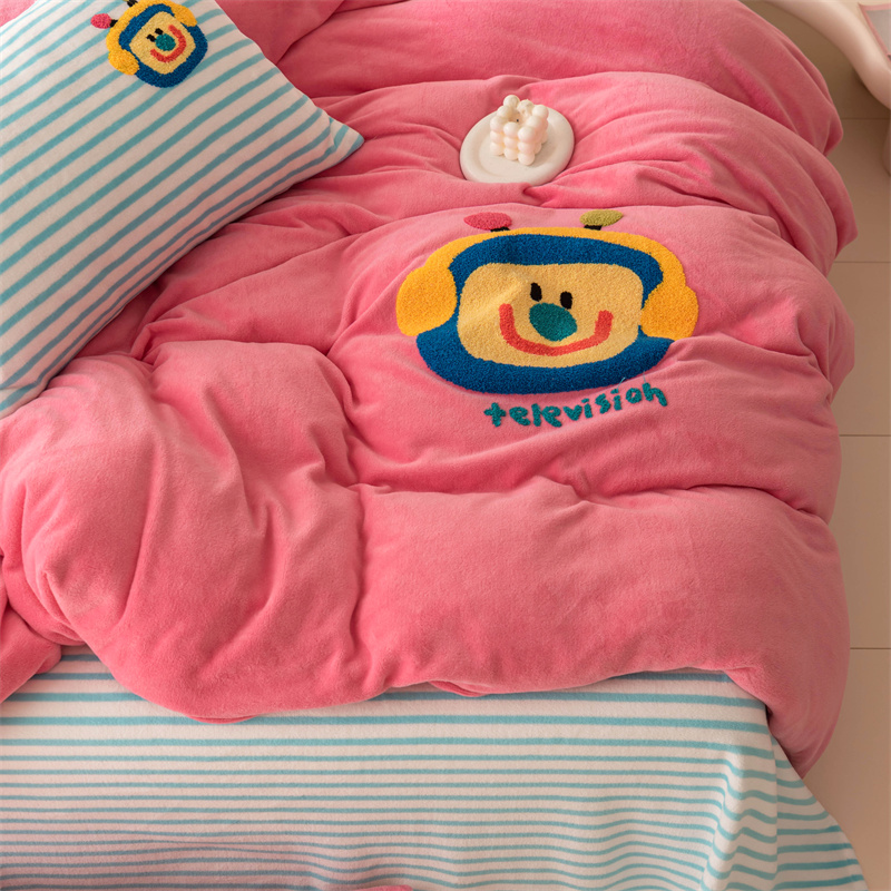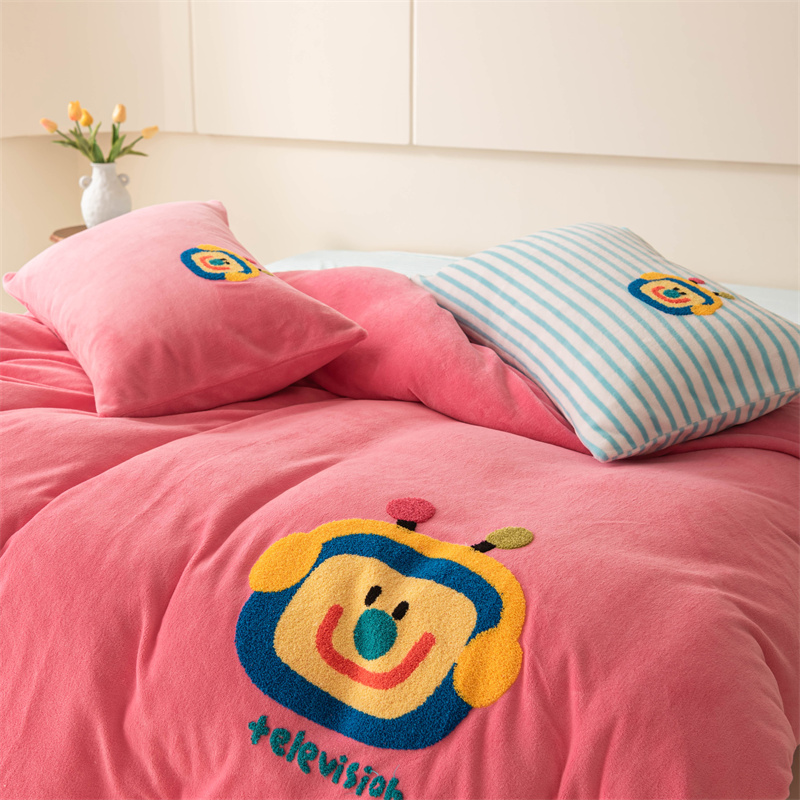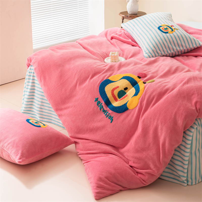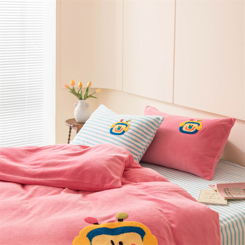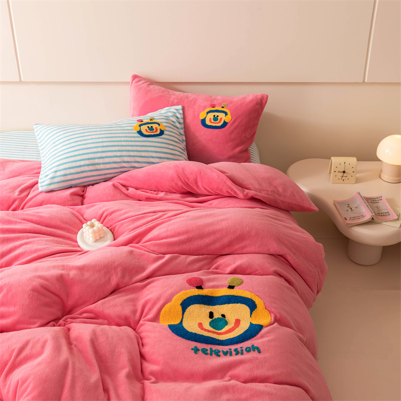 洋铭区(原狠狠爱) 2023新款AB版牛奶绒四件套-元气满满系列 元气满满玫红