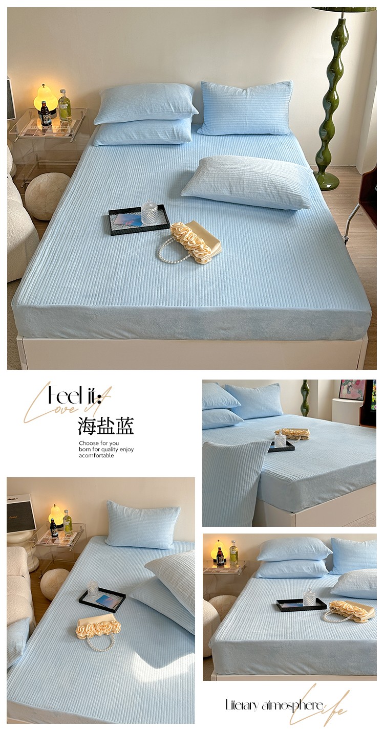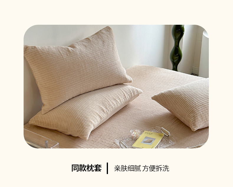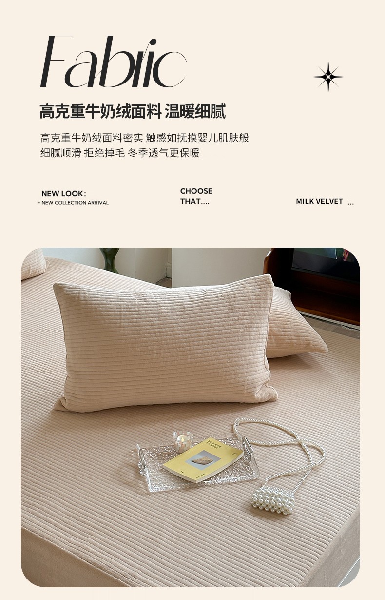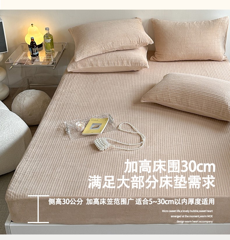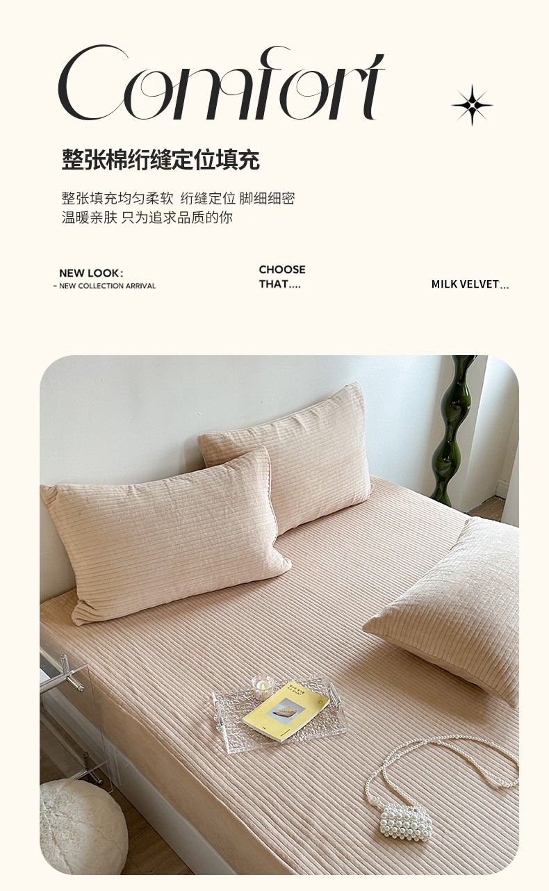 (总)漫调 2023新款直条绗缝牛奶绒纯色夹棉床笠