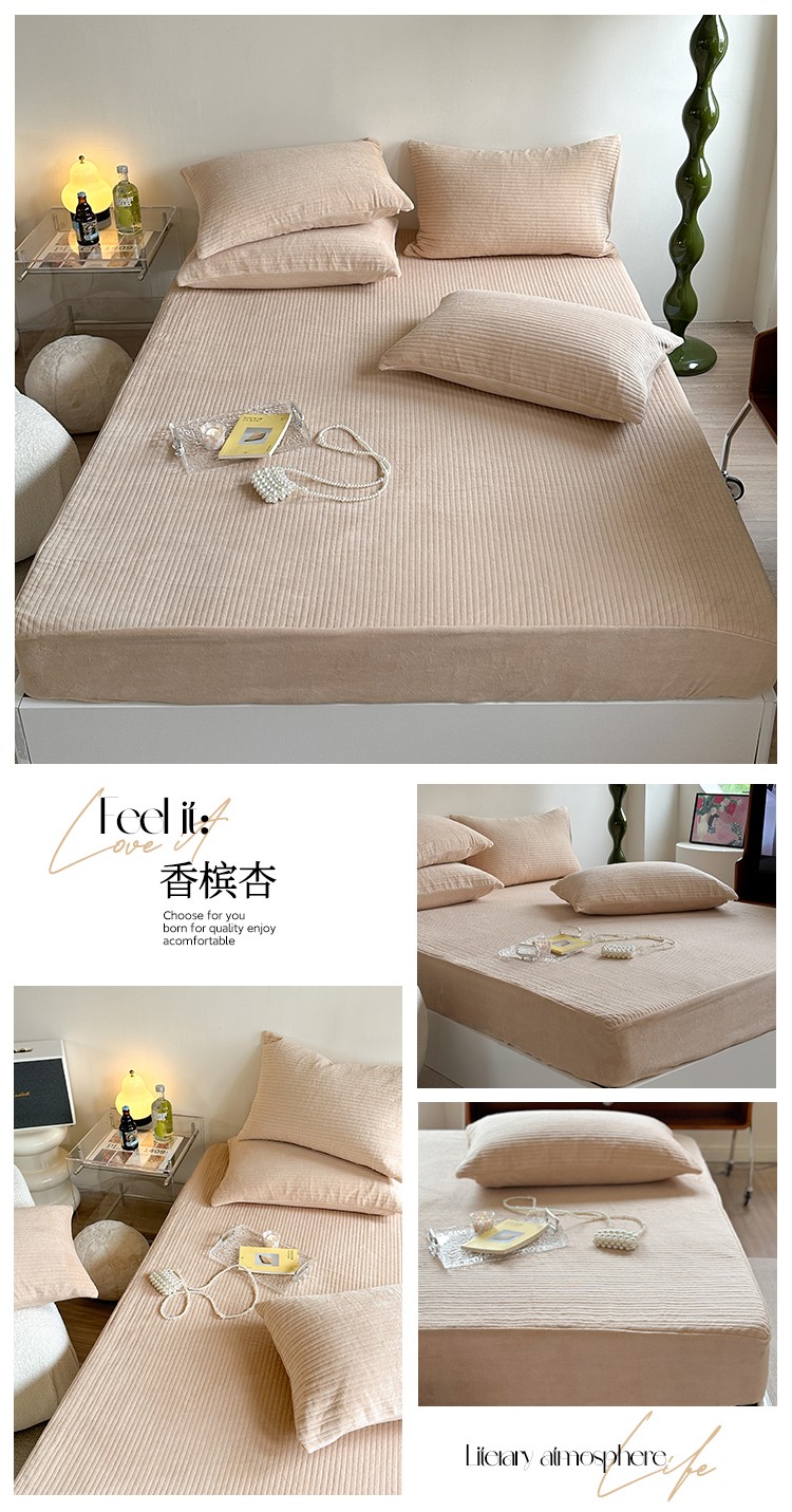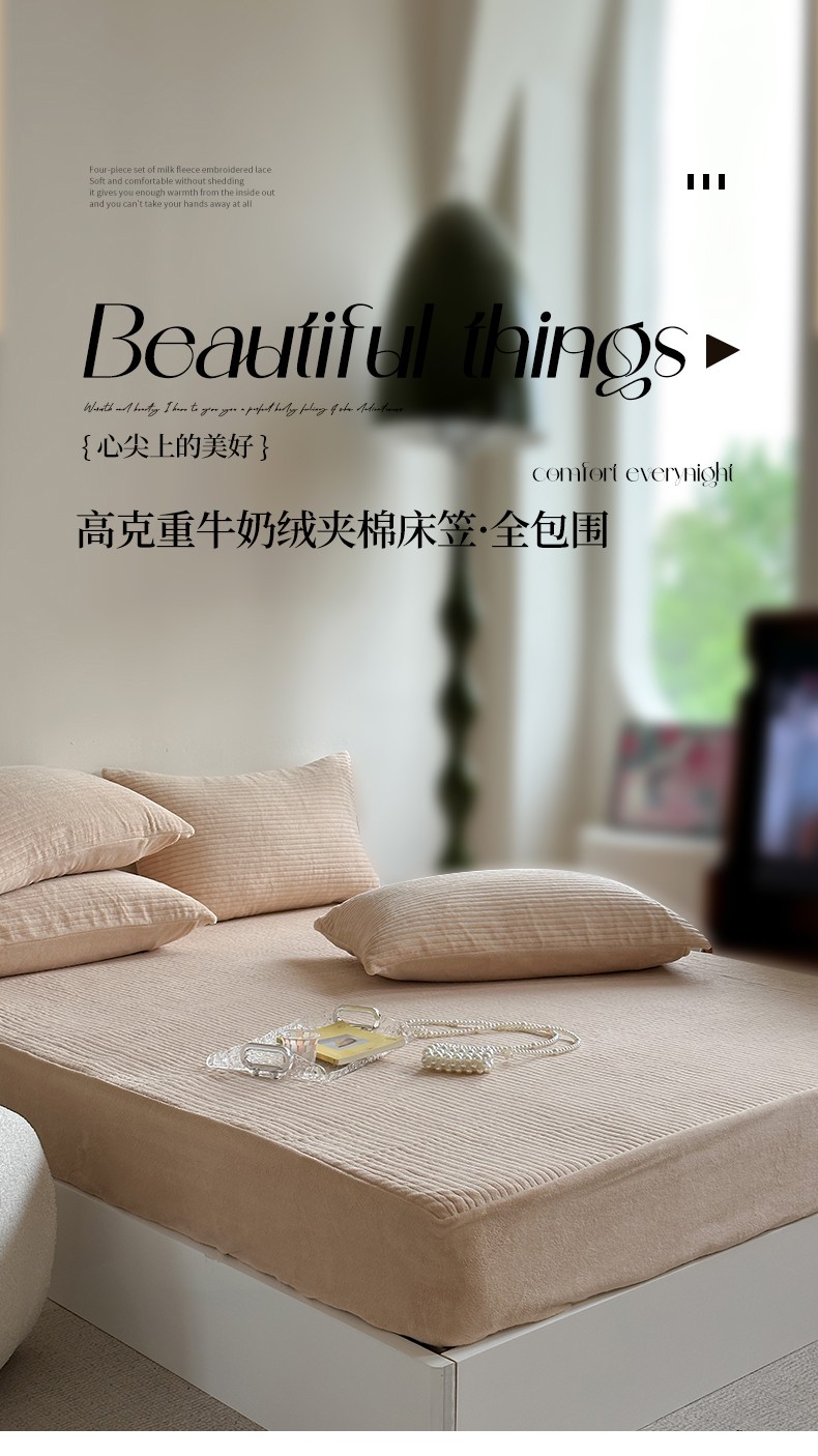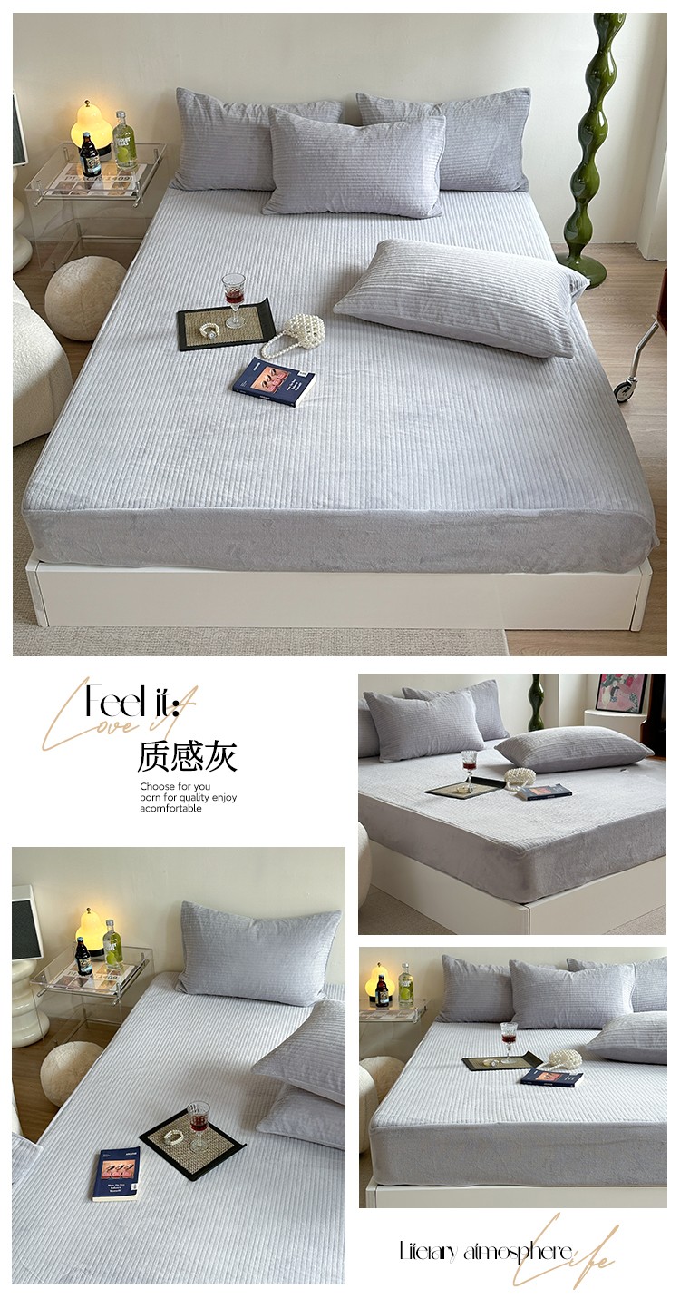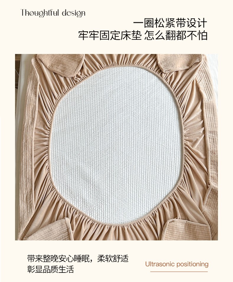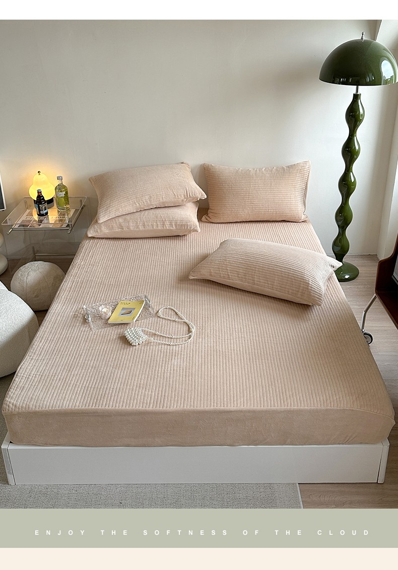(总)漫调 2023新款直条绗缝牛奶绒纯色夹棉床笠