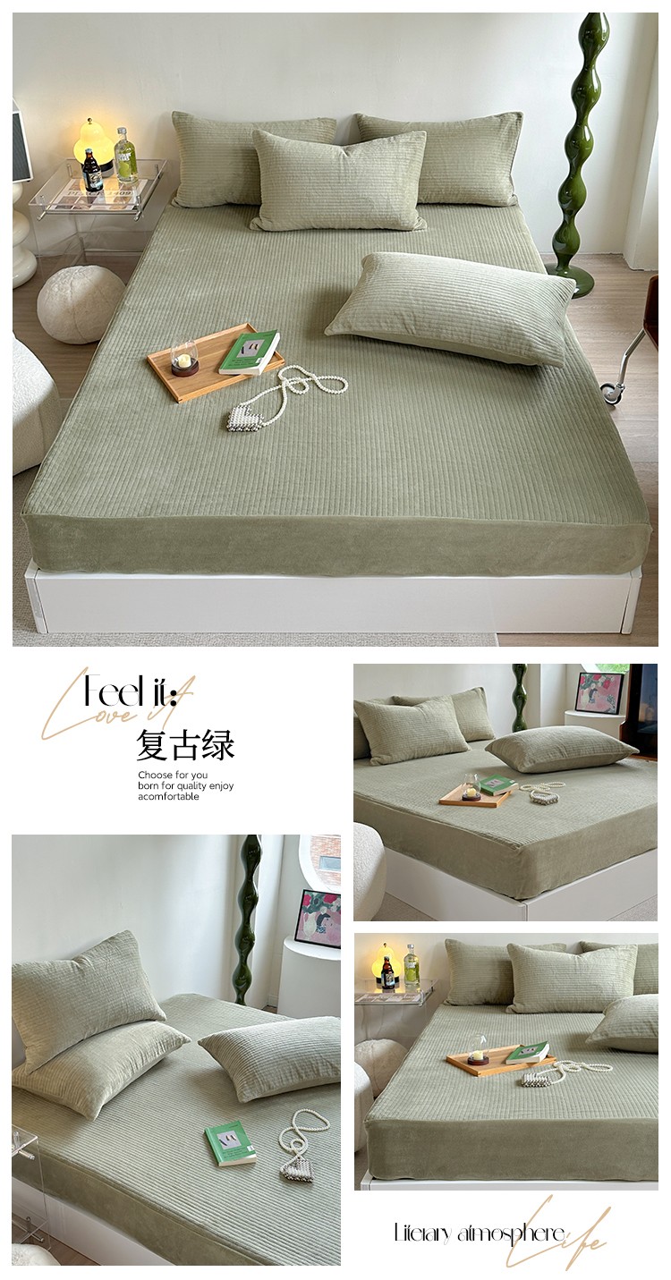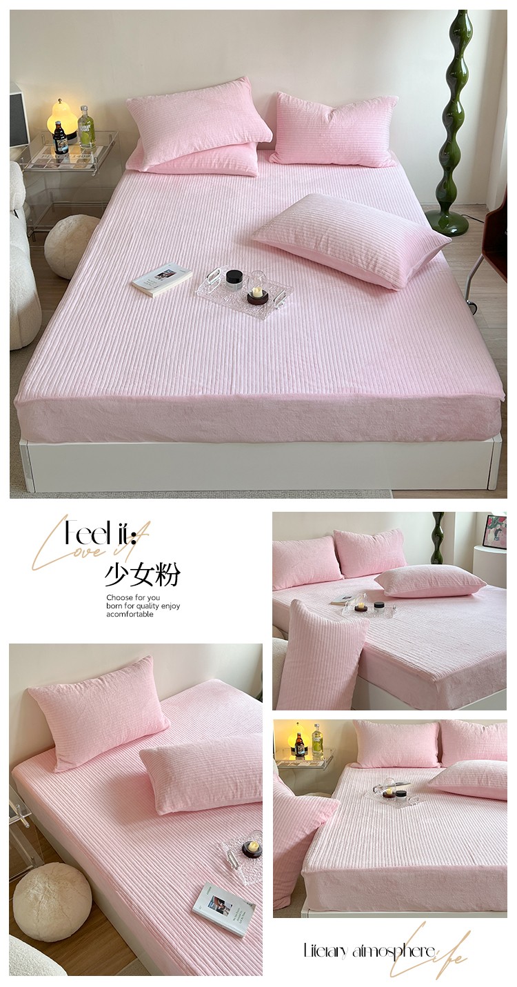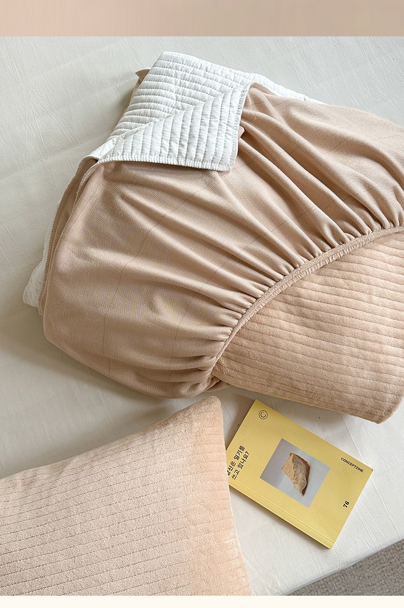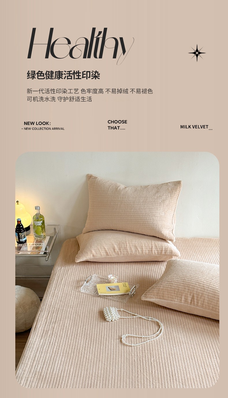 (总)漫调 2023新款直条绗缝牛奶绒纯色夹棉床笠