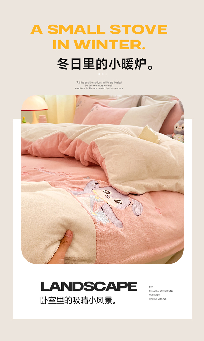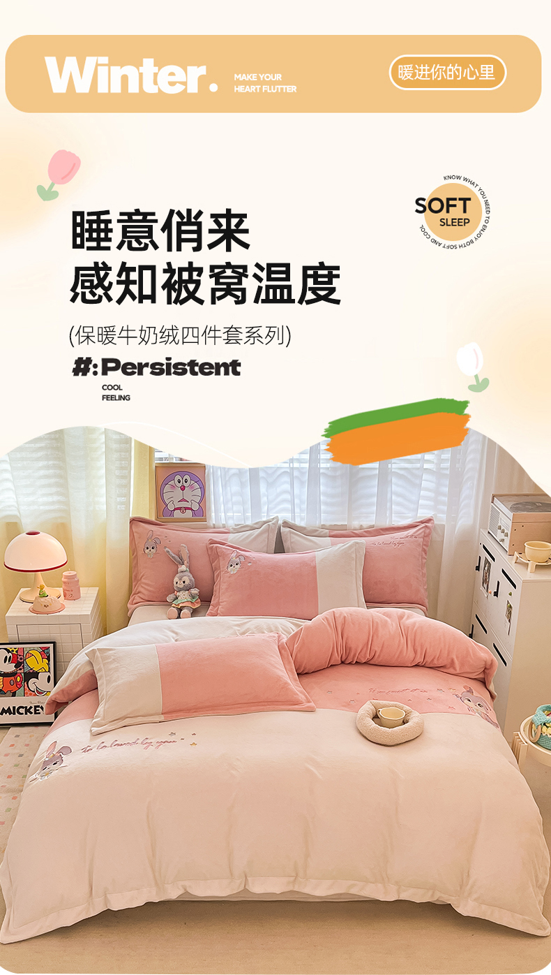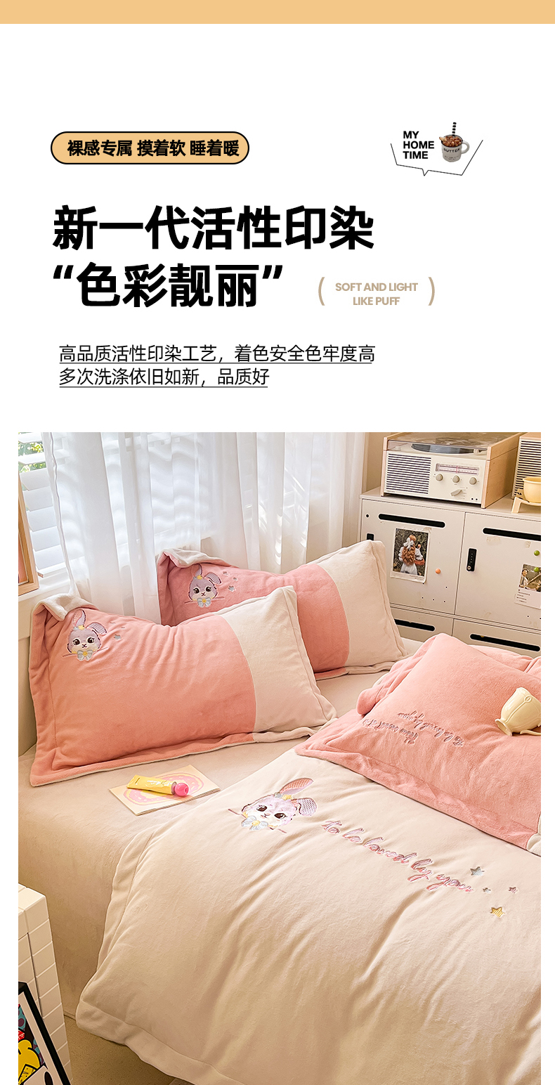当前位置: 91家纺网 > 商品网购 > 床品套件 > 四件套 > 牛奶绒四件套 > 爱上家居 2023新款保暖加厚卡通刺绣牛奶绒四件套 兔眠-卡其拼粉