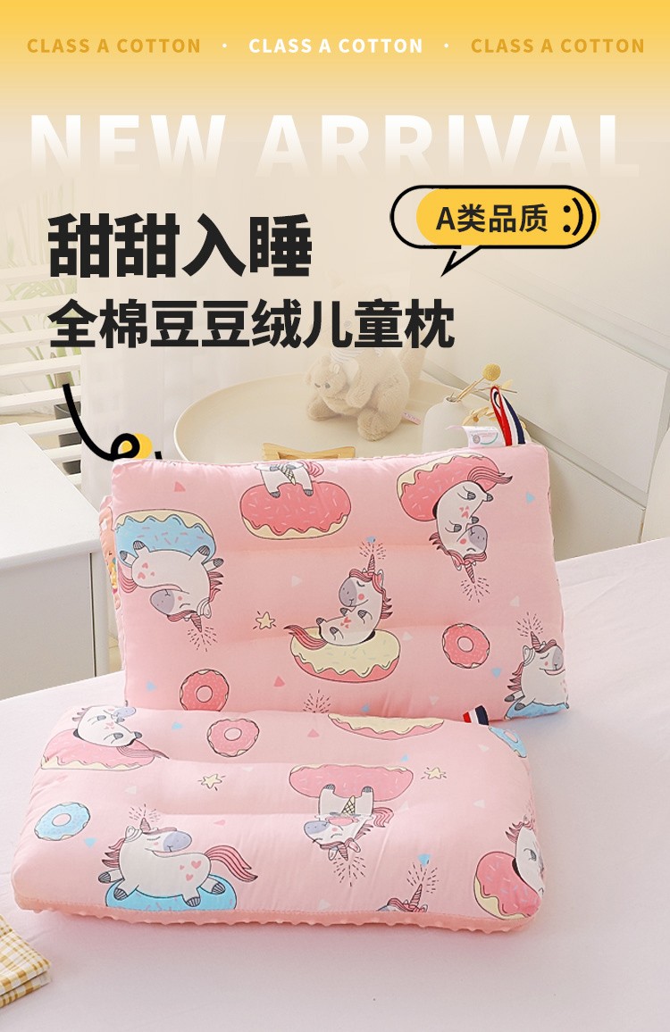 冬巢2023新款可拆卸纯棉133*72安抚豆豆绒儿童枕头枕芯