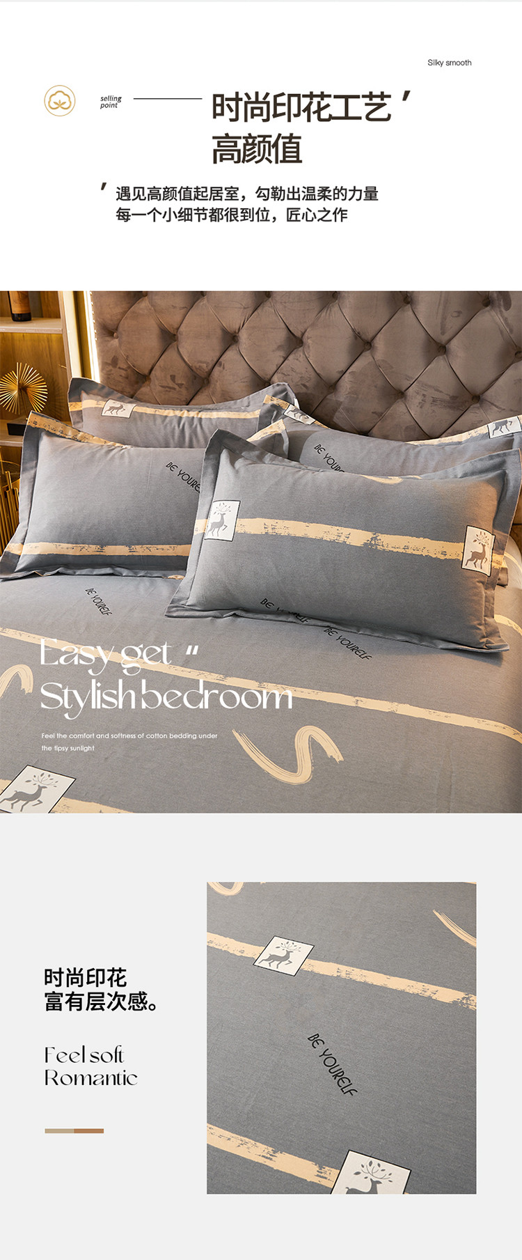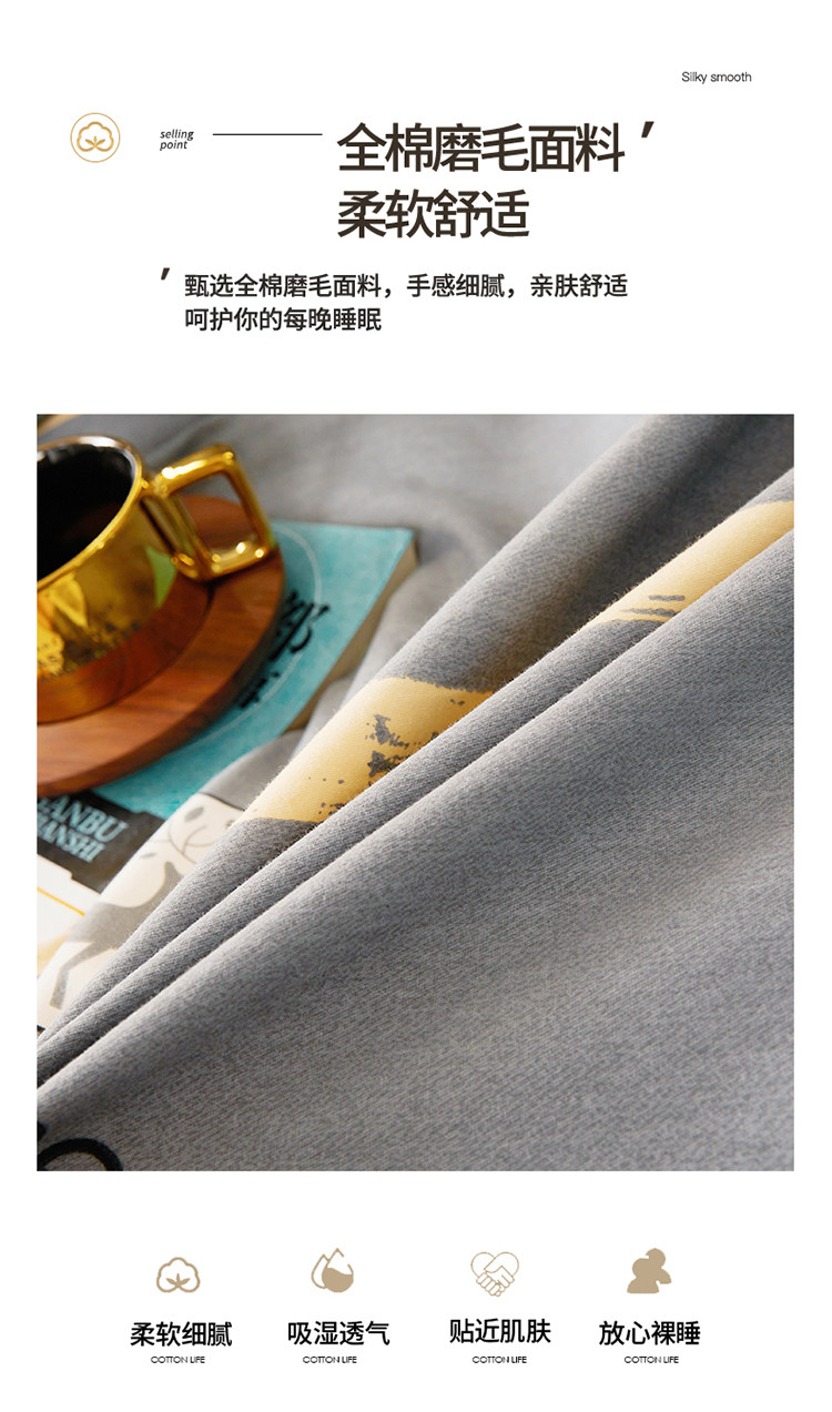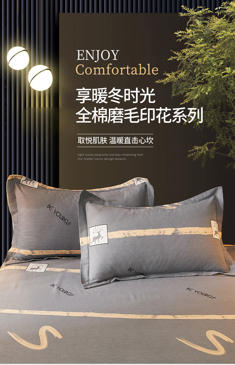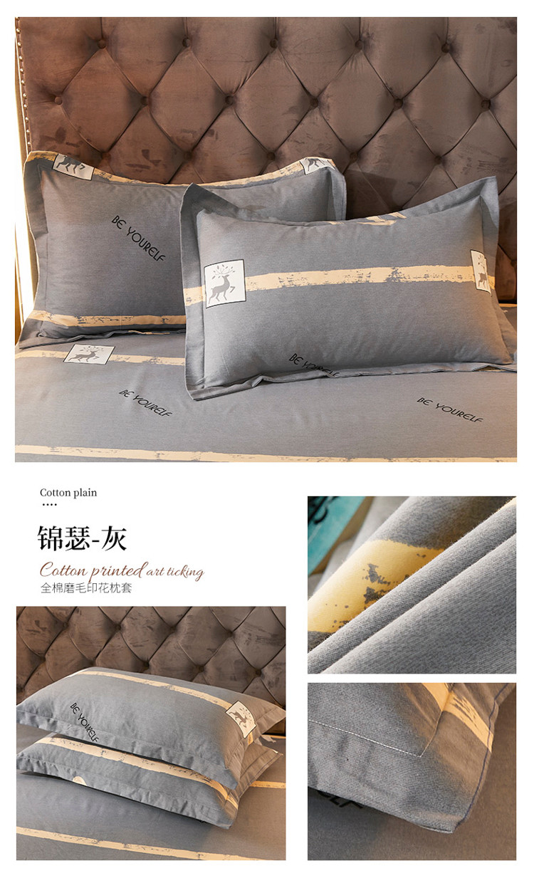 商品名称:伊而梦 2023新款全棉磨毛印花四件套系列单品枕套 锦瑟-灰