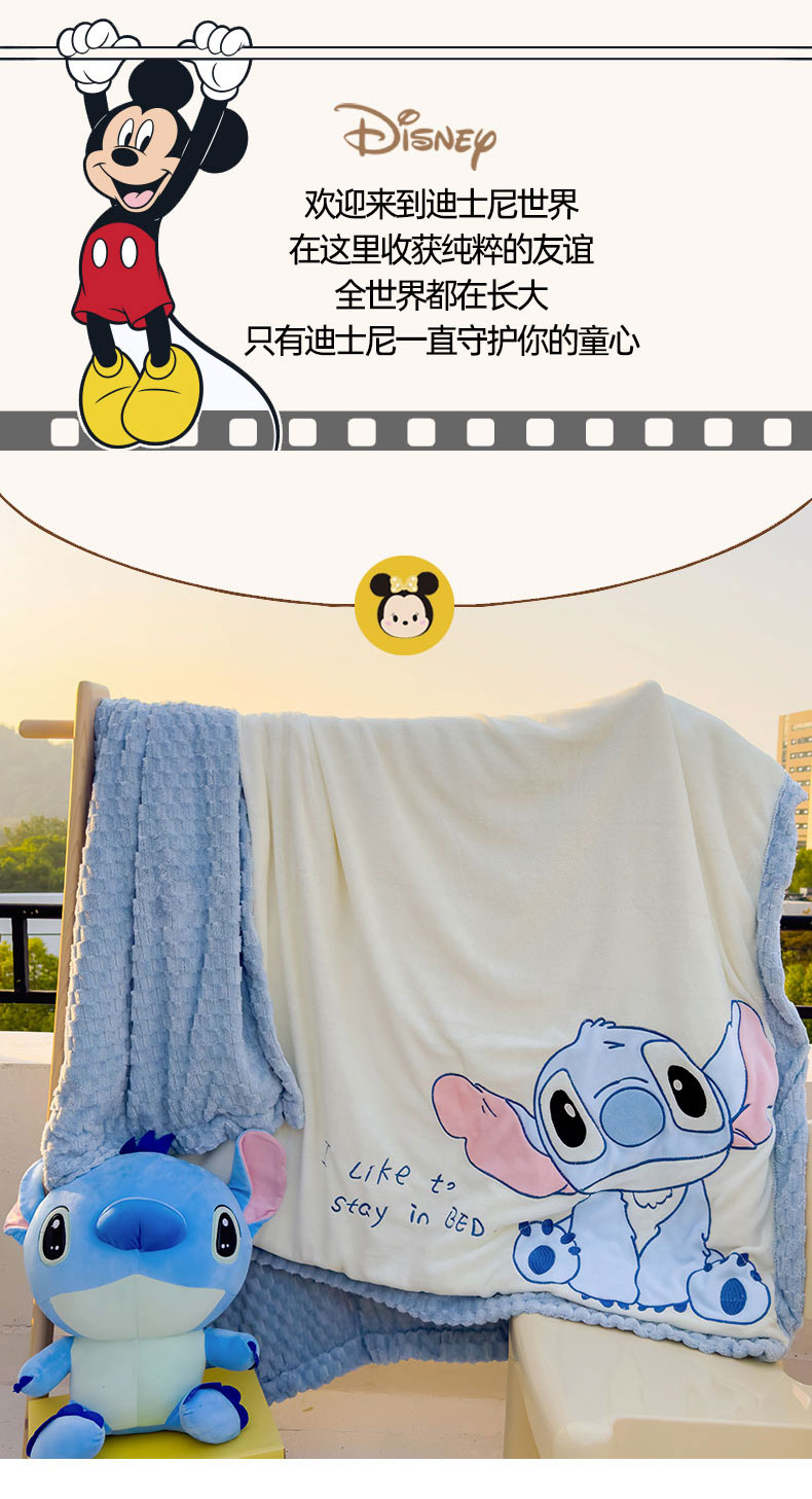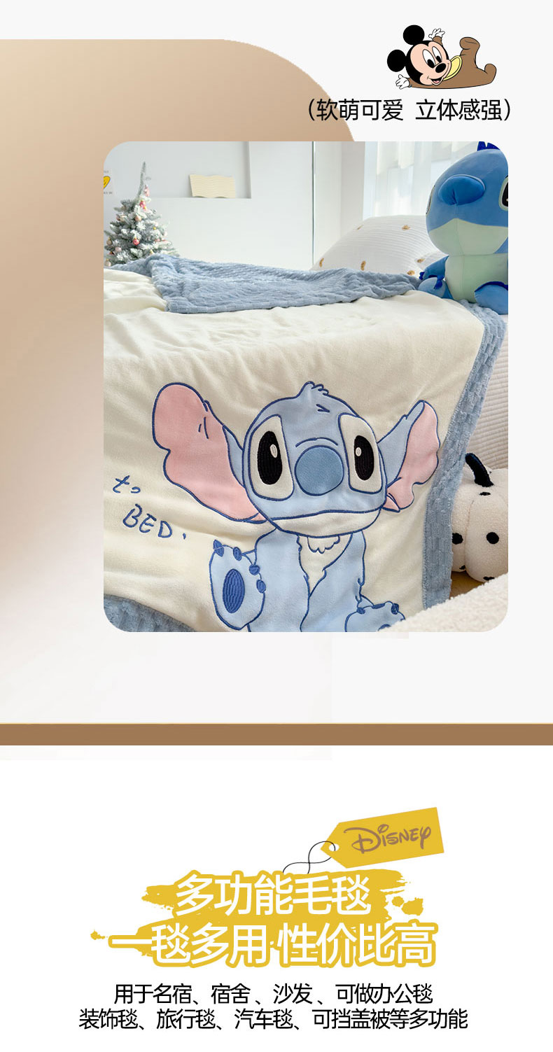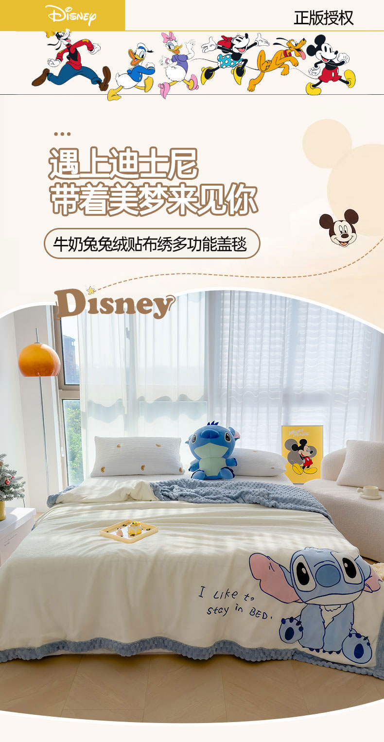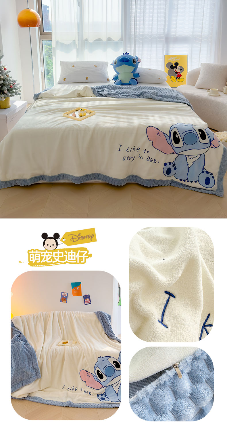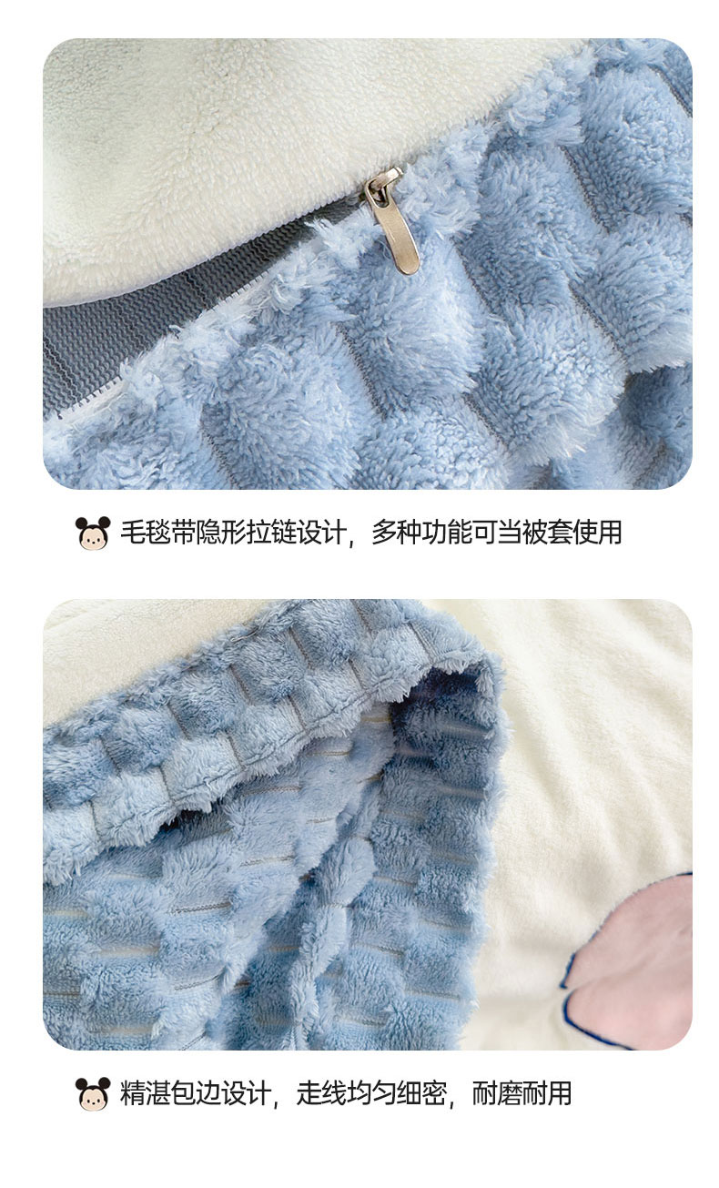 商品名称:灰鲸 2025新款牛奶兔兔绒多功能贴布绣盖毯(带拉链) 萌宠史迪仔