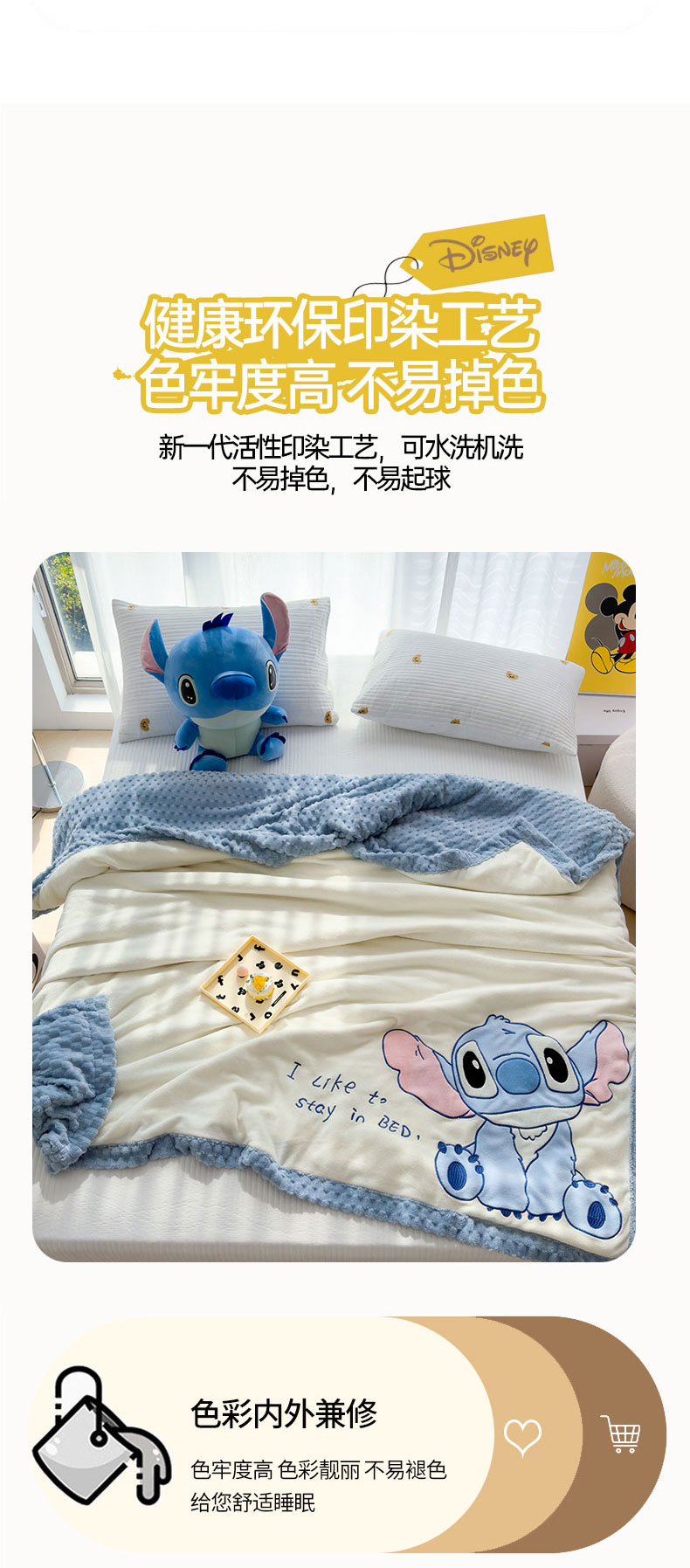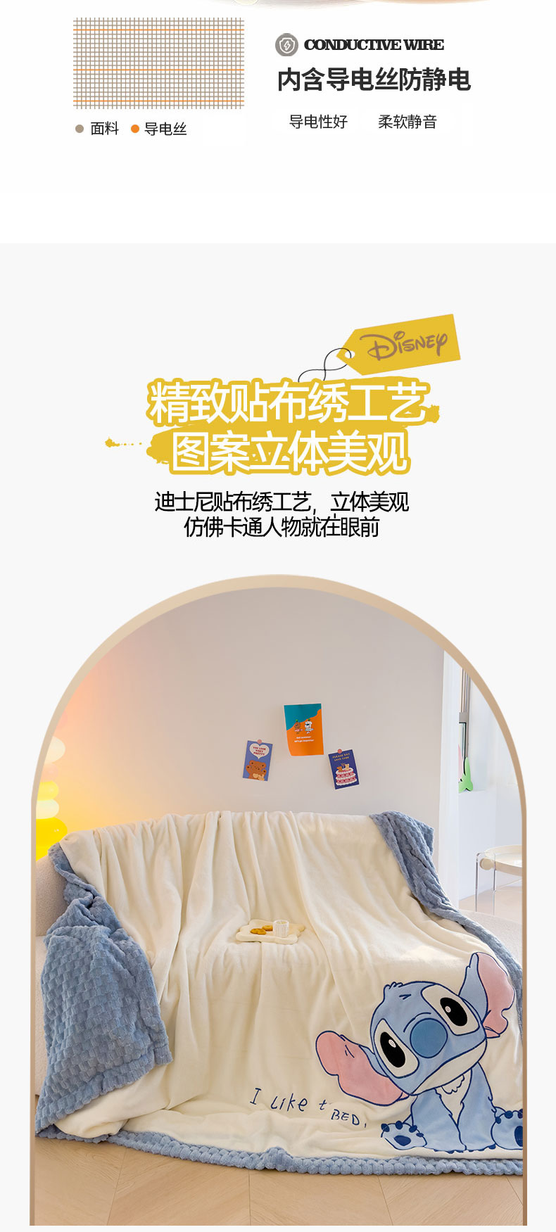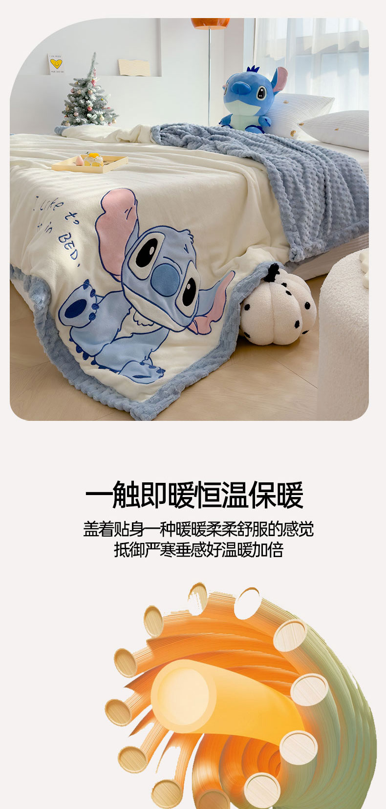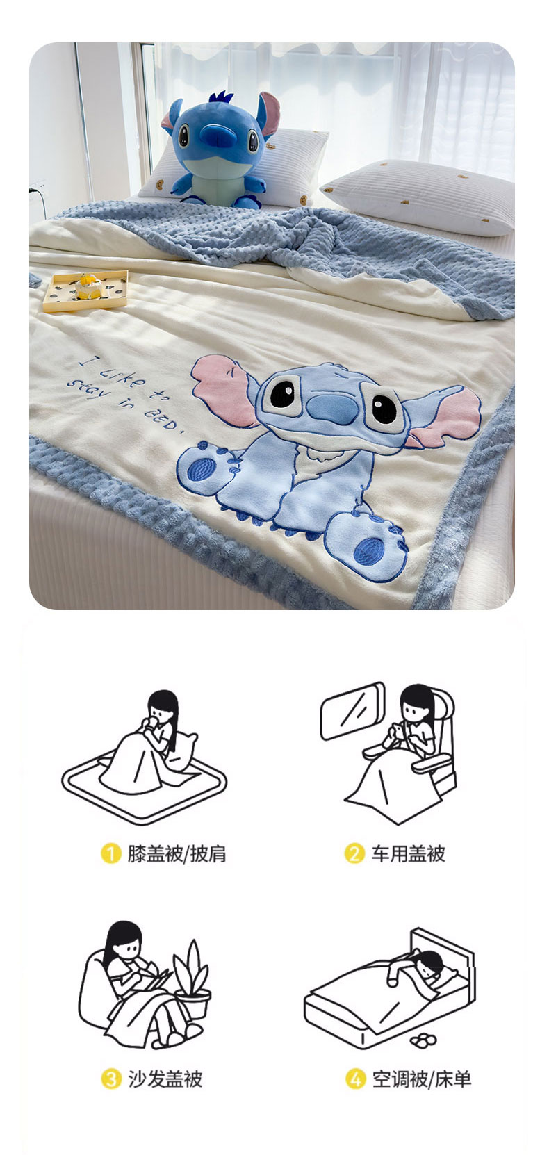 商品名称:灰鲸 2025新款牛奶兔兔绒多功能贴布绣盖毯(带拉链) 萌宠史迪仔