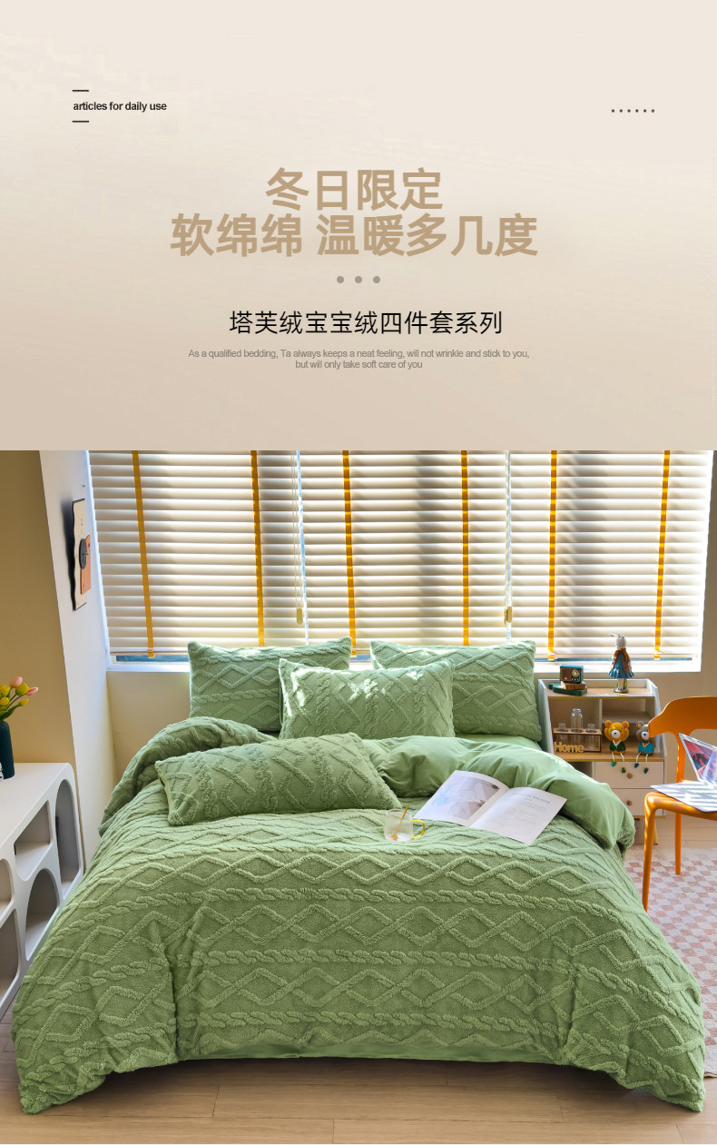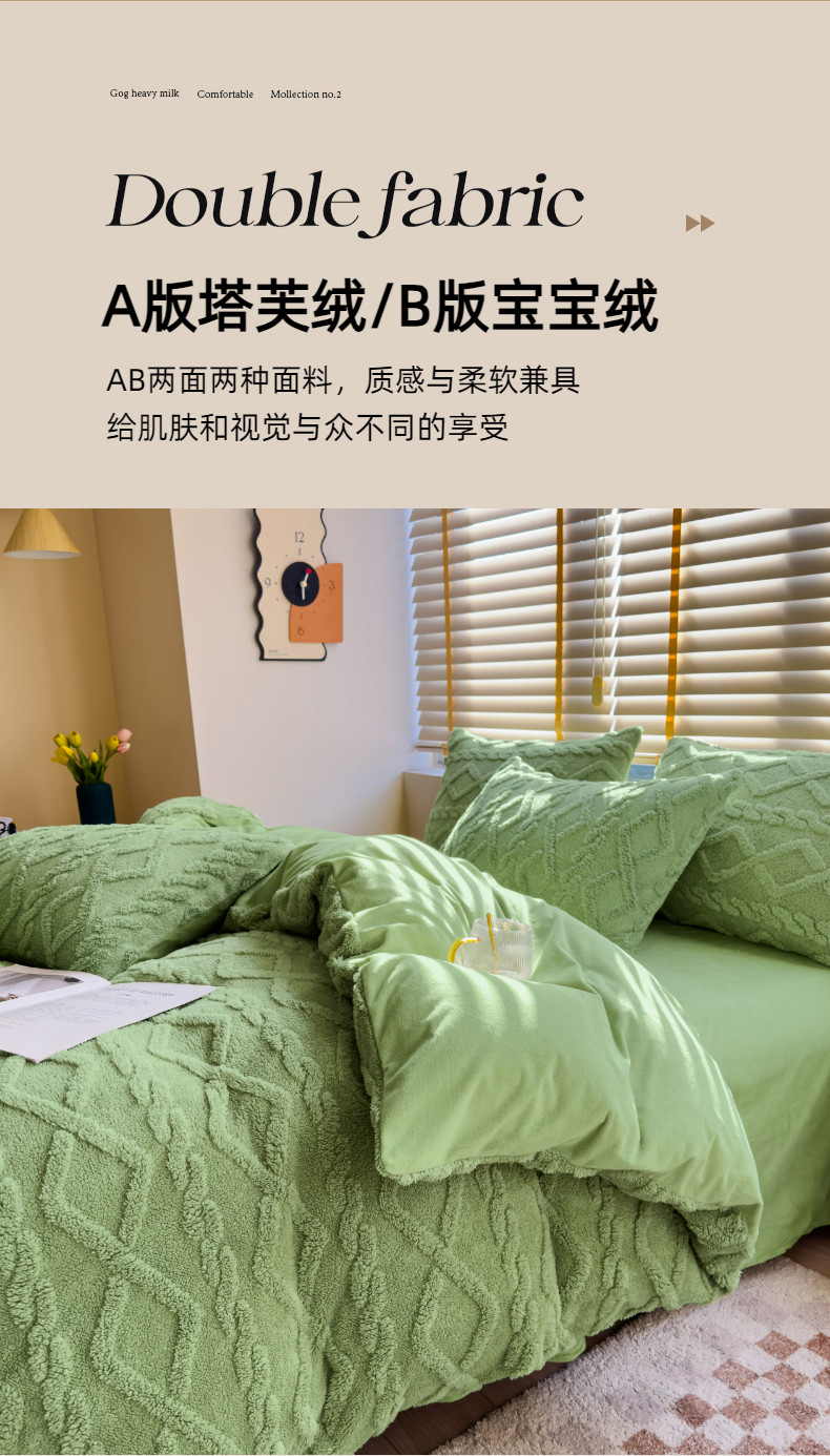潮邦创意家居 2025新款跑量款塔芙绒宝宝绒四件套 豆绿