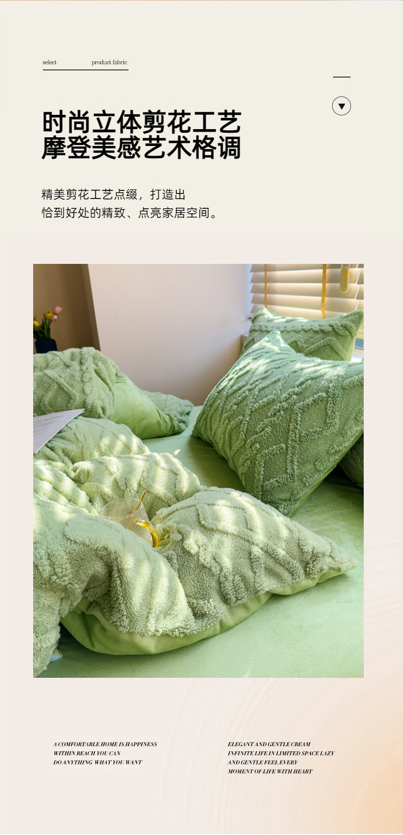 (总)潮邦创意家居 2025新款冬季阳离子提花云纹绒工艺四件套-绒眠小筑系列,绒眠小筑-清新粉,绒眠小筑-浅驼,绒眠小筑-香草绿,绒眠小筑-星灰,绒眠小筑-耀黑