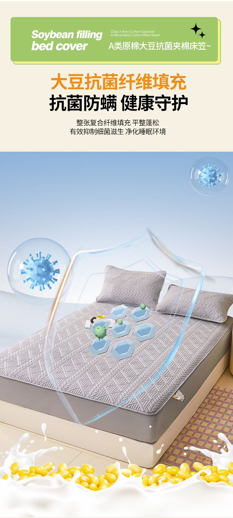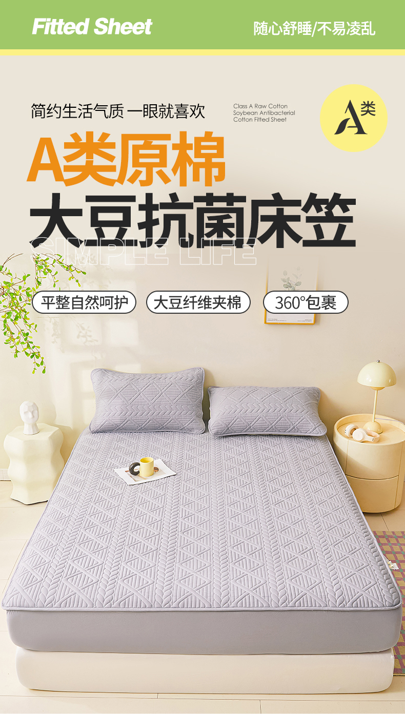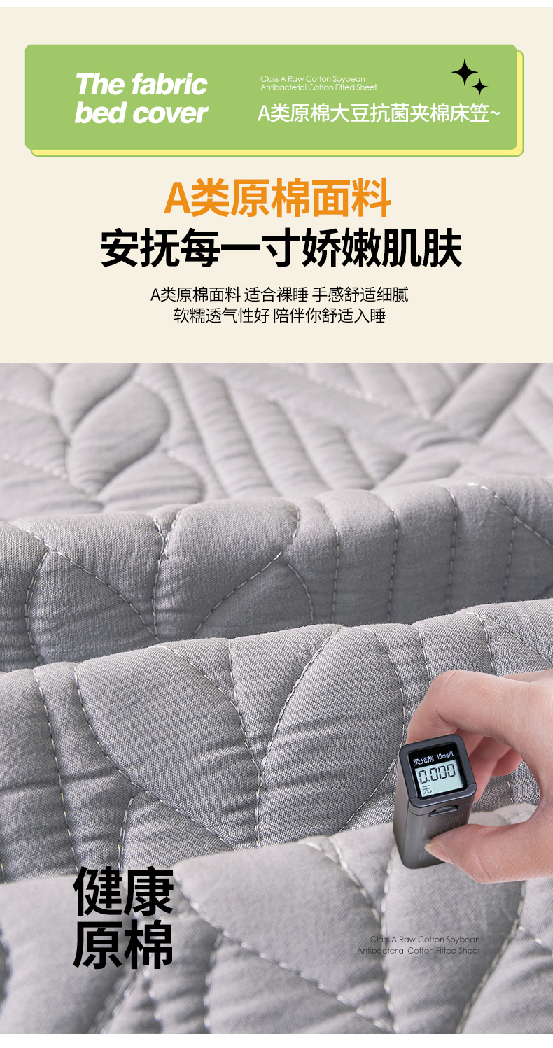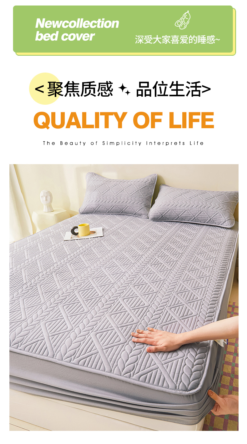 • 91家纺网 家纺一手货源 找家纺 伊人坊 2023新款A类原棉大豆夹棉床笠 时尚灰