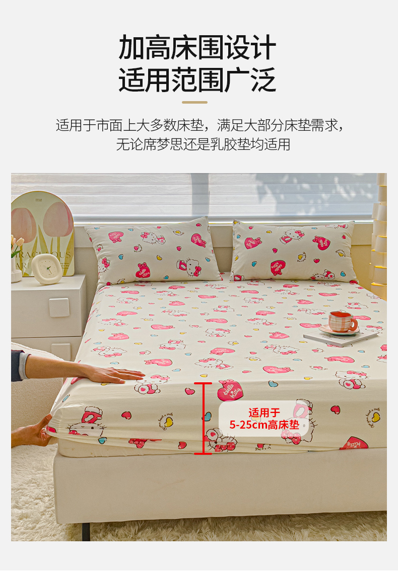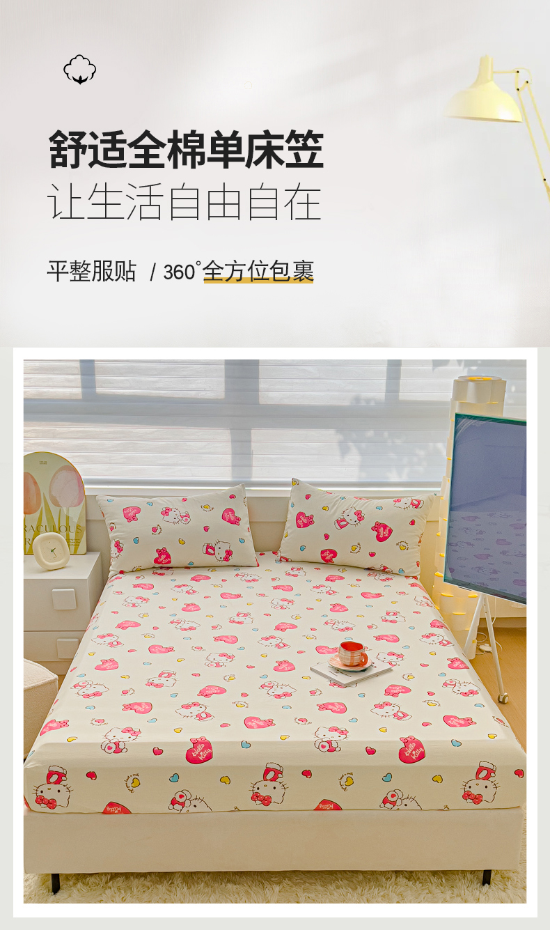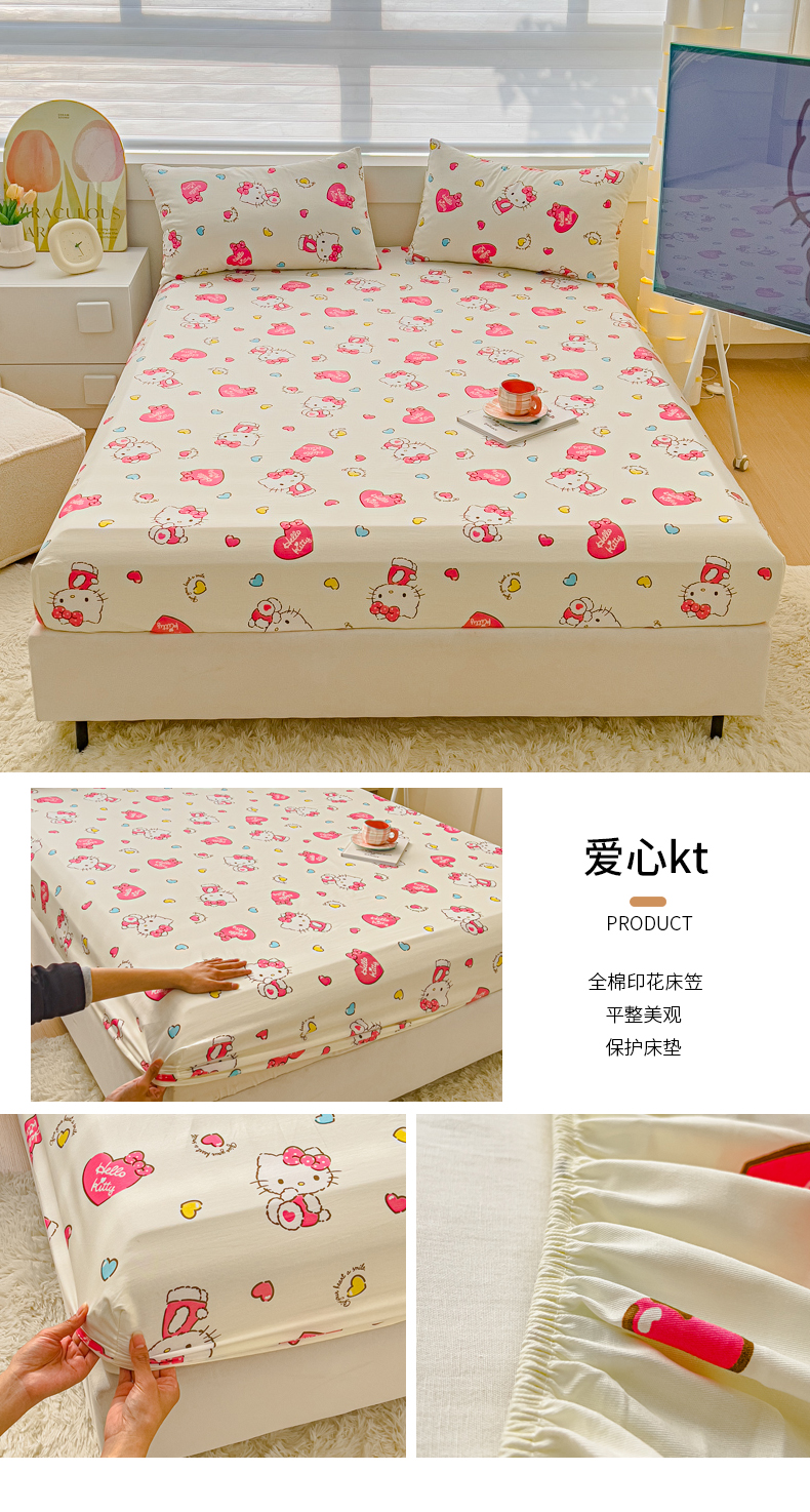 金丝鸟家纺 2024新款全棉三丽鸥系列床笠 爱心kt