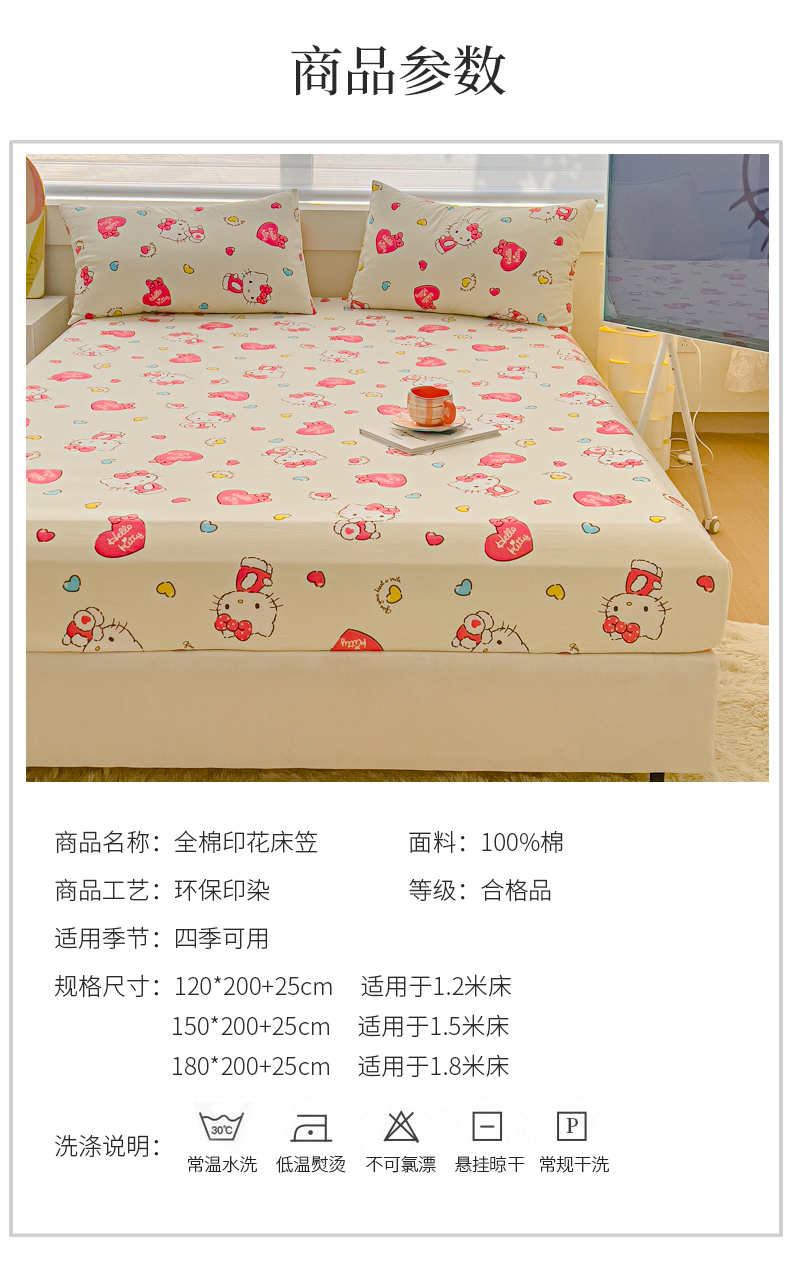 • 91家纺网 家纺一手货源 找家纺 金丝鸟家纺 2024新款全棉三丽鸥系列床笠 爱心kt
