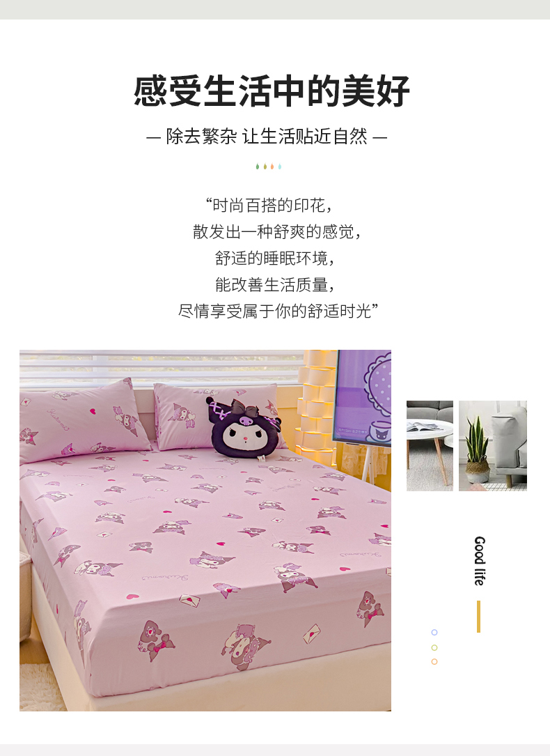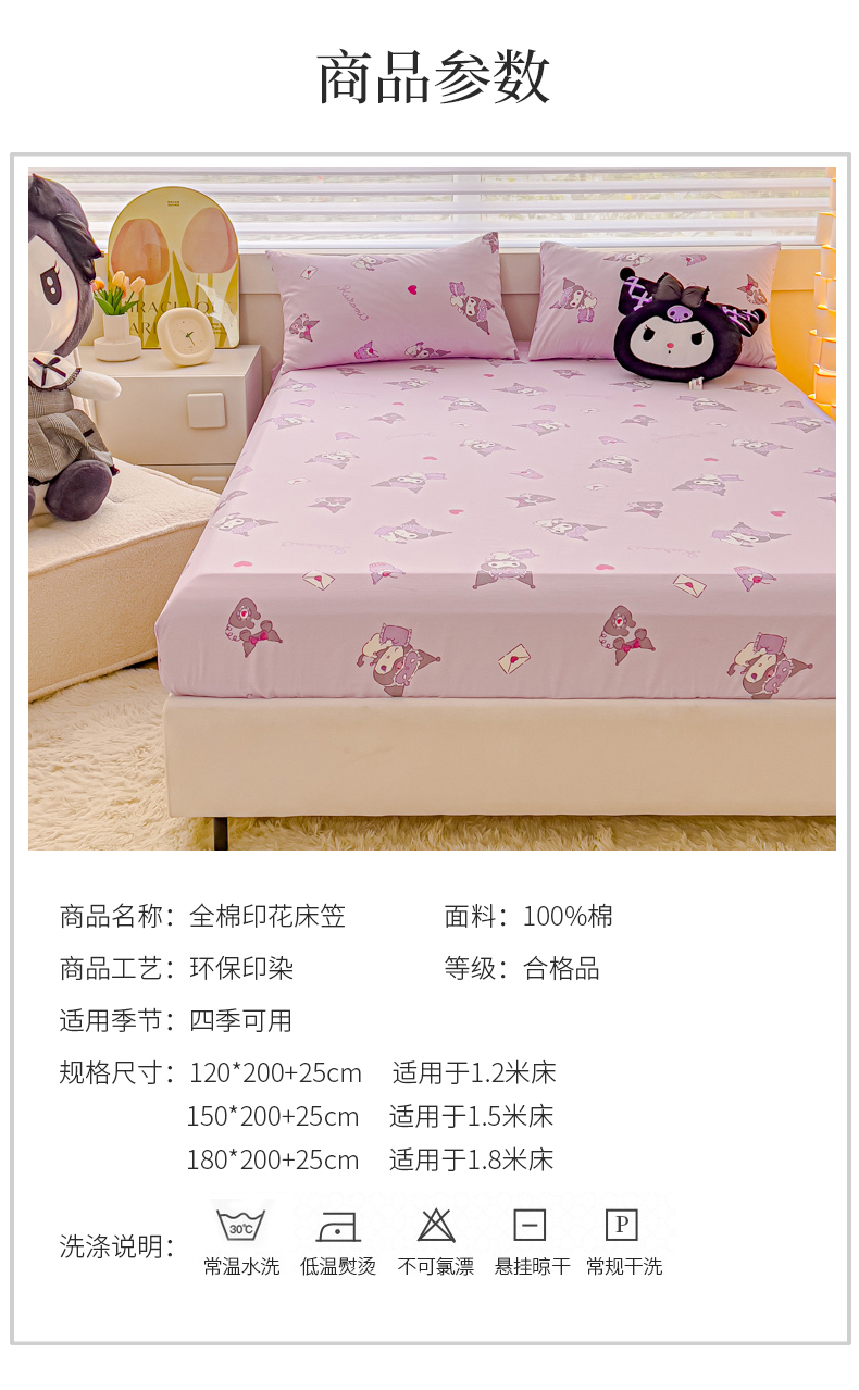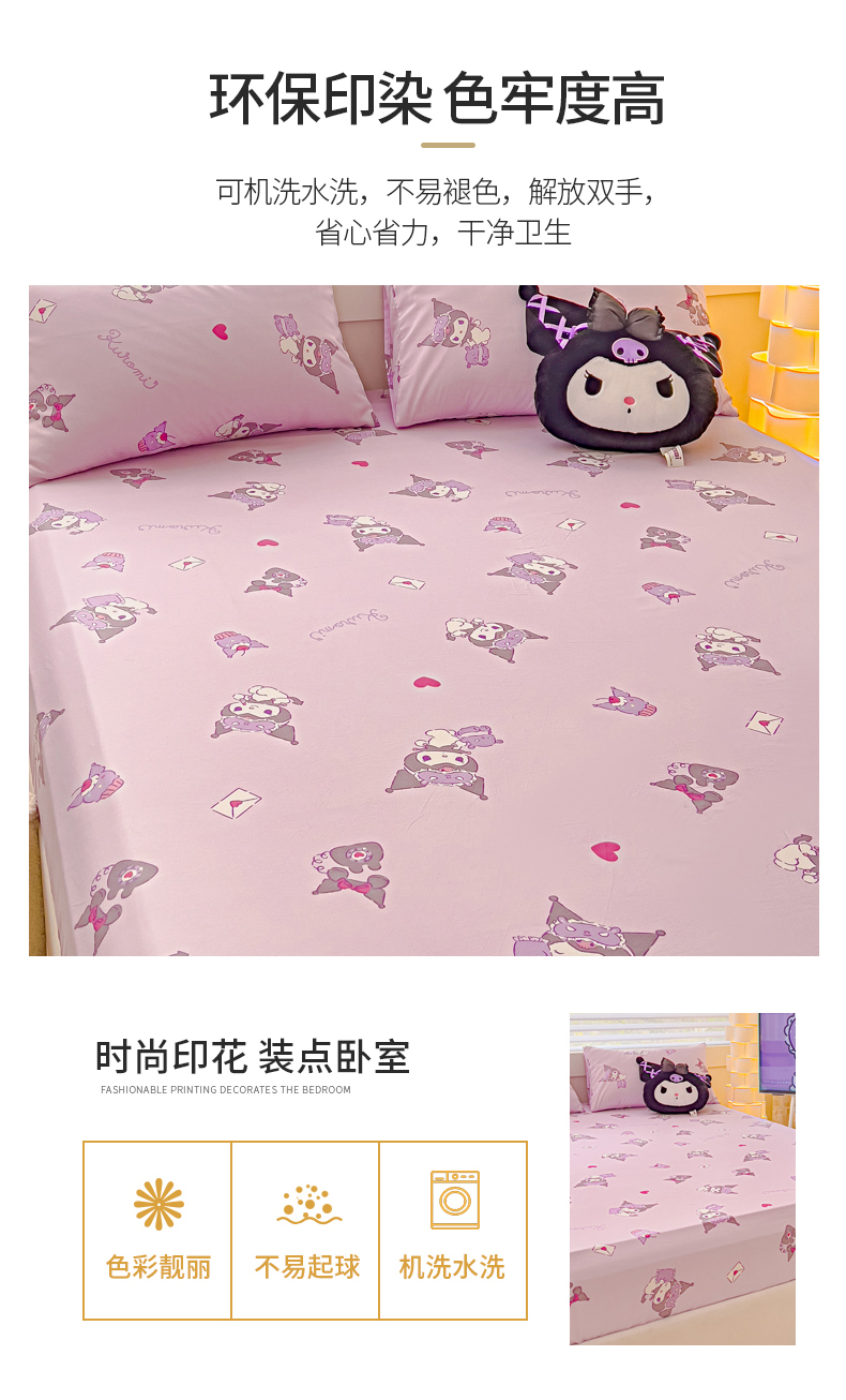 (总)金丝鸟家纺 2025新款三丽鸥系列全棉斜纹13370单品床笠,波点美乐蒂,彩虹大耳朵狗,条纹库洛米,晚安kt