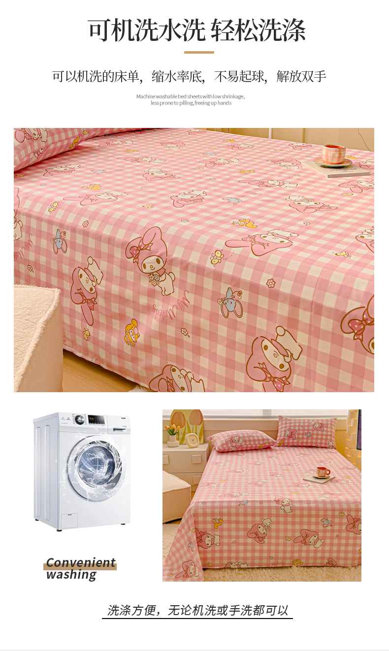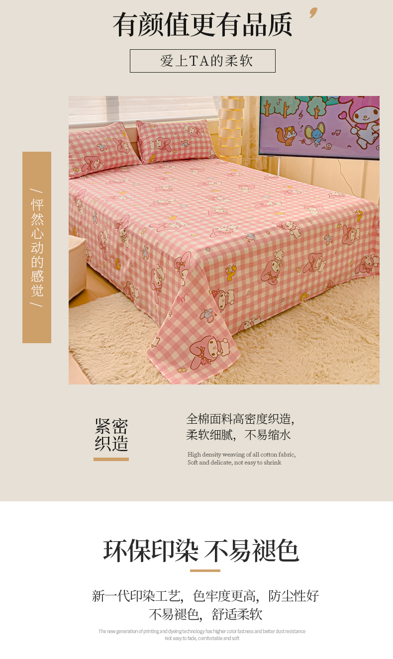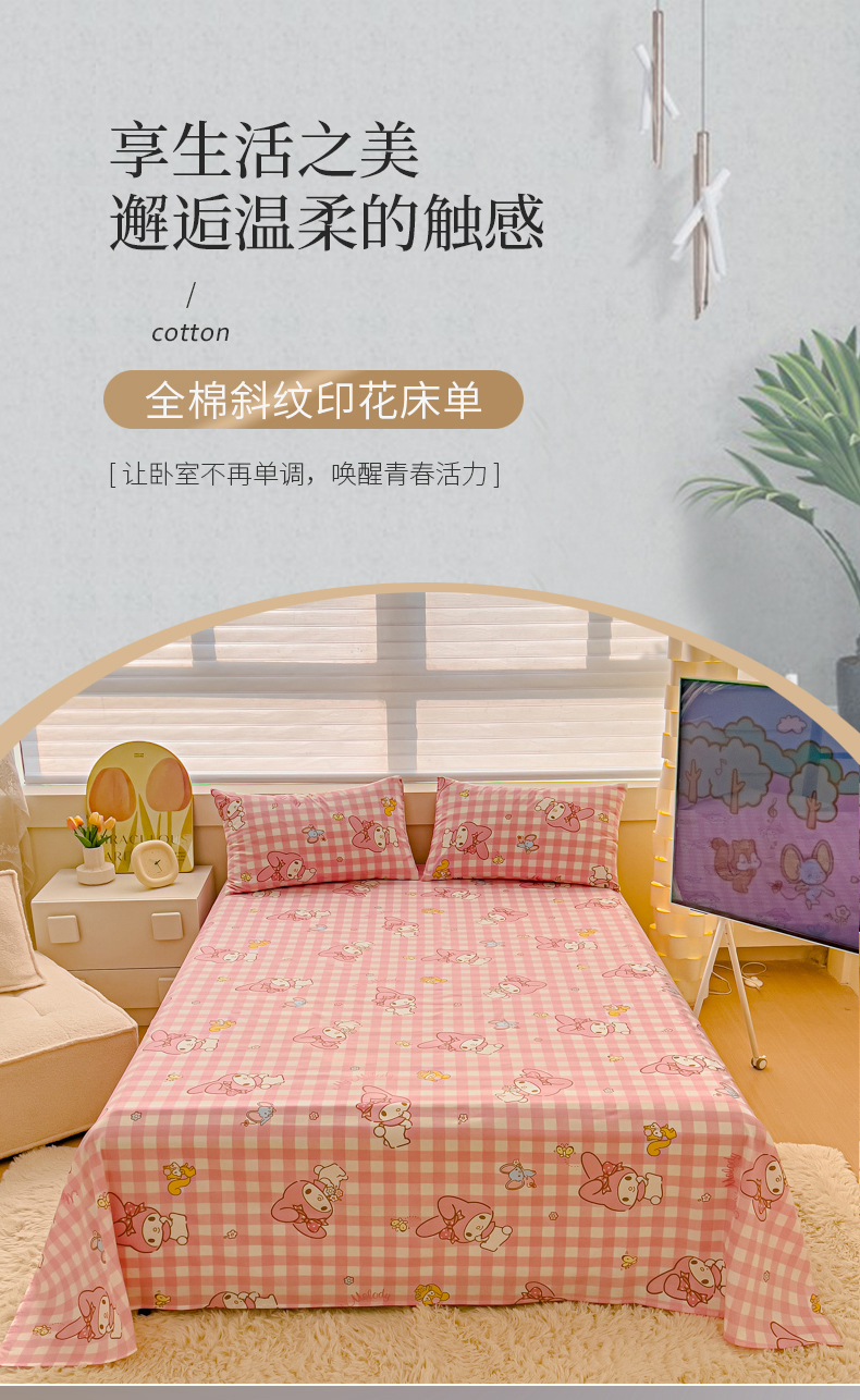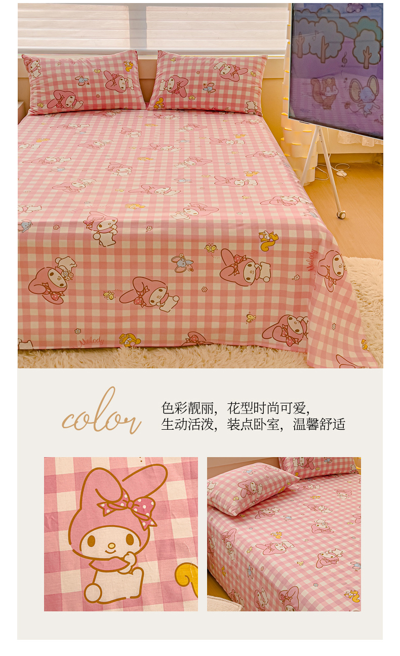 (总)金丝鸟家纺 2025新款三丽鸥系列全棉斜纹13370单品床单,波点美乐蒂,彩虹大耳朵狗,条纹库洛米,晚安kt