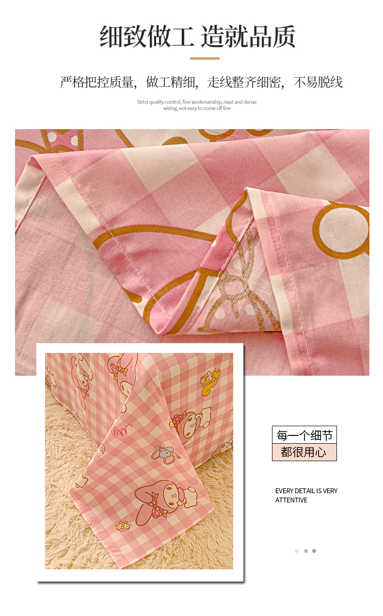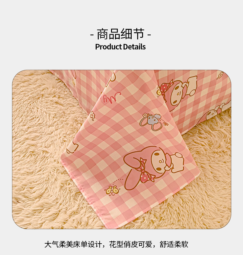 商品名称:金丝鸟家纺 2024新款全棉三丽鸥系列床单 田格兔