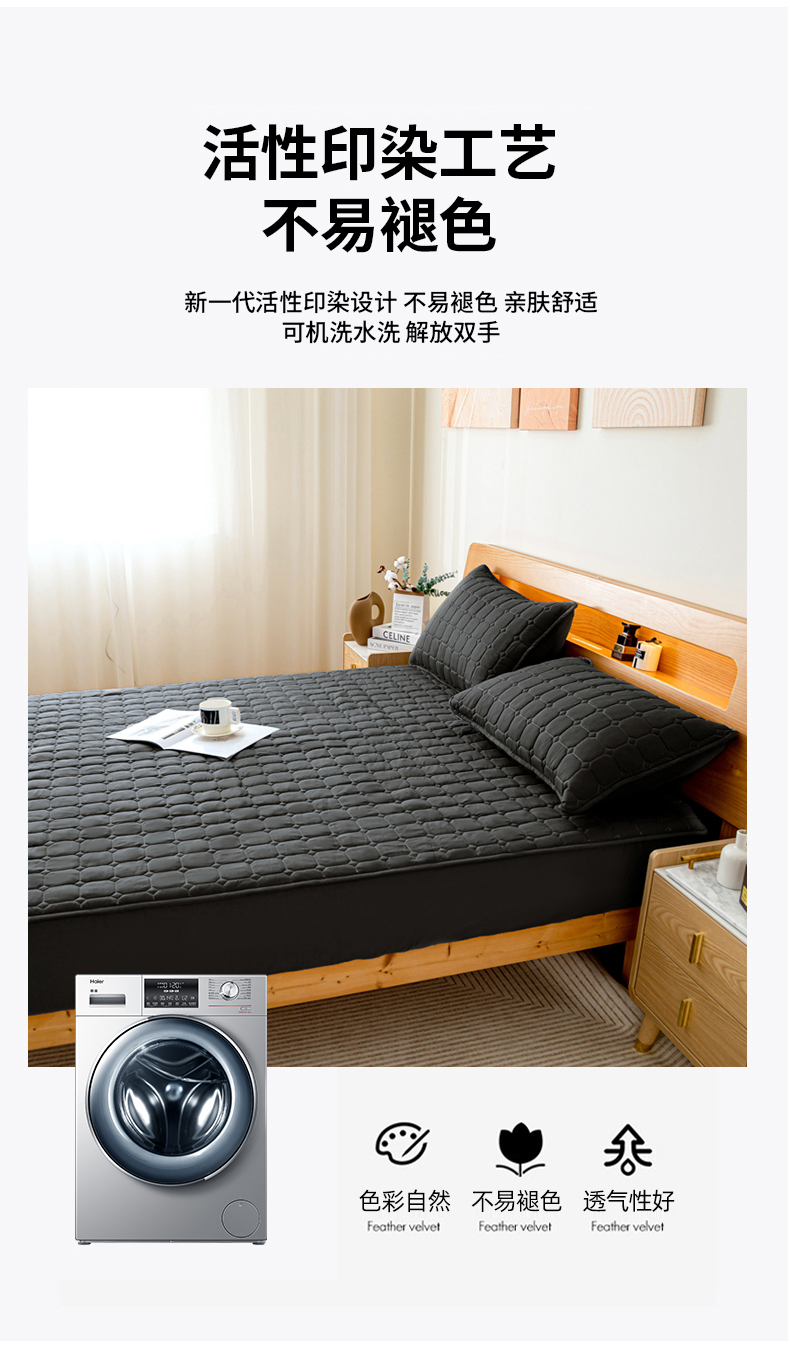 (总) 宇淳 2025跨境外贸水洗棉夹棉单件床签床垫保护套四季通用防滑床罩梦思床垫保护罩三件套非全棉,黑灰,黑色,丈青,棕色,白色,卡其,奶黄,浅灰,深灰,深蓝,水绿,天蓝,玉色,草绿,深豆沙,浅粉