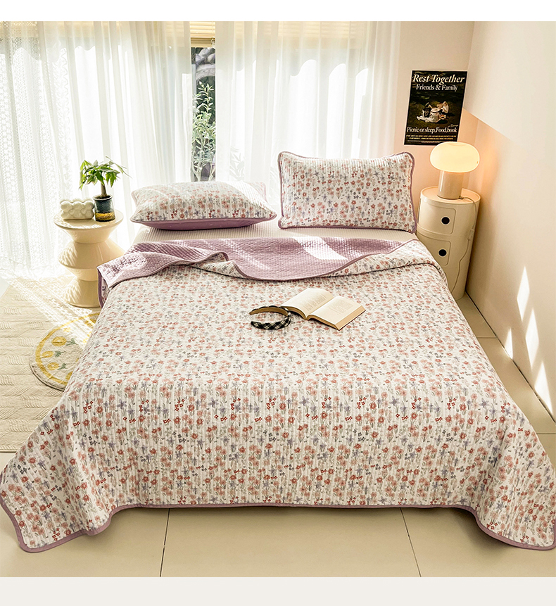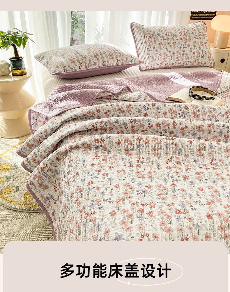 茉夕家纺 2024新款纯棉斜纹13372双面纯棉床盖 梦境紫