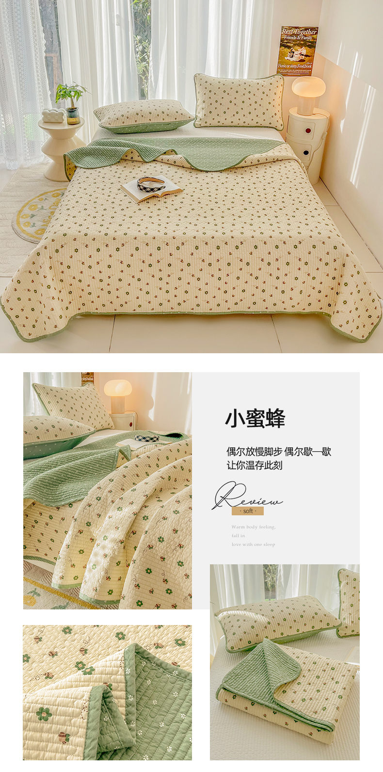 商品名称:茉夕家纺 2024新款纯棉斜纹13372双面纯棉床盖 小蜜蜂
