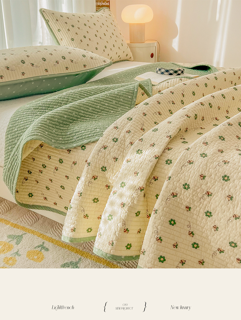 茉夕家纺 2024新款纯棉斜纹13372双面纯棉床盖 小蜜蜂