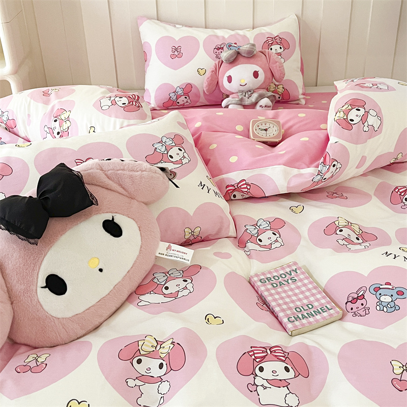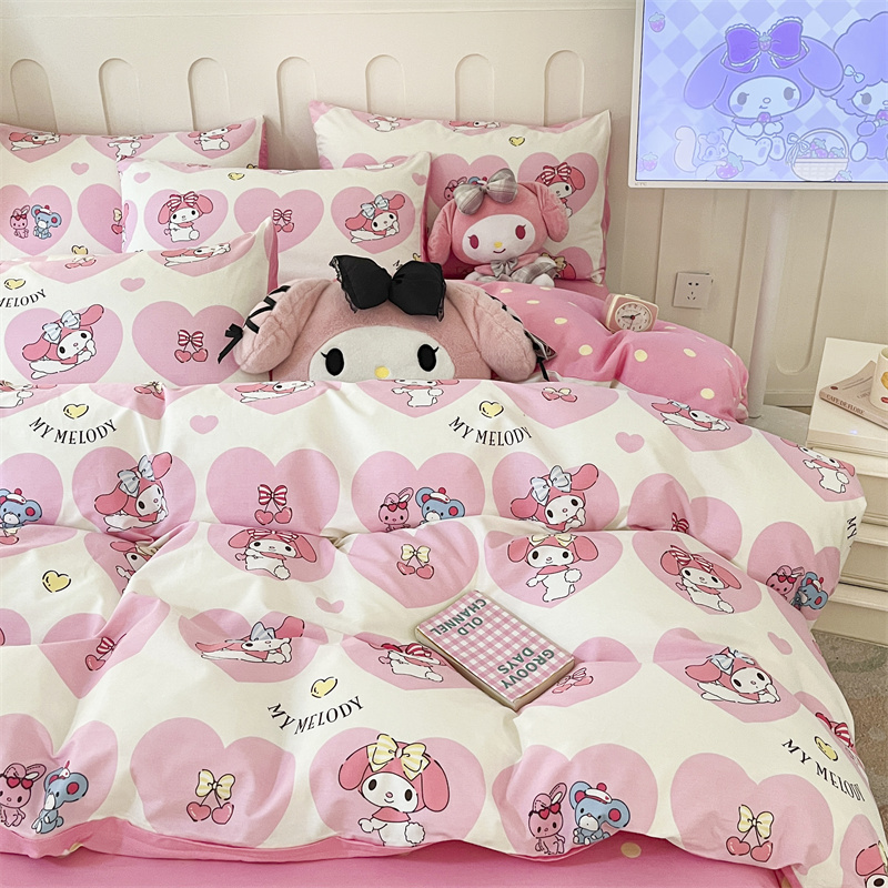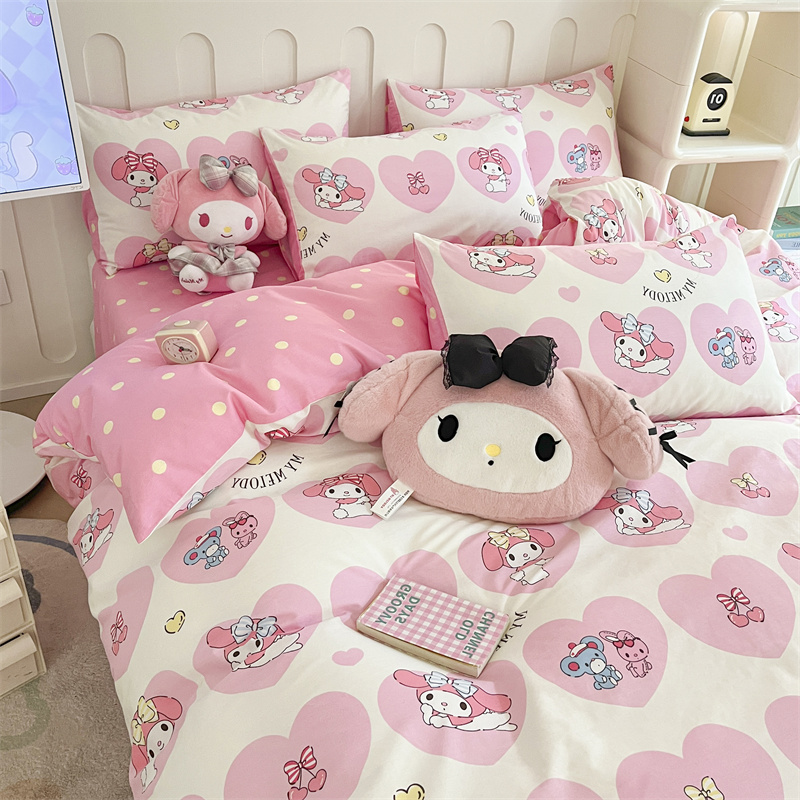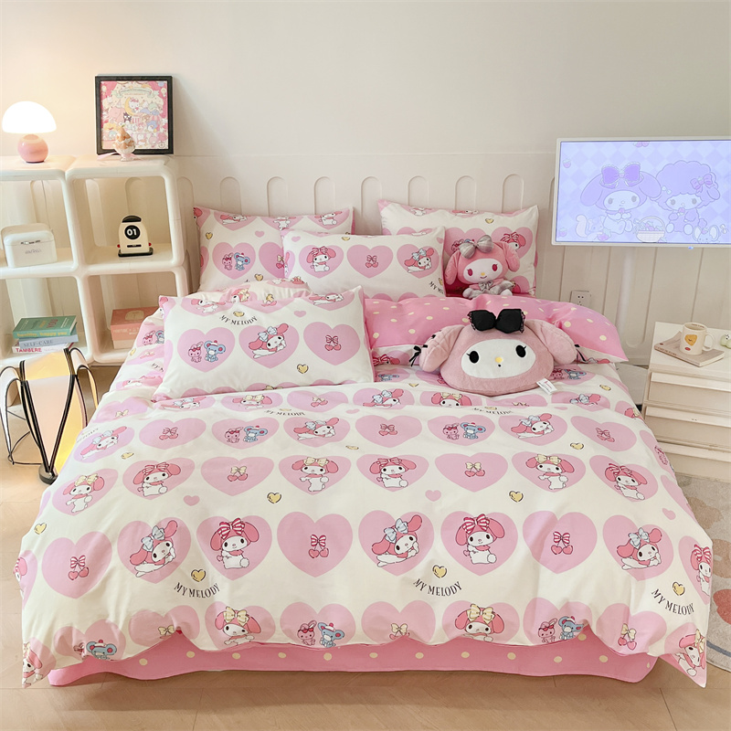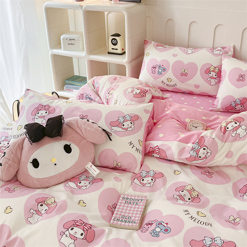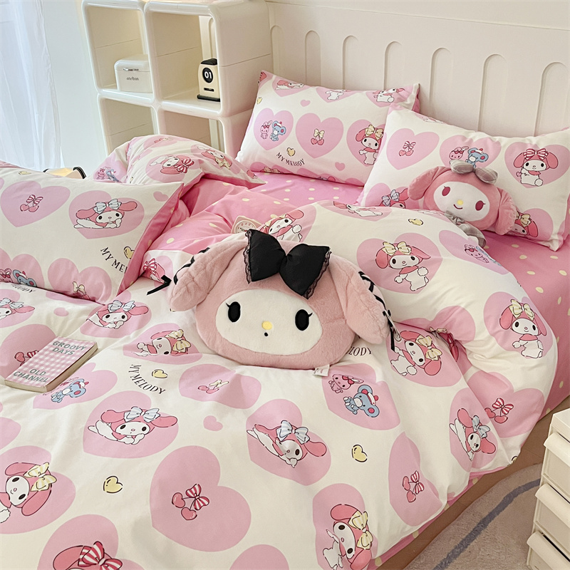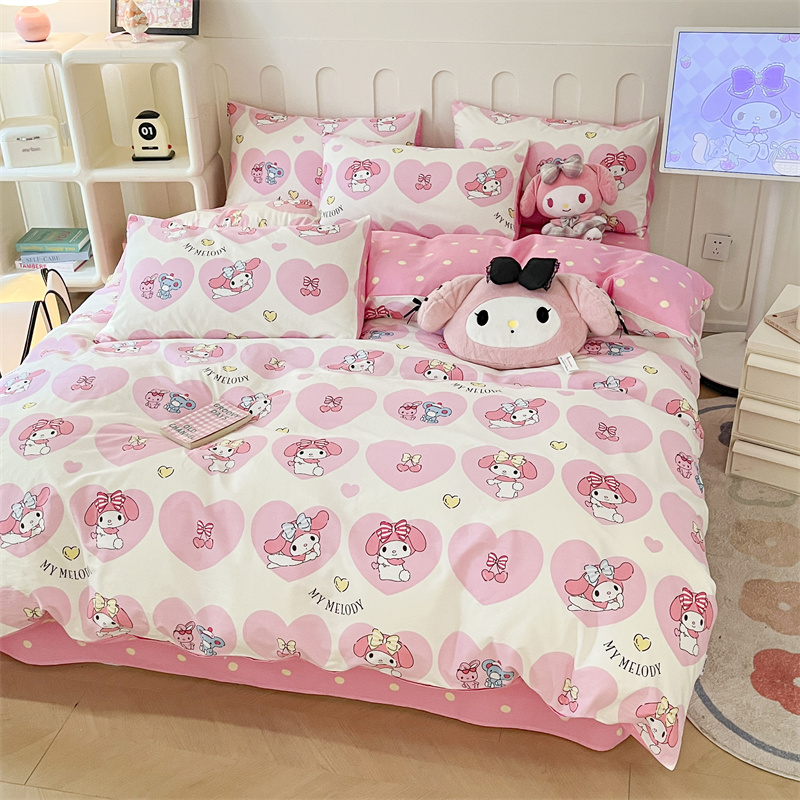 呗旺鹿 2024新款三丽鸥系列全棉四件套 爱心造型屋