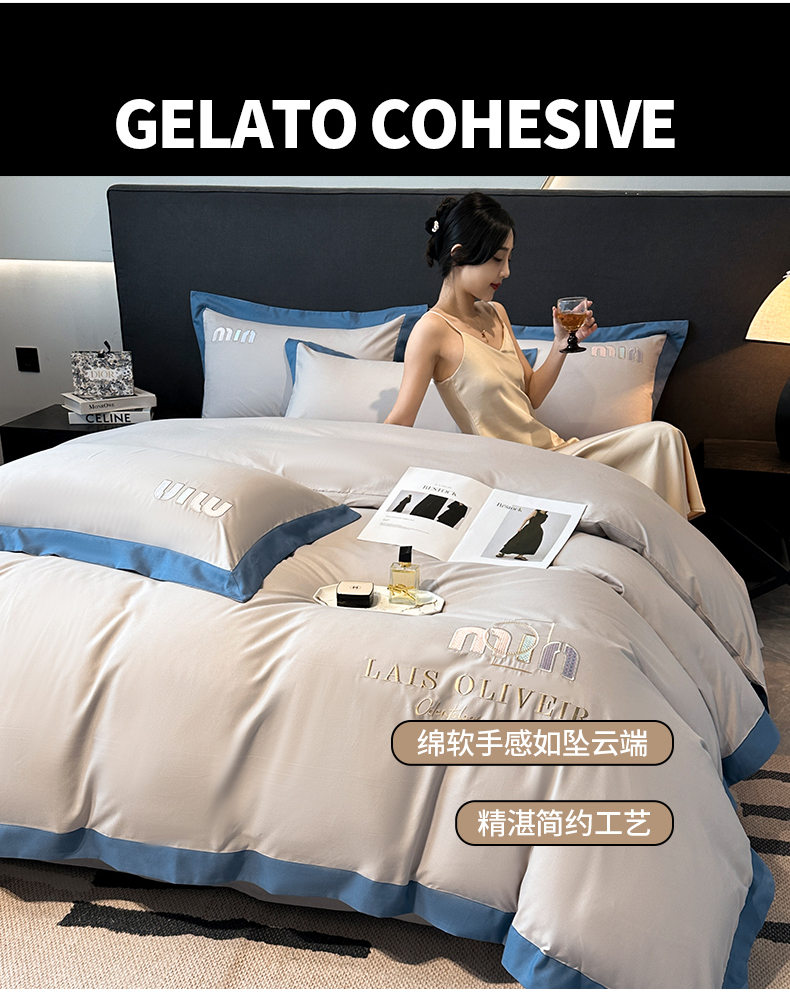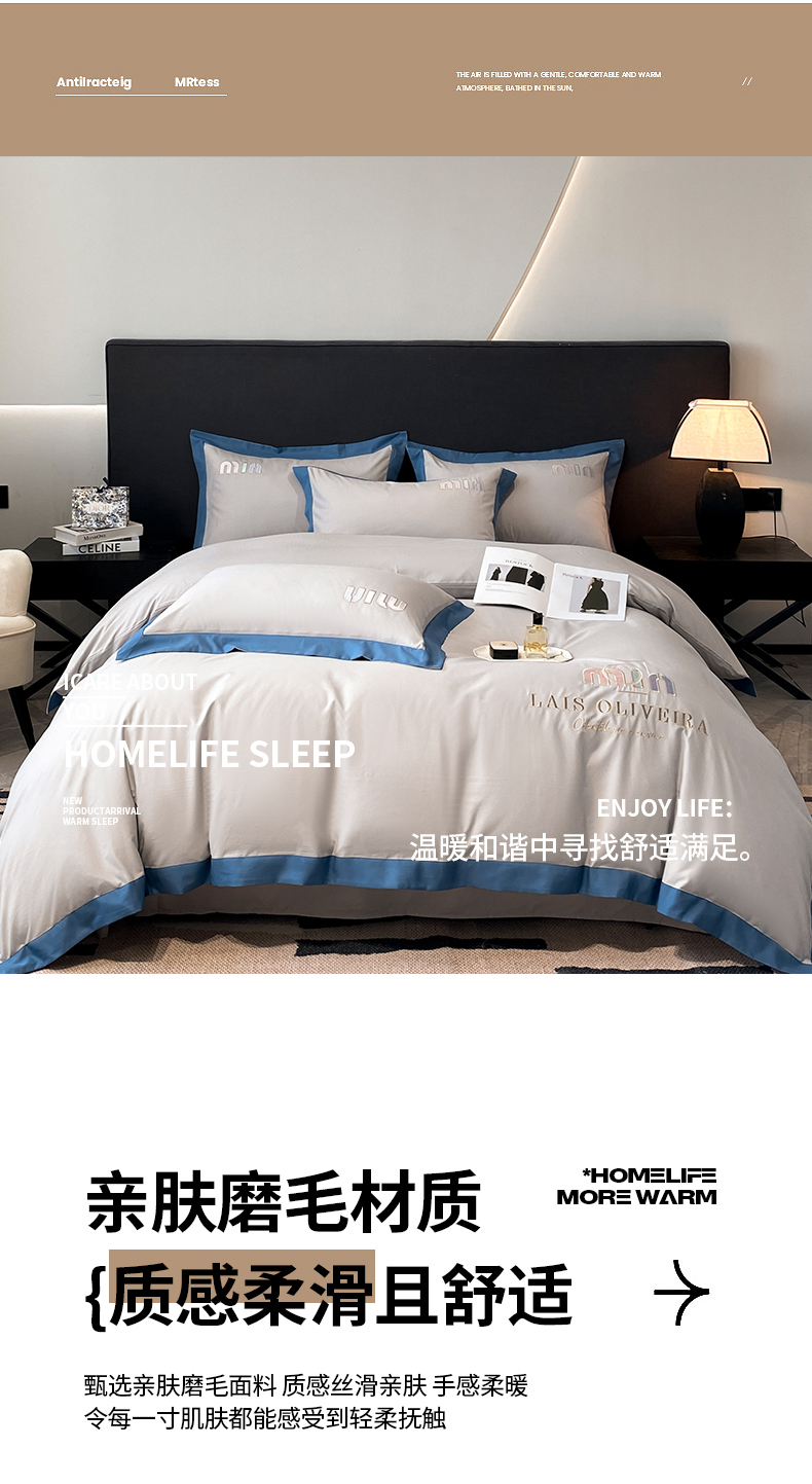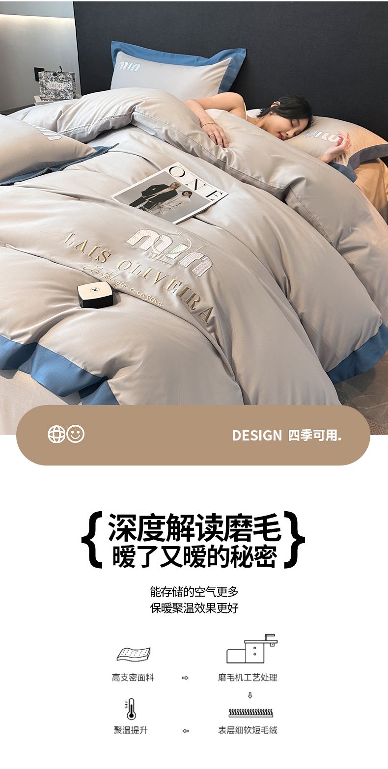 (总)遇见家居生活馆 2025新款A类牛奶绒玛利亚绒宽边四件套(控价:标准178,加大188,床笠款183),靓粉+星辰灰,丁香紫+星辰灰,清澈蓝+星辰灰,奶昔白+亚麻驼,经典灰+香槟,宾利蓝+星辰灰