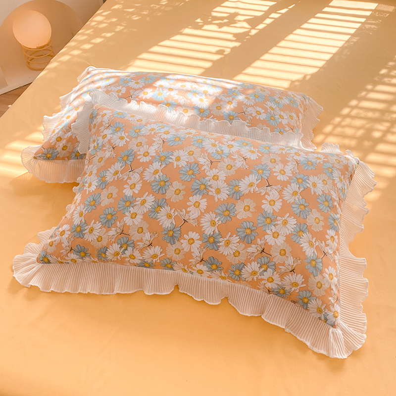 商品名称:大米家居 2024新款小雏菊印花海岛棉水洗棉磨毛花边枕套 小雏菊-菊